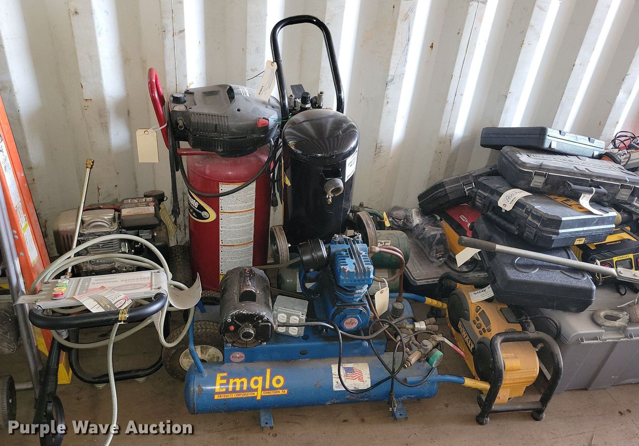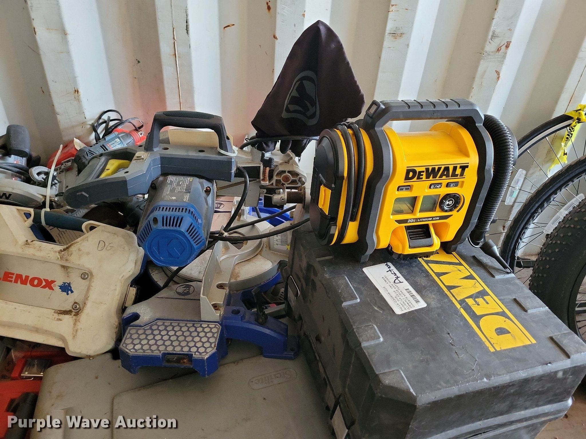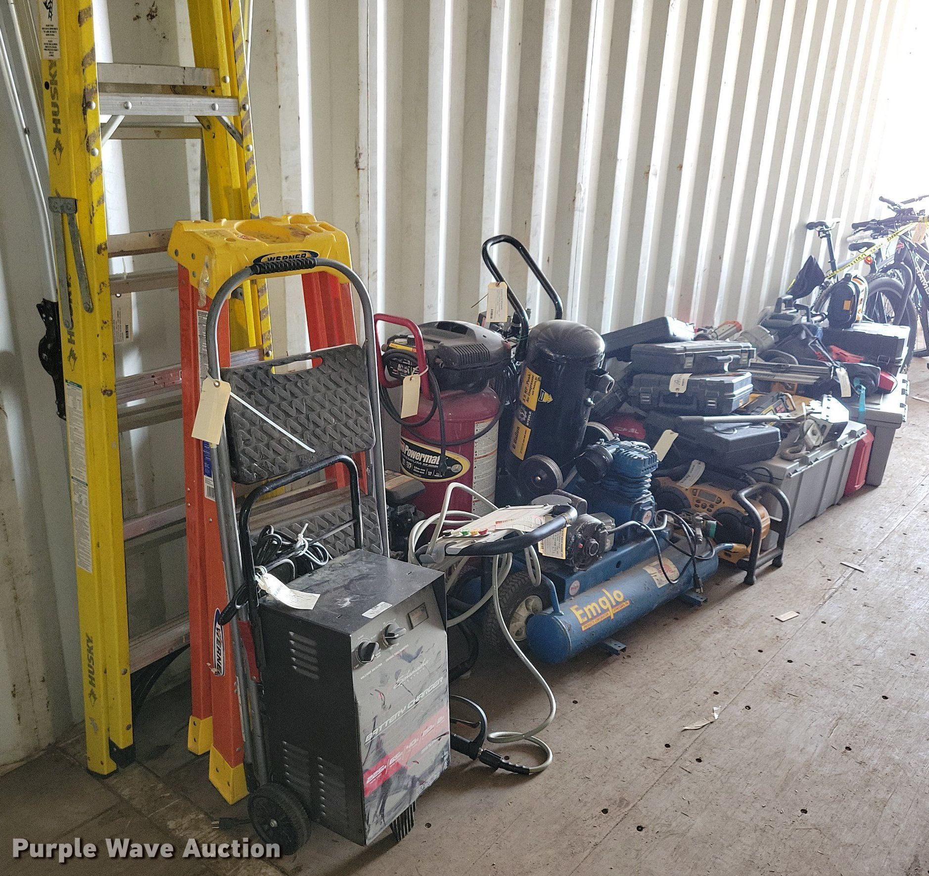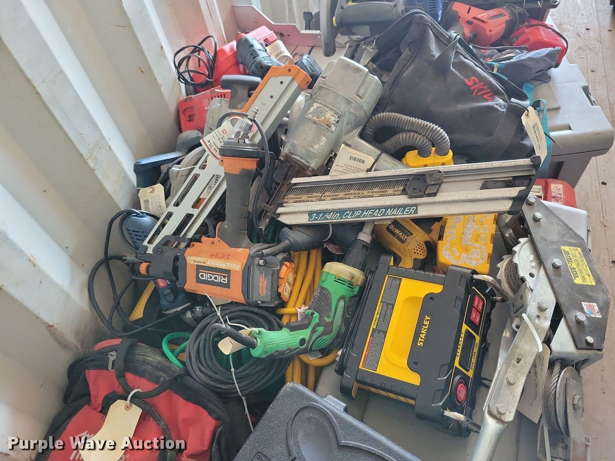 Purple Wave is selling a used Tools in South Dakota. This item is a Tools with the following: Ladders, Battery charger, Air compressors, Power washers, Radios, Nail guns, Drills, Chop saws, Sawzall, Skill saws, Router and more