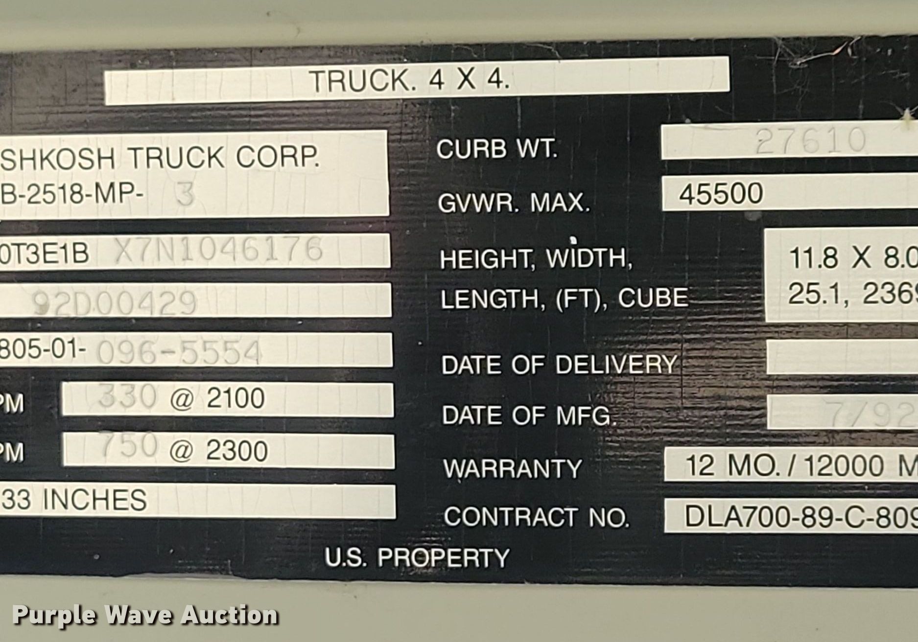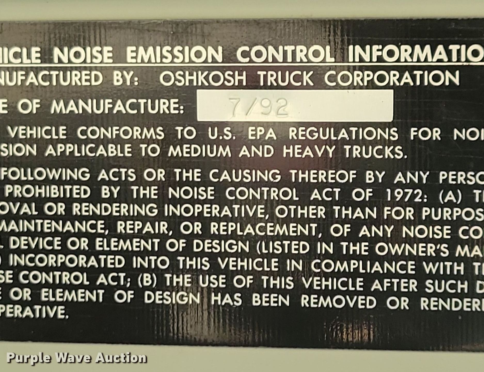 Purple Wave is selling a used Truck Chassis in South Dakota. This item is a 1992 Oshkosh HB2518-MP3 snowblower truck with the following: Miles: Unknown, VIN: 10T3E1BX7N1046176