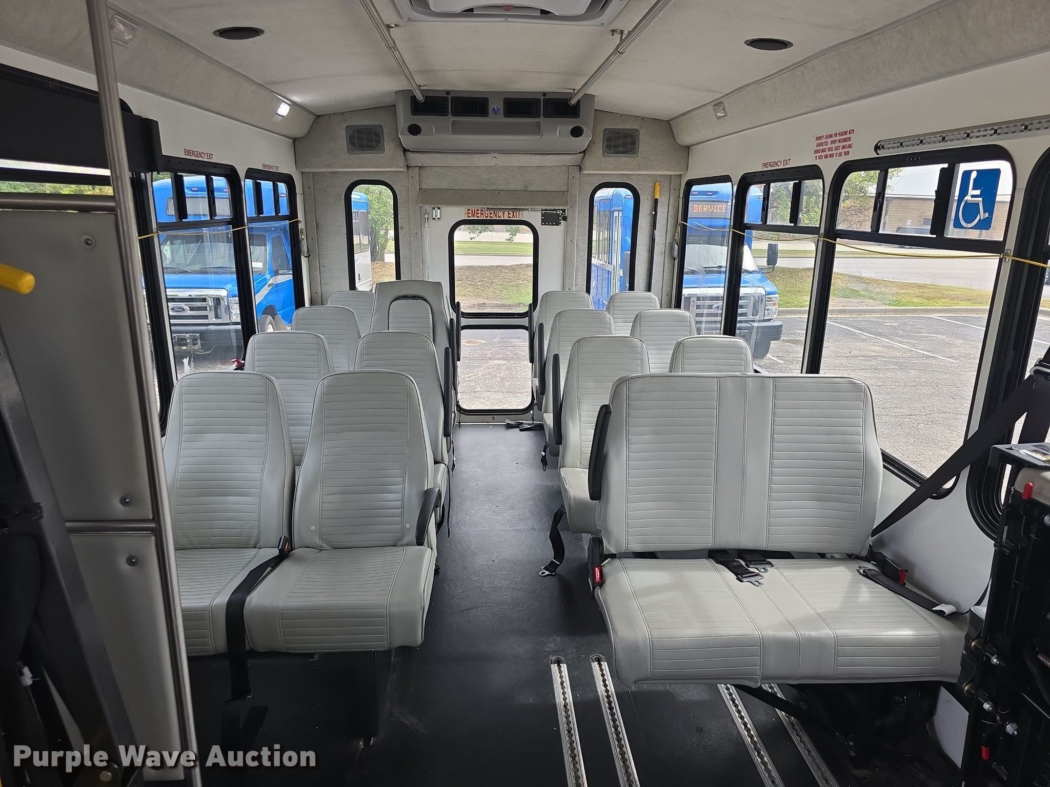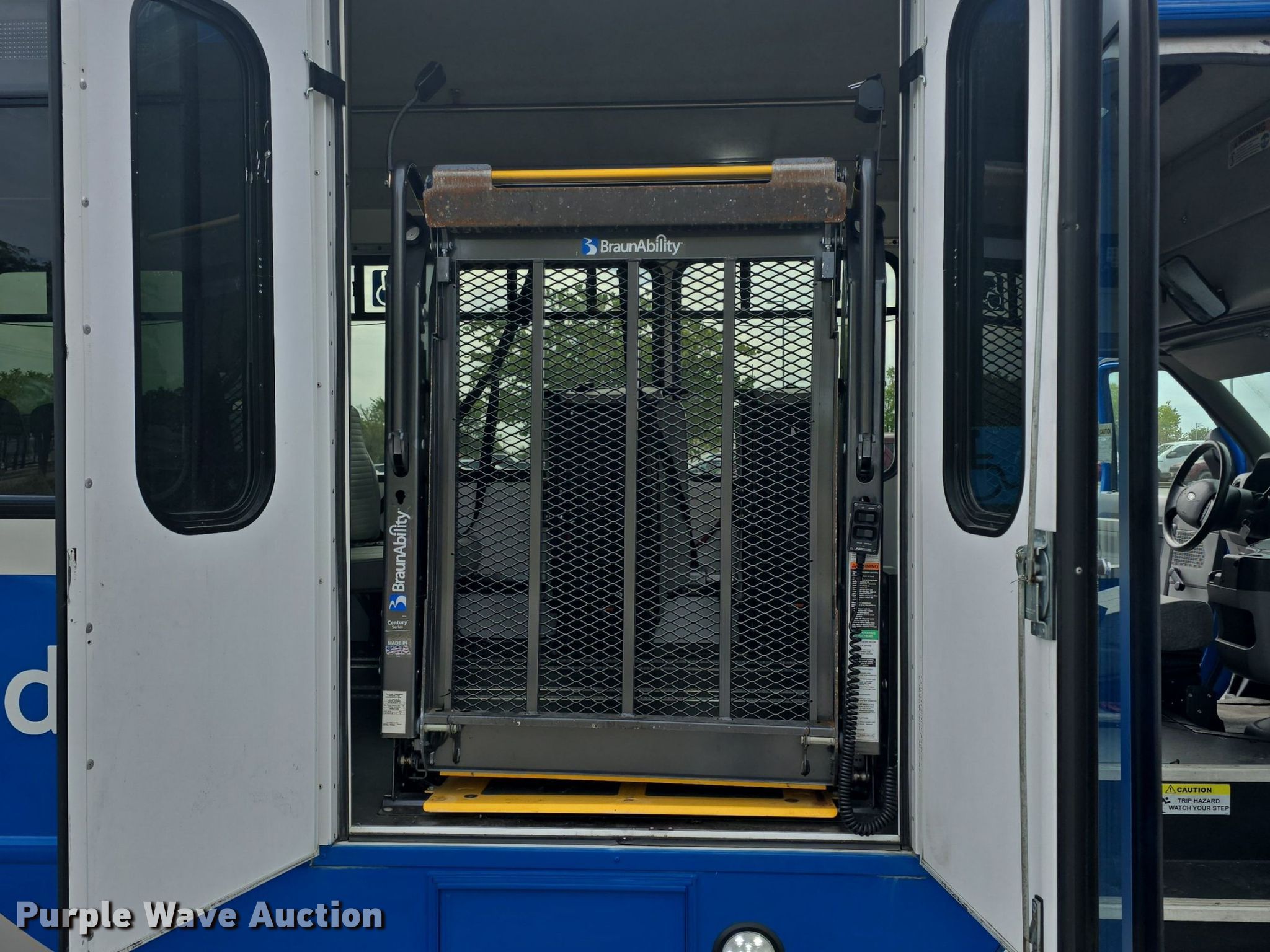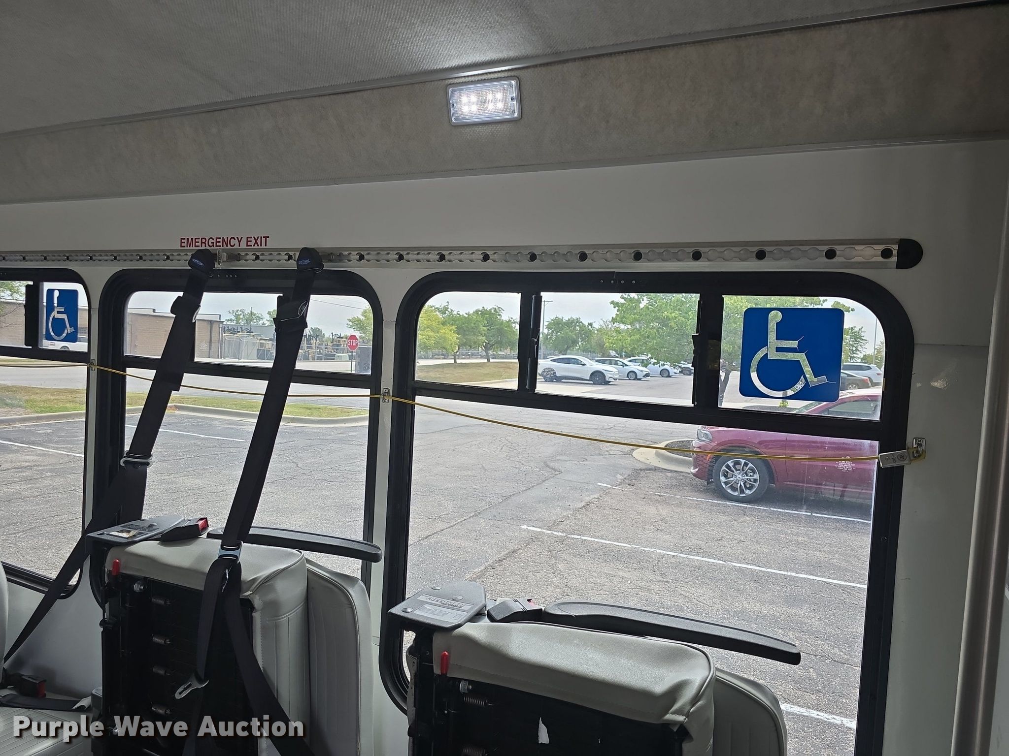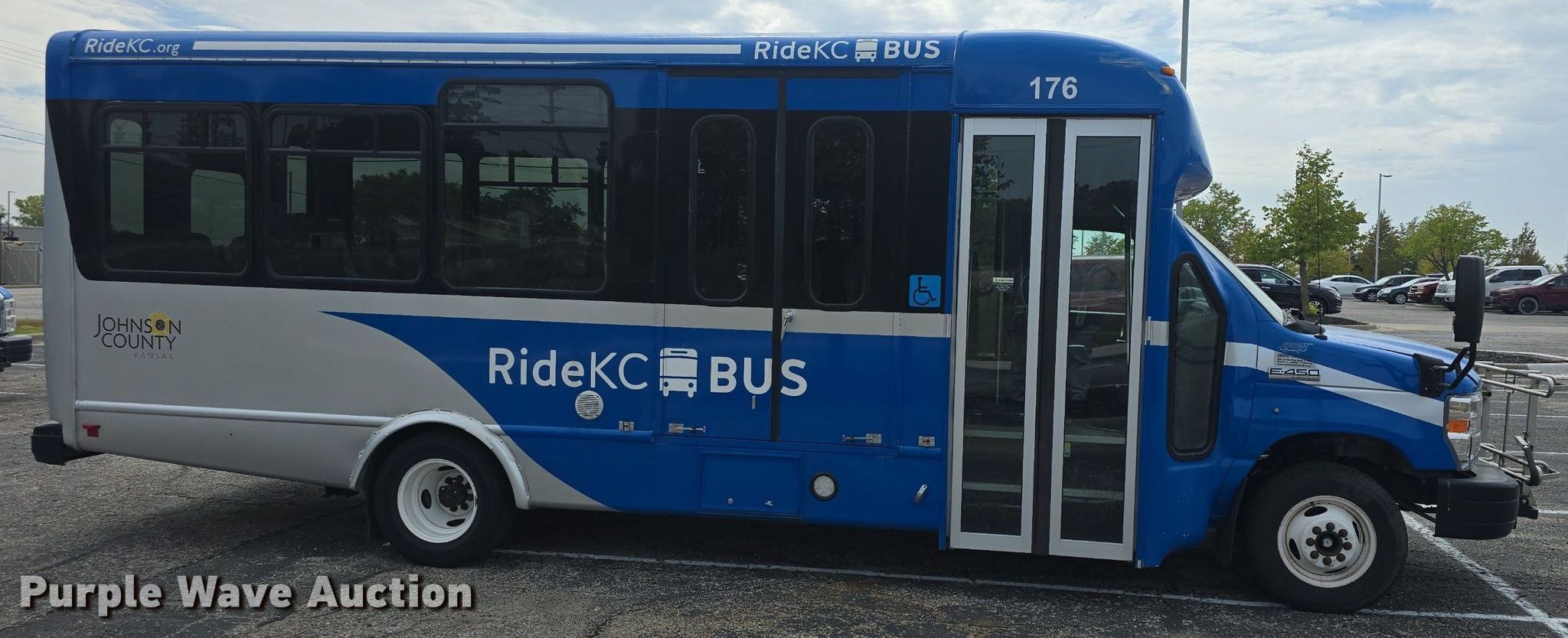 2018 Senator II ST69940C shuttle bus. Miles: 100,126 on odometer, VIN: 1FDFE4FS1JDC38005, Unit #: 176. Engine Displacement: 6.8L V10 SOHC, Fuel type: Gas. Transmission Automatic. Chassis Axles: Single, Suspension: Spring, Brakes: Hydraulic, GVWR: 14,500 lbs, Wheelbase: 174". Interior AC, Heat, Heated mirrors, Cruise control, Auxiliary controls, Electric passenger sliding door, Passengers: 20, Wheelchair lift. Tires Size: 225/75R16, Brand: Bridgestone. Notes Decals will be removed prior to auction, Bike rack will be removed prior to auction, Dash warning indicator: Check engine. Kansas title. Title distribution may be delayed up to 14 days from verification of funds. Johnson County Transit. Olathe, KS 66061