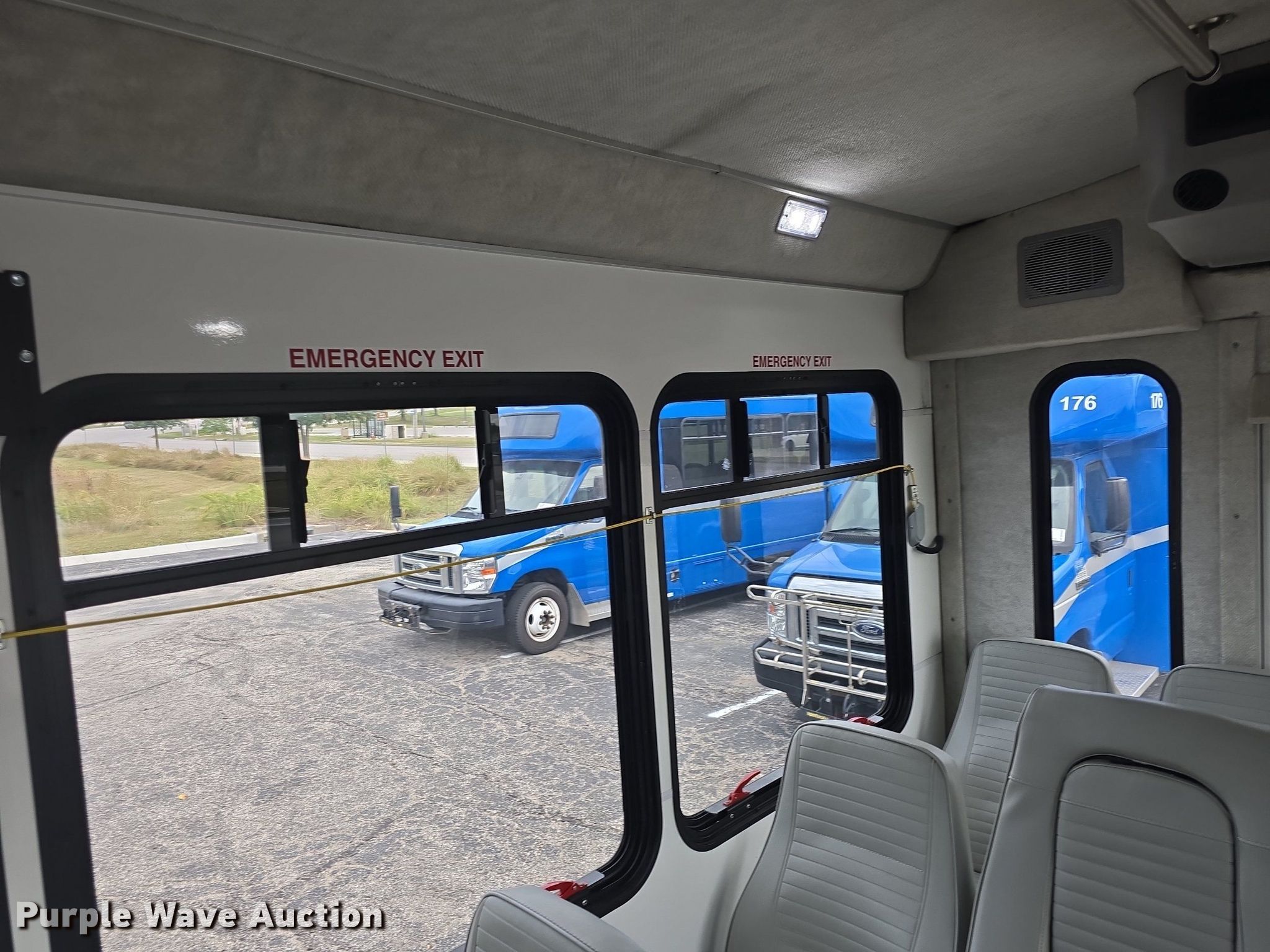 2018 Senator II ST69923C shuttle bus. Miles: 170,541 on odometer, VIN: 1FDFE4FS3JDC38006, Unit #: 177. Engine Displacement: 6.8L V10 SOHC, Cylinders: 10, Fuel type: Gas. Transmission Automatic. Chassis Axles: Single, Suspension: Spring, Brakes: Hydraulic, GVWR: 14,500 lbs, Wheelbase: 174". Interior AC, Heat, Heated mirrors, Cruise control, Auxiliary controls, Electric passenger sliding door, Passengers: 20, Wheelchair lift. Tires Size: 225/75R16, Brand: Bridgestone. Notes Decals will be removed prior to auction, Windshield chipped or cracked, Dead battery. Kansas title. Title distribution may be delayed up to 14 days from verification of funds. Johnson County Transit. Olathe, KS 66061