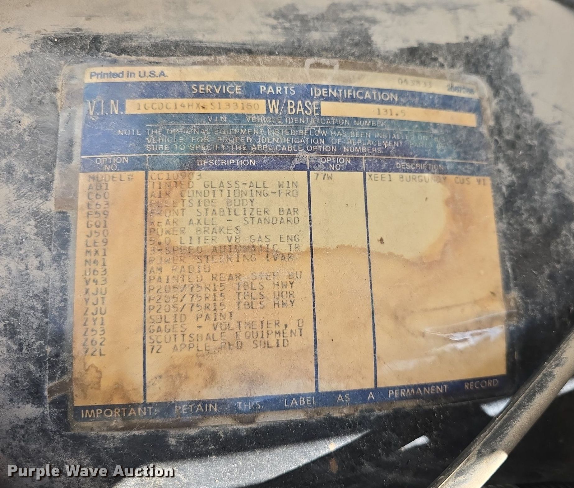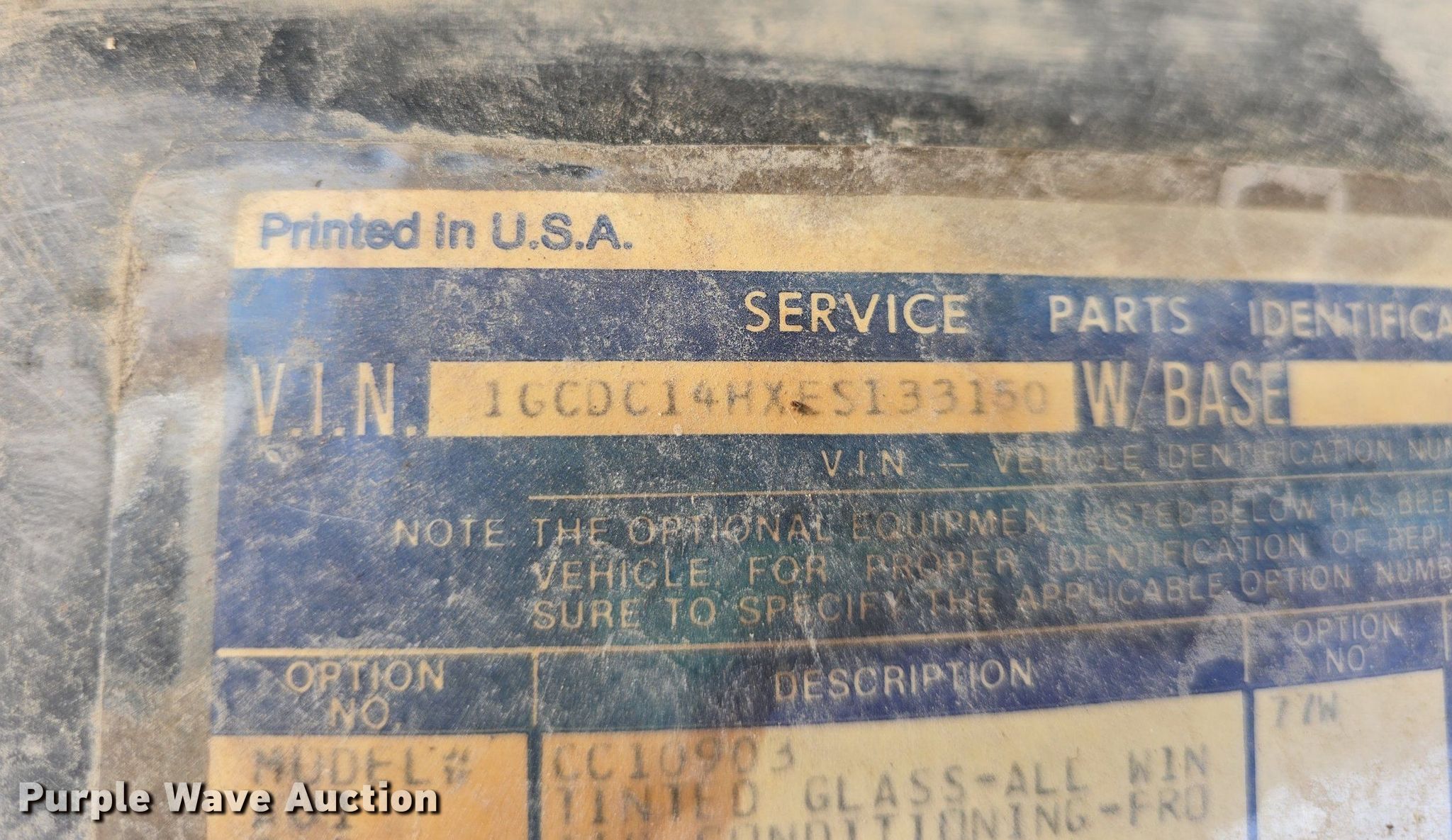 1984 Chevrolet Scottsdale 10 pickup truck. Miles: 93,696 on odometer, VIN: 1GCDC14HXES133150, Unit #: 103. Engine Displacement: 5.0L V8 OHV, Fuel type: Gas. Transmission Automatic. Interior Heat. Tires Size: 215/75R15. Notes Transmission issues , Rust damage. Kansas title. Title distribution may be delayed up to 14 days from verification of funds. Ottawa, KS 66067