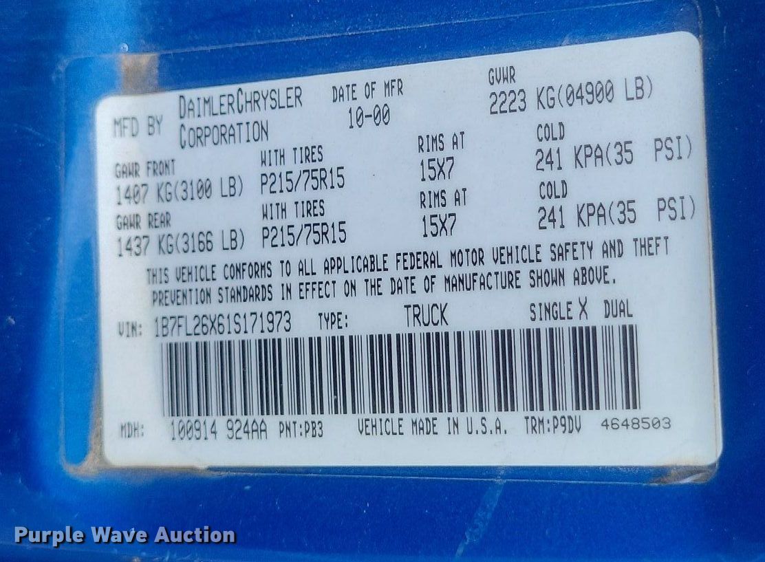 Purple Wave is selling a used Compact Pickup or Van in Missouri. This item is a 2001 Dodge Dakota Sport pickup truck with the following: Miles: 132,145 on odometer, VIN: 1B7FL26X61S171973