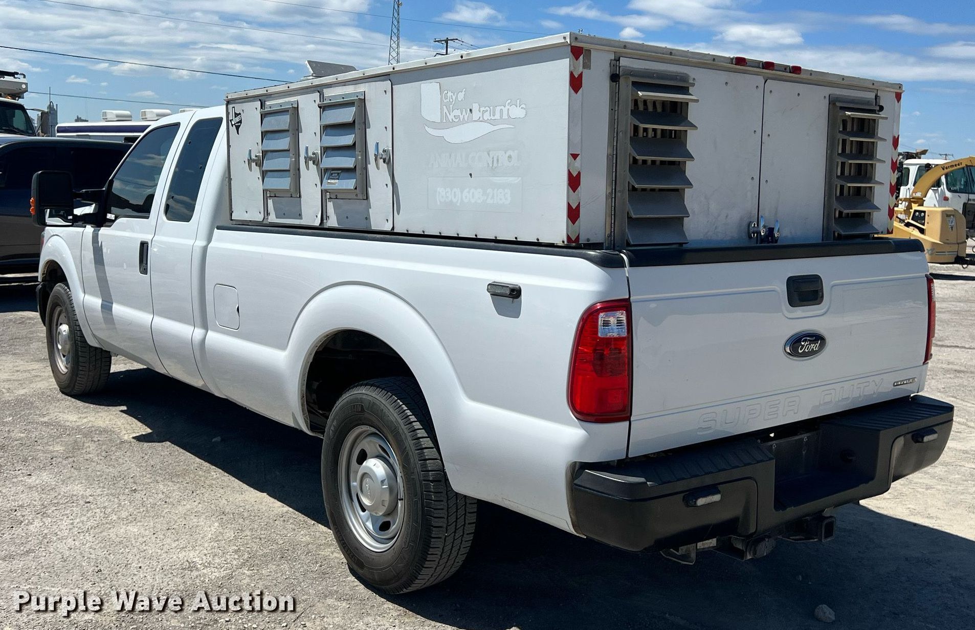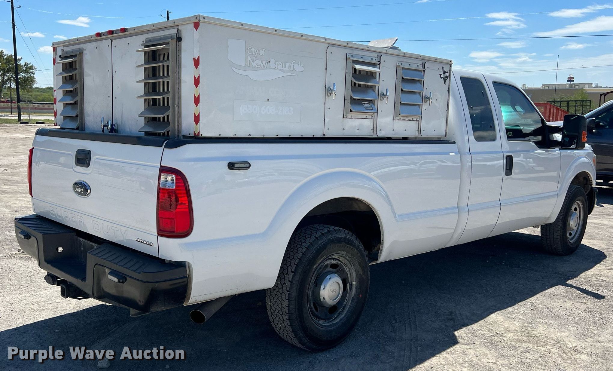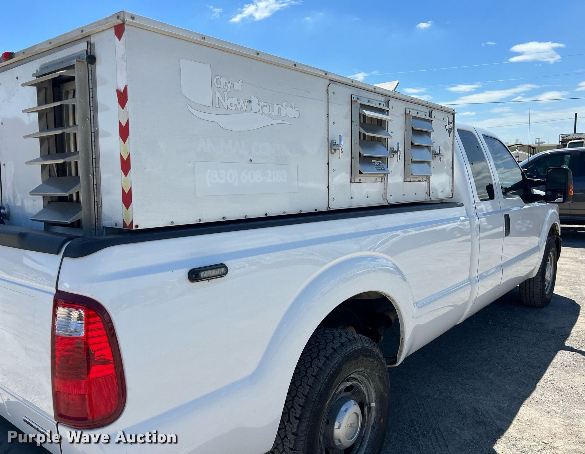 2016 Ford F250 Super Duty XL SuperCab pickup truck. Miles: 127,115 on odometer, VIN: 1FT7X2A68GEC61771, Unit #: 24002. Engine Displacement: 6.2L V8 OHV, Cylinders: 8, Fuel type: Gas. Transmission Automatic. Interior AC, Heat, Heated mirrors, Power windows, Power locks. Features Kennel bed insert. Tires Size: LT245/75R17. Notes Dash warning indicator: Check engine. Texas title. Title distribution may be delayed up to 14 days from verification of funds. City of New Braunfels. New Braunfels, TX 78130