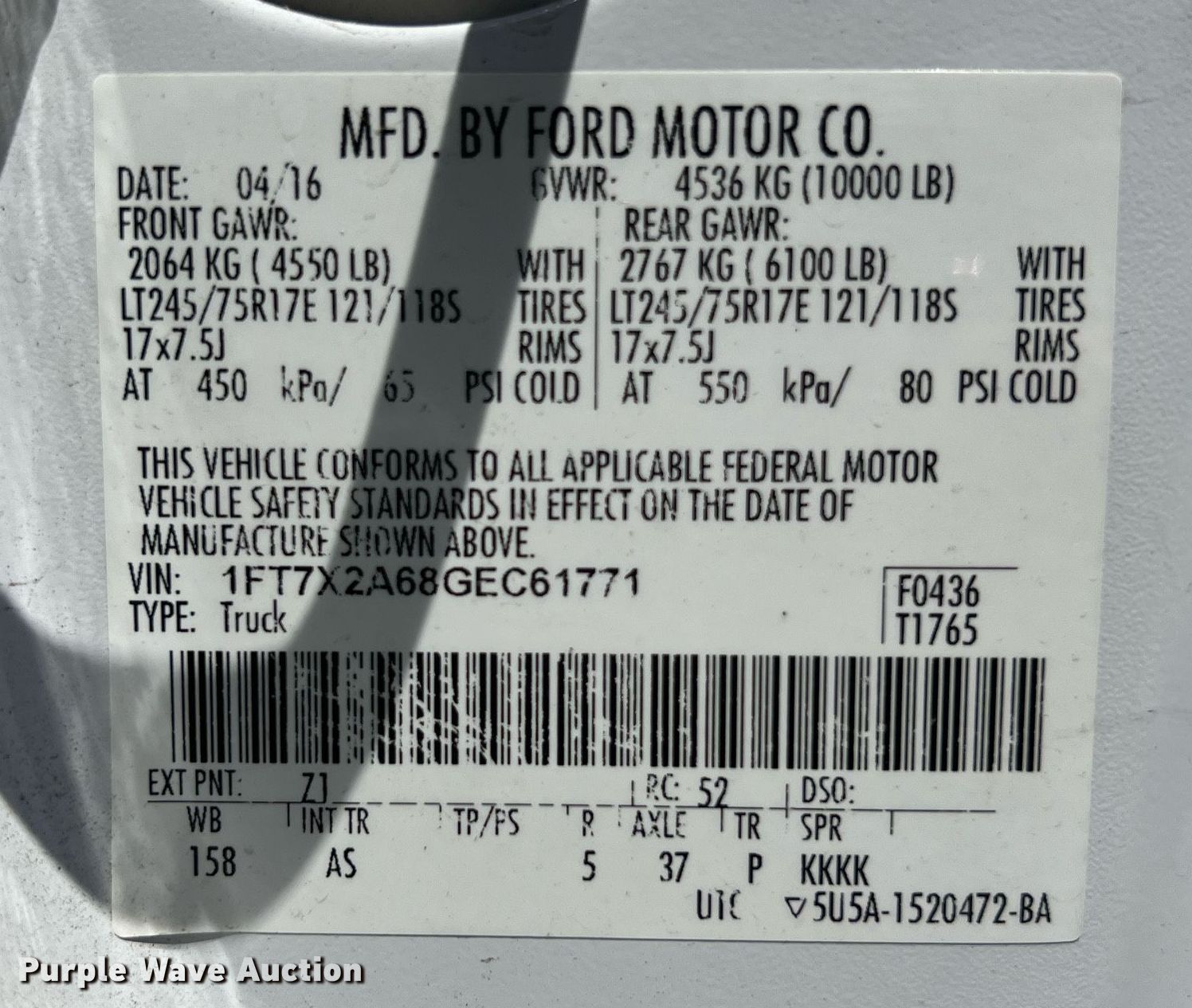- VIN: 1FT7X2A68GEC61771