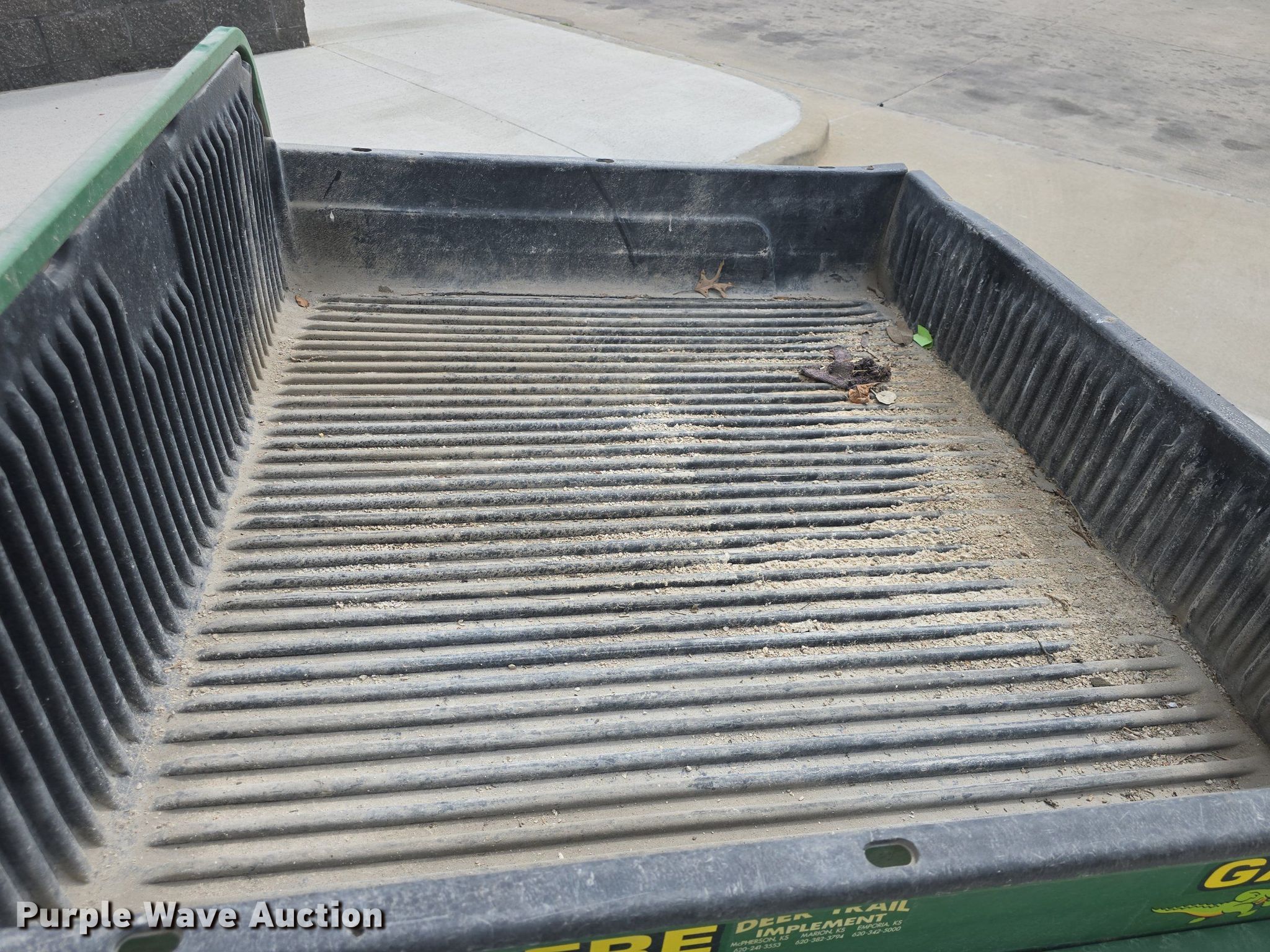 2001 John Deere Gator utility vehicle. Miles: Unknown, Hours: Unknown, Serial: W006X4X027072. Engine Fuel type: Gas. Transmission Automatic. Features Grille guard, Dump bed 45" L x 52" W, Dump bed type: Electric/ Hydraulic, Manual. Tires Front: 22.5x10-8, Rear: 25x13-9, Brand: Carlisle. Notes Non-operational unit, Must be towed or hauled, Missing hour and mile meter, Engine issues, locked up, Electric pump issues for bed, Dead battery. Transfer of ownership documentation will be a bill of sale. Johnson County Transit. Olathe, KS 66061