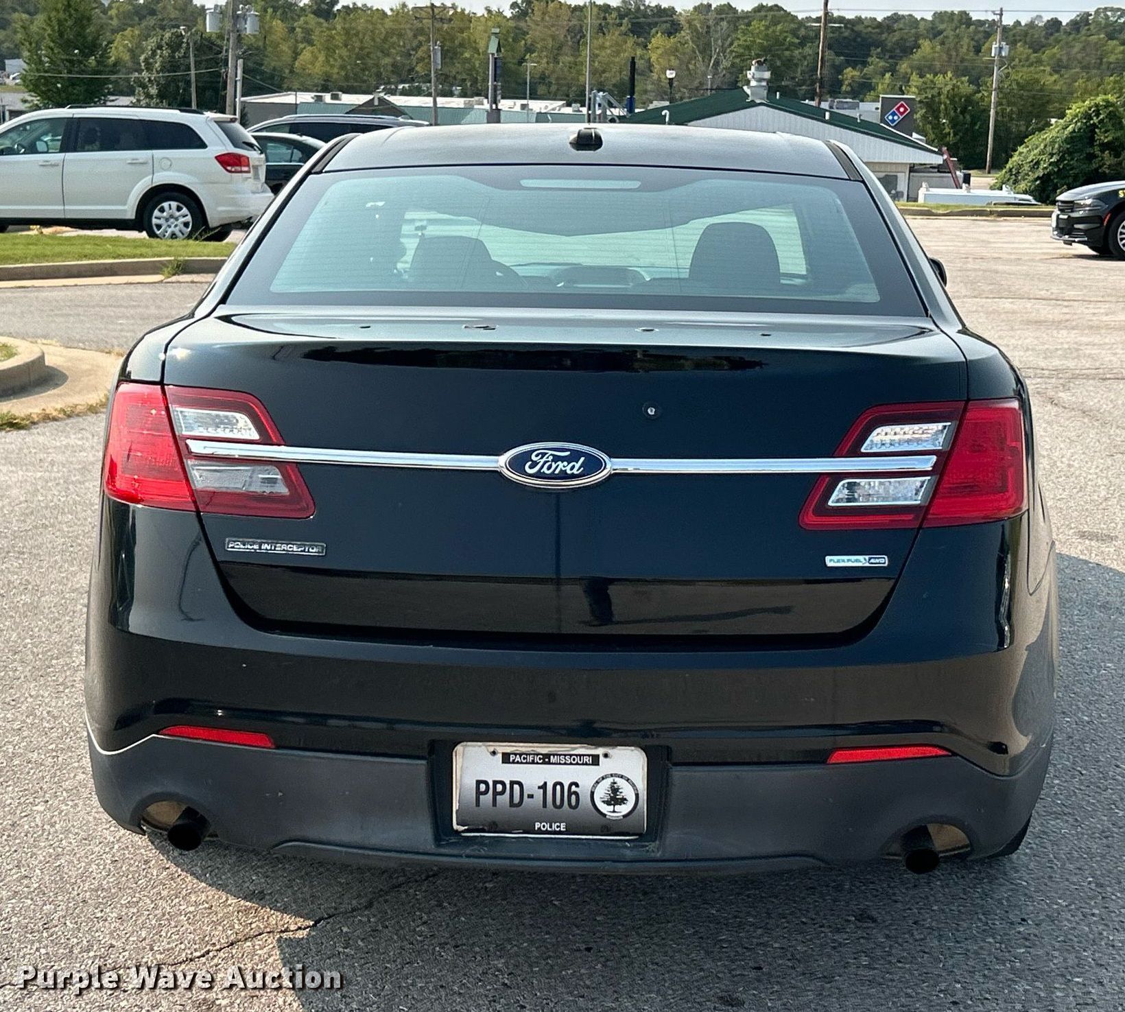 2013 Ford Taurus Police Interceptor. Miles: 143,363 on odometer, Hours: 12,834 on meter, VIN: 1FAHP2M8XDG160089. Engine Displacement: 3.5L V6 DOHC, Cylinders: 6, Fuel type: Gas. Transmission Automatic, All wheel drive. Interior AC, Heat, Seat: Power driver, Power windows, Power locks, Cruise control. Tires Size: 245/55R18. Notes Dash warning indicator: TPMS. Missouri title. Seller is a government entity who will be assigning and distributing the title. Please contact the seller for distribution questions. Title distribution may be delayed up to 14 days from verification of funds. City of Pacific, MO. Pacific, MO 63069