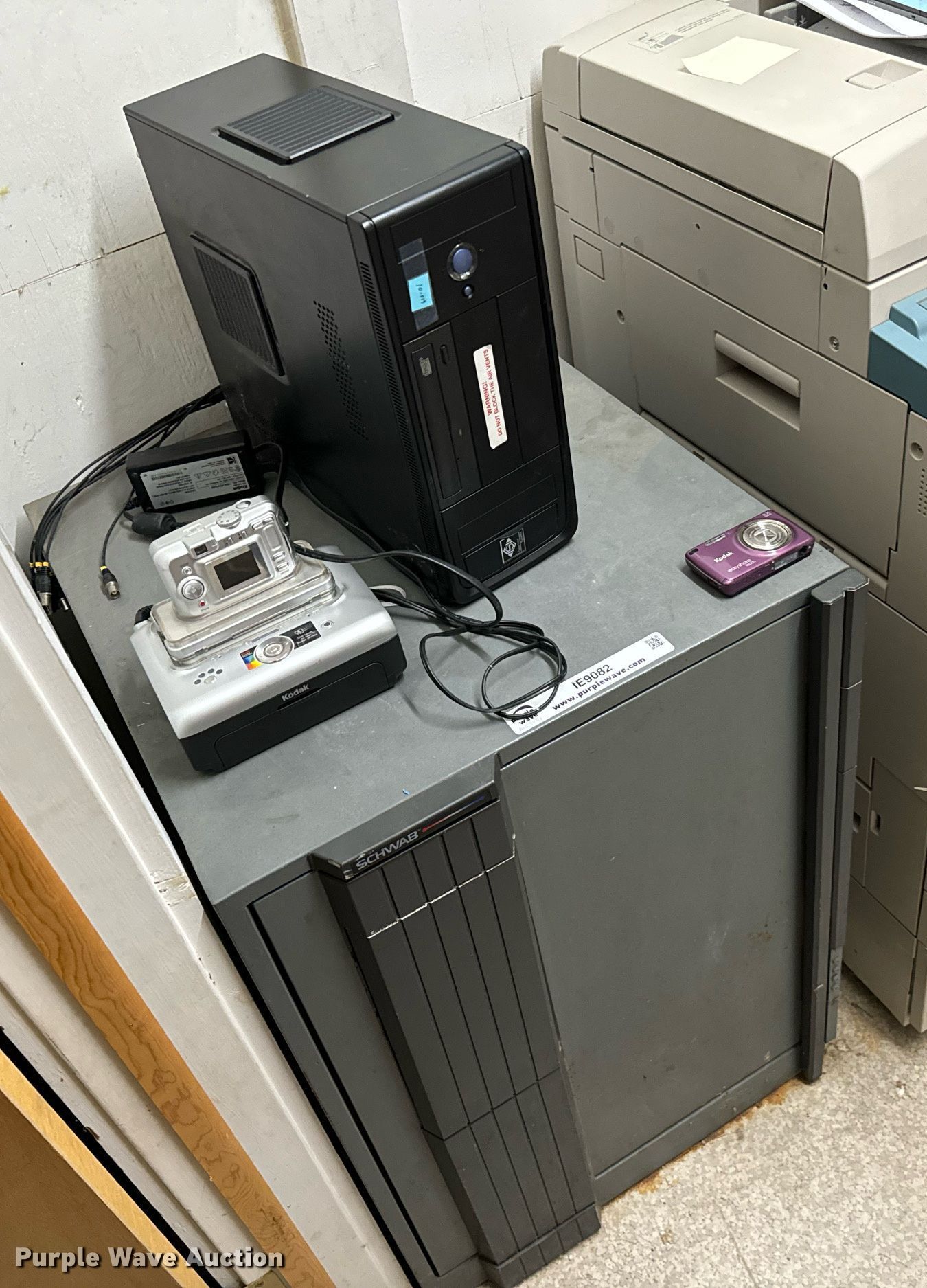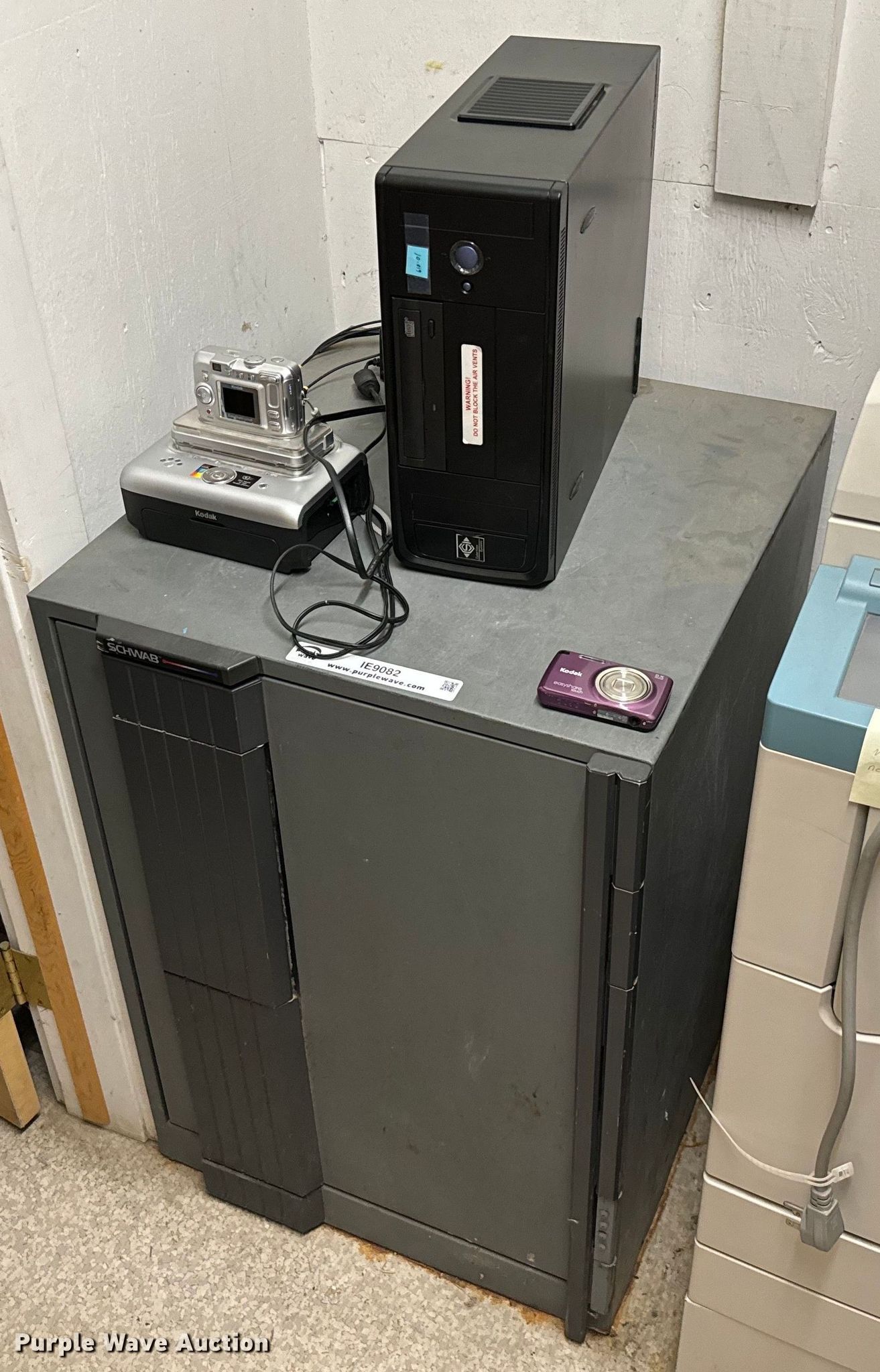 Purple Wave is selling a used Office Supplies and Equip. in Oklahoma. This item is a Office supplies with the following: Schwab safe, Kodak camera and printer, Kodak camera, Cyber view system DVR