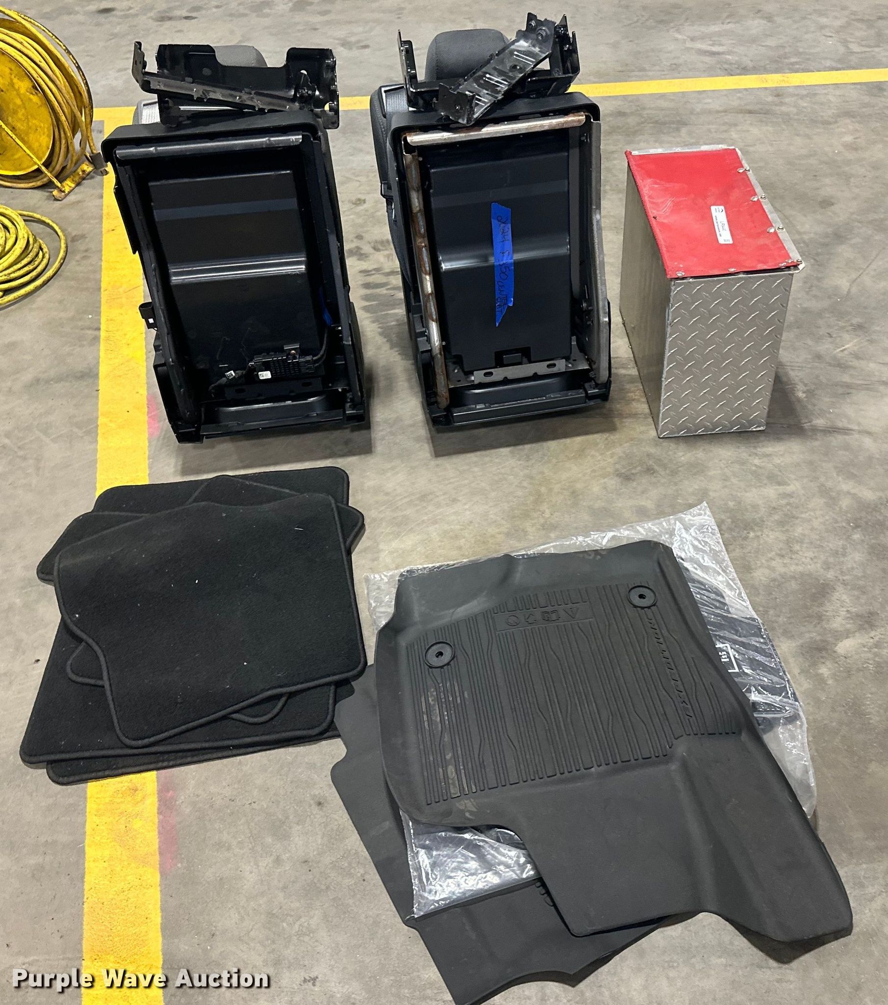Automotive parts. Center seats Fits Ford F250, Floor mats, Diamond plate storage bin. City of Hugo, MN. Hugo, MN 55038