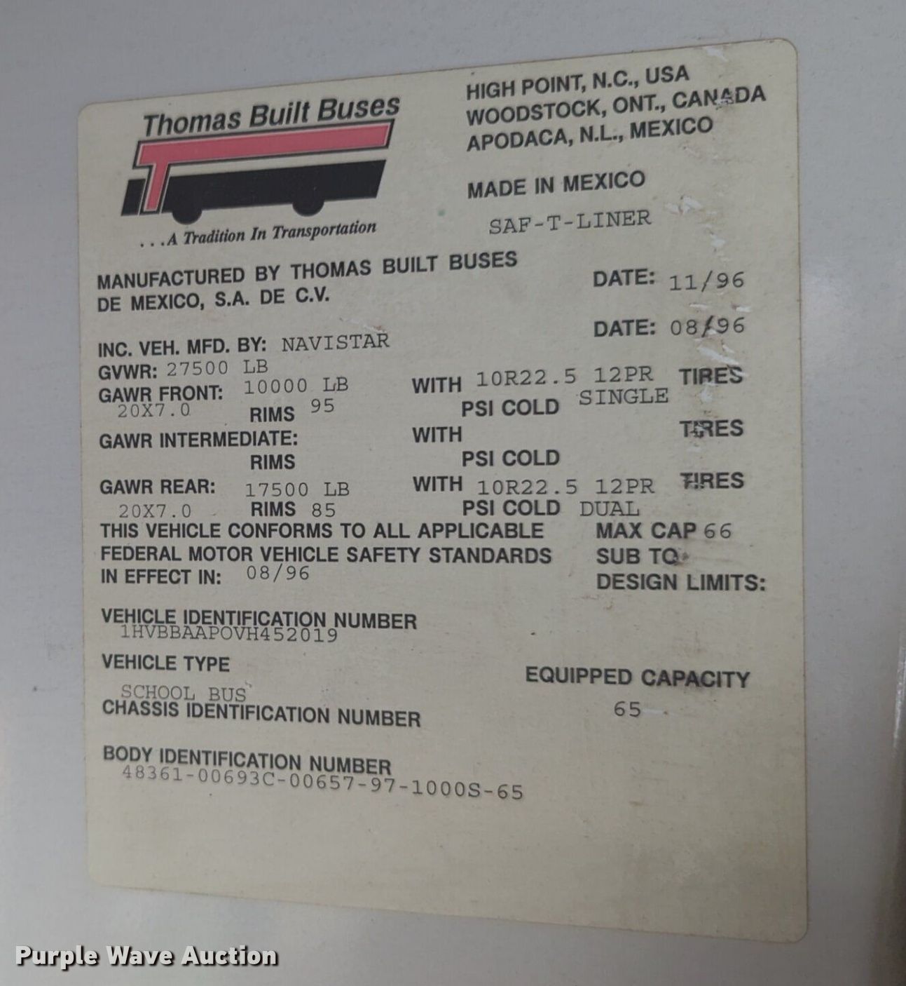 Purple Wave is selling a used Bus in Oklahoma. This item is a 1997 International 3800 school bus with the following: Miles: 767 on odometer, Actual mileage unknown, VIN: 1HVBBAAP0VH452019