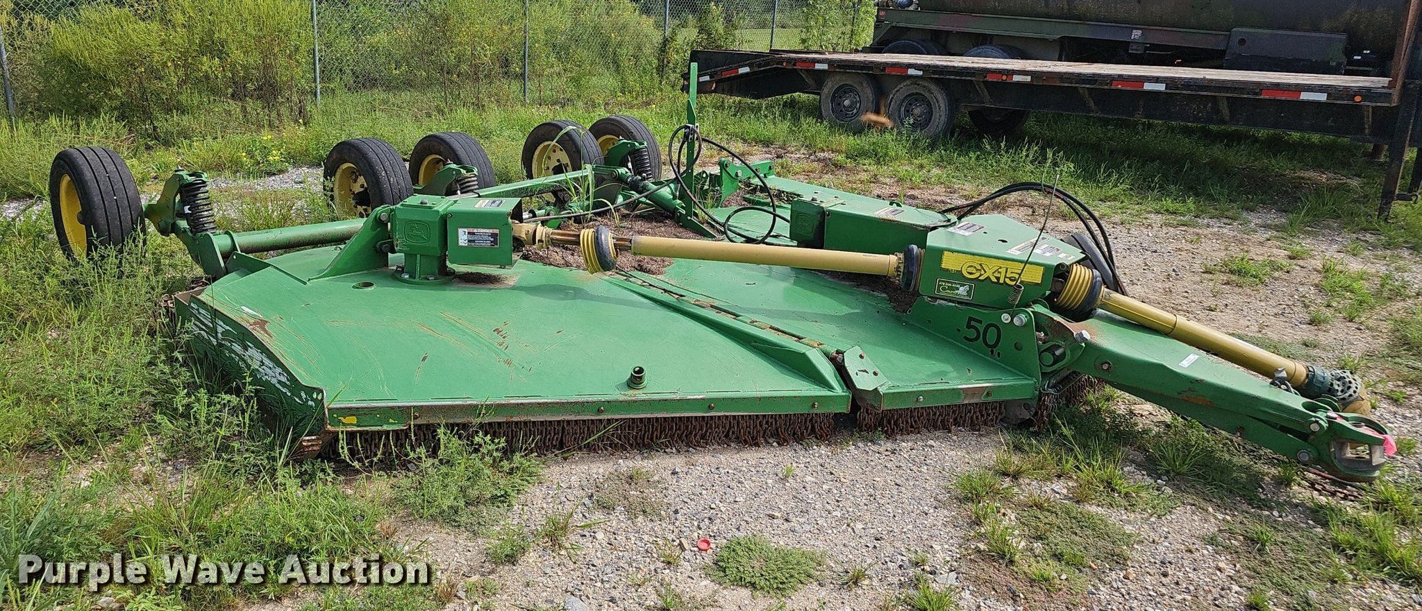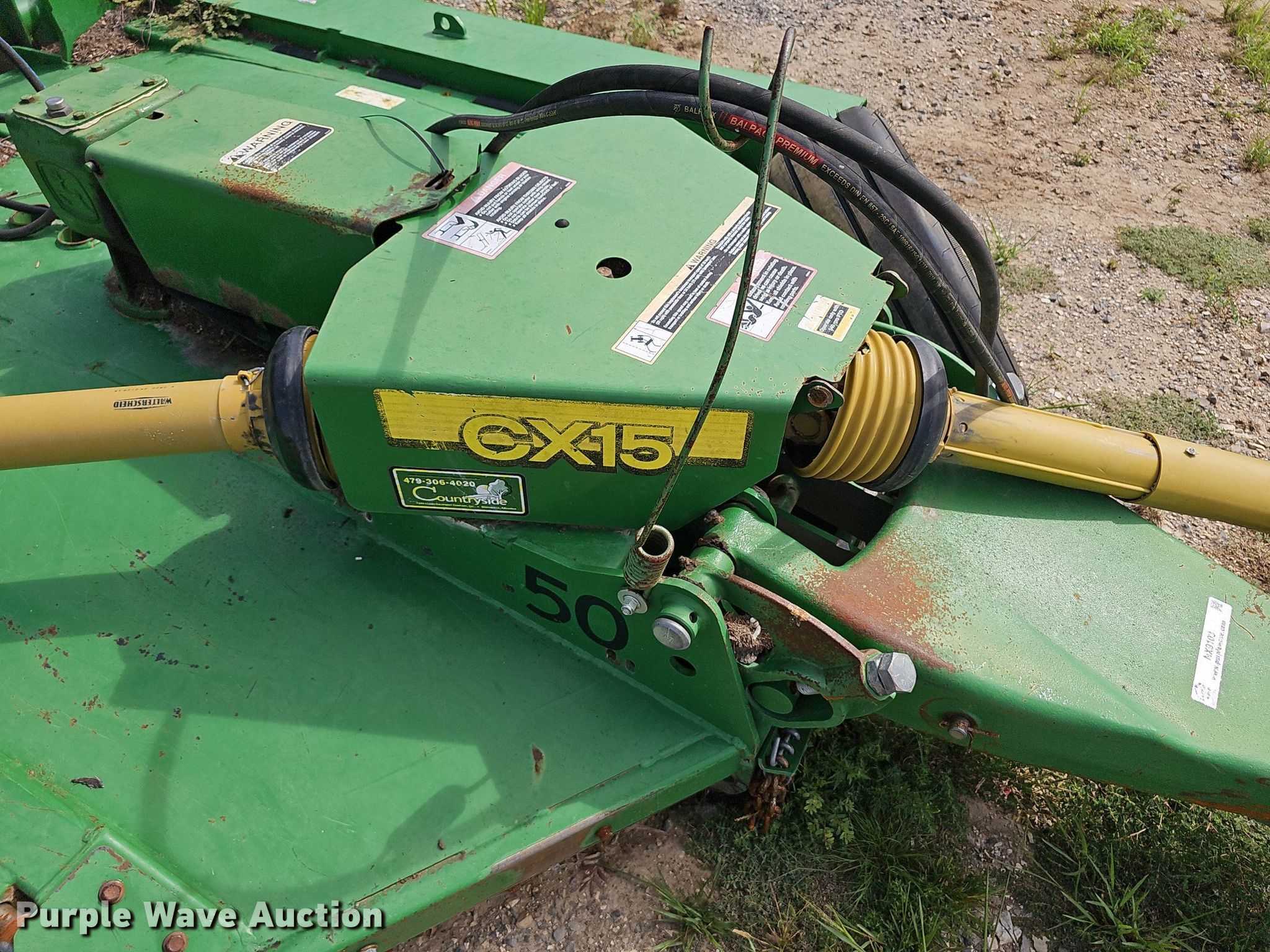 Purple Wave is selling a used Mower, Cutter, Shredder in Arkansas. This item is a John Deere CX15 batwing rotary mower with the following: Width: 11' 5", Hydraulic lift, Hydraulic fold, PTO: 540