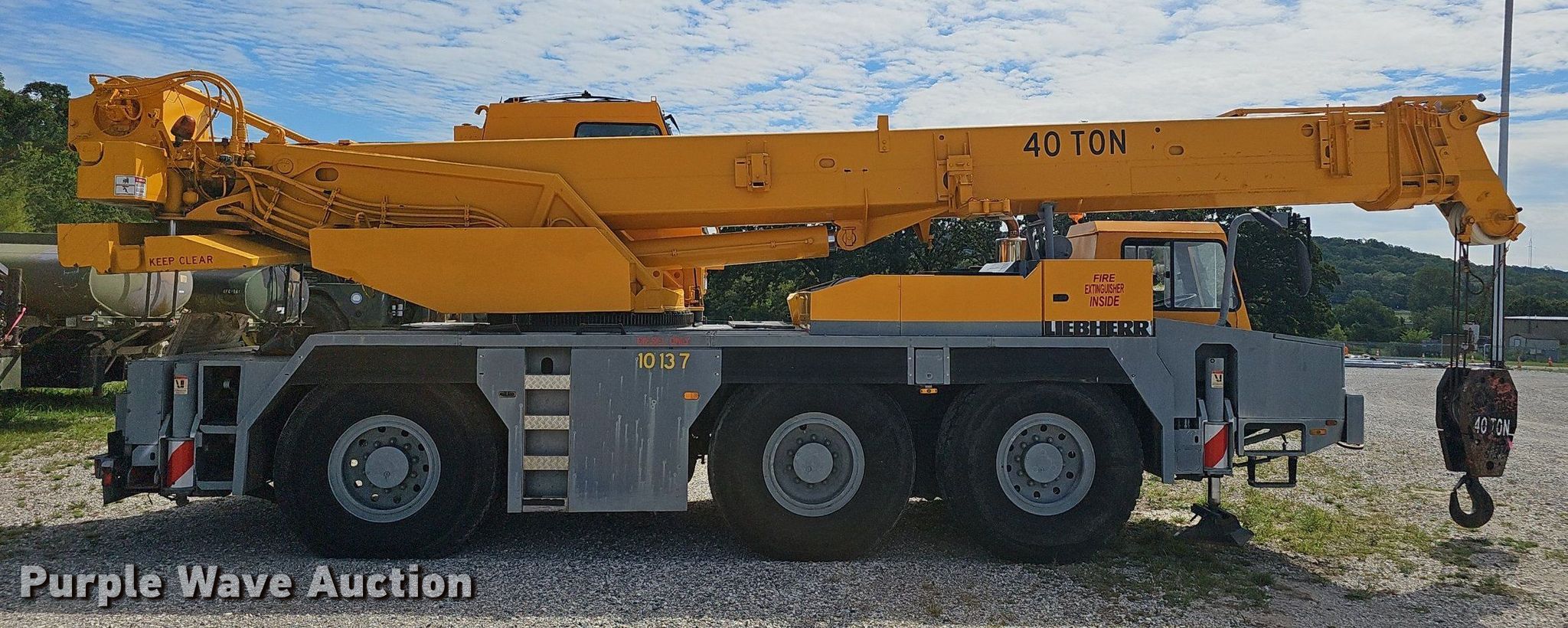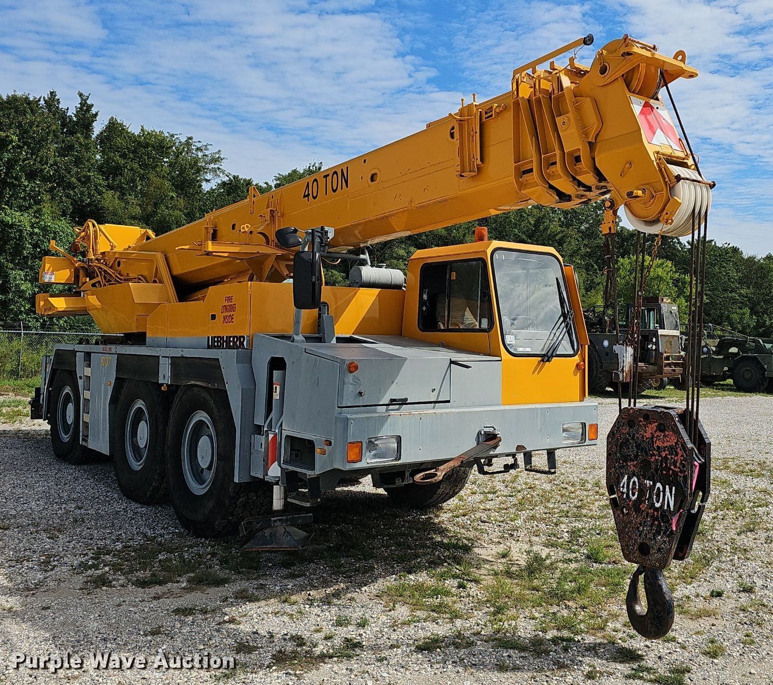 Purple Wave is selling a used Rough or All Terrain Crane in Arkansas. This item is a 1999 Liebherr LTM 1040/1 crane with the following: Hours: 8,633 on meter, VIN: W09363000XEL05268, Serial: 0019417