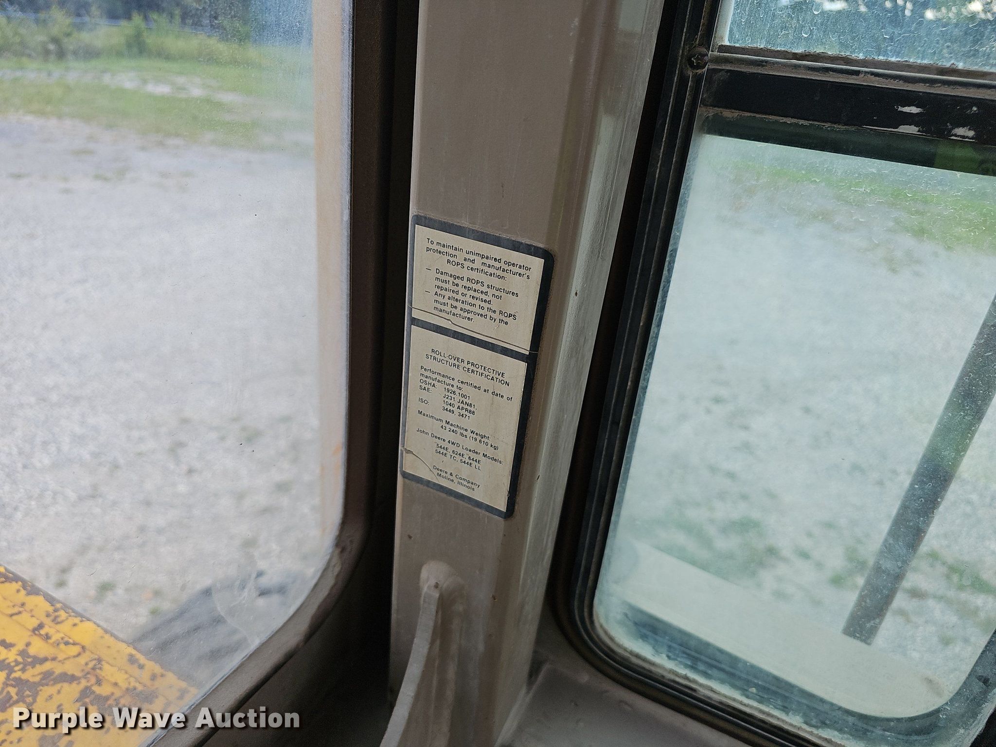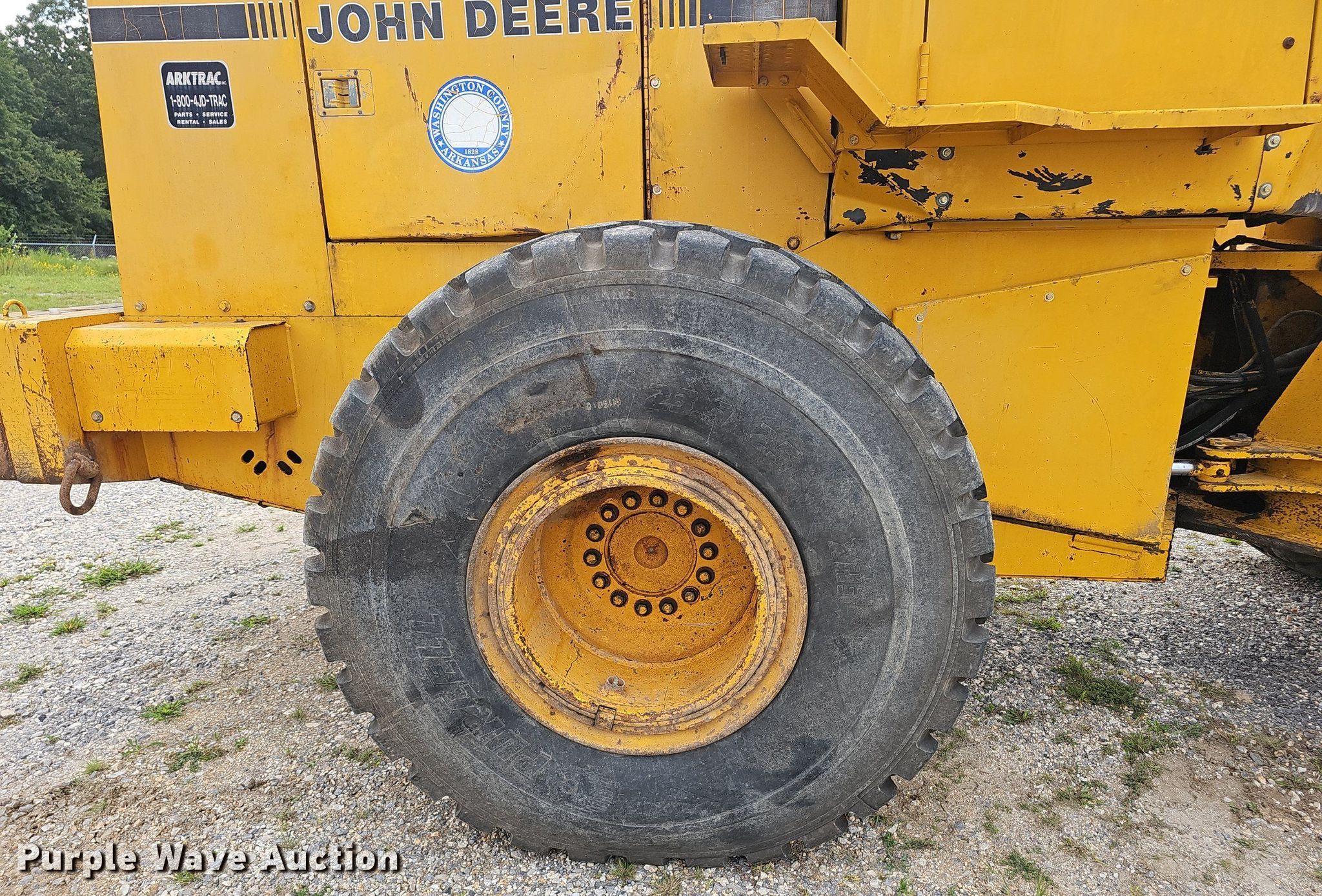 1991 John Deere 644E loader. Hours: 13,304 on meter, Serial: DW644ED532928. Engine Cylinders: 6, Fuel type: Diesel. Transmission Powershift, 4F - 4R. Operators station Enclosed cab, Heat, Bucket controls: Joystick. Features Bucket Width: 109". Tires Size: 23.5R25. Notes Non-operational rear brakes. Washington County, AR. Fayetteville, AR 72701