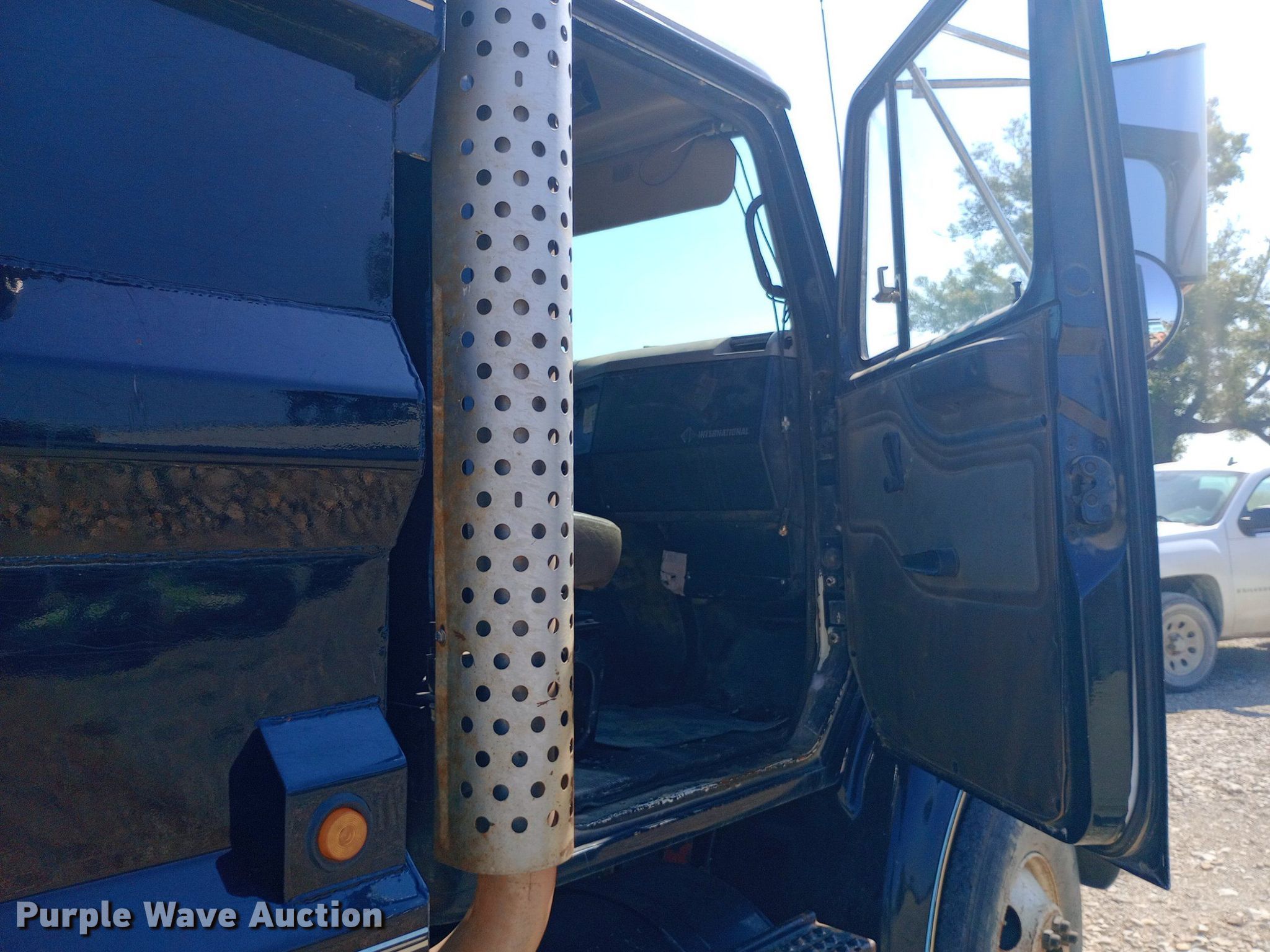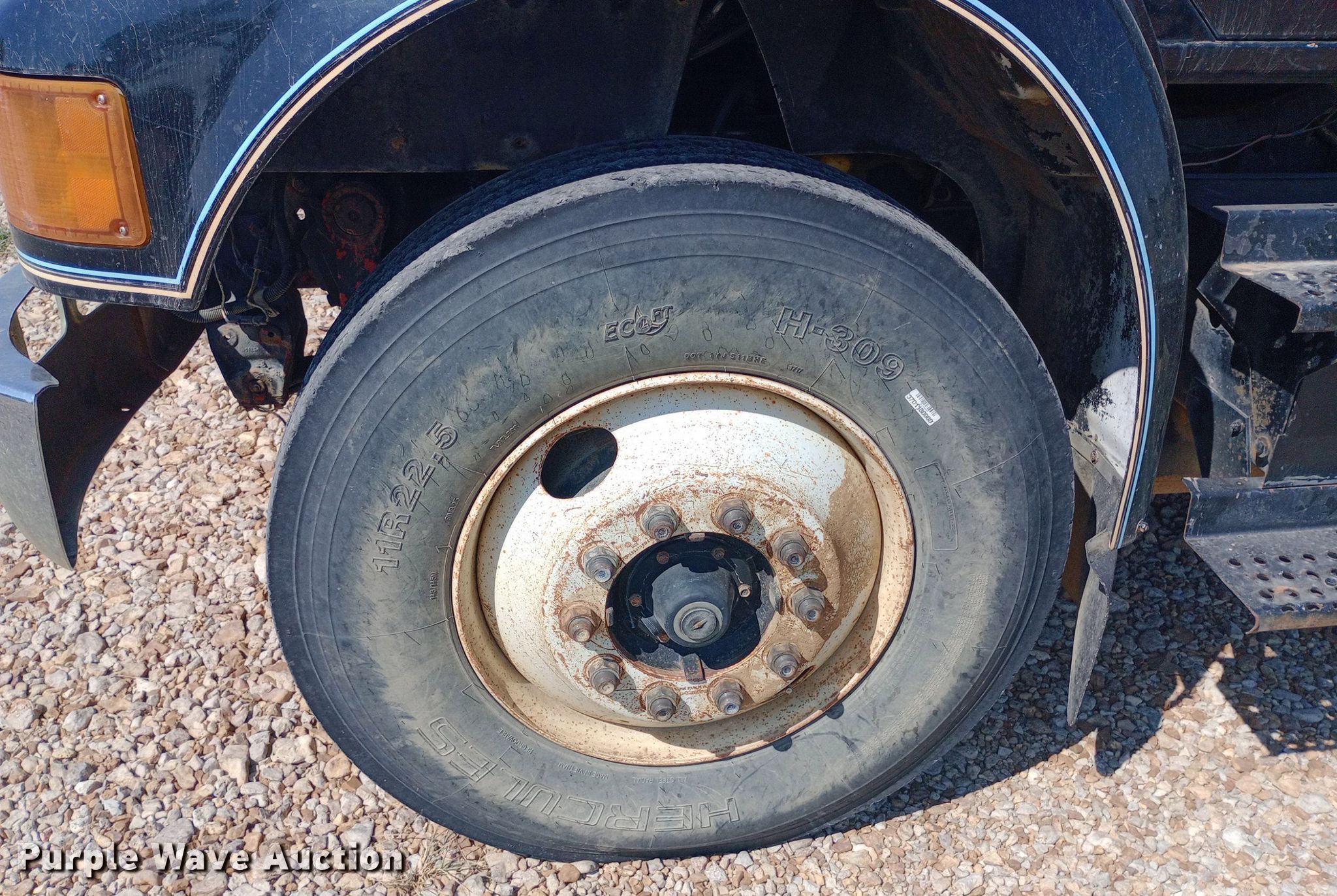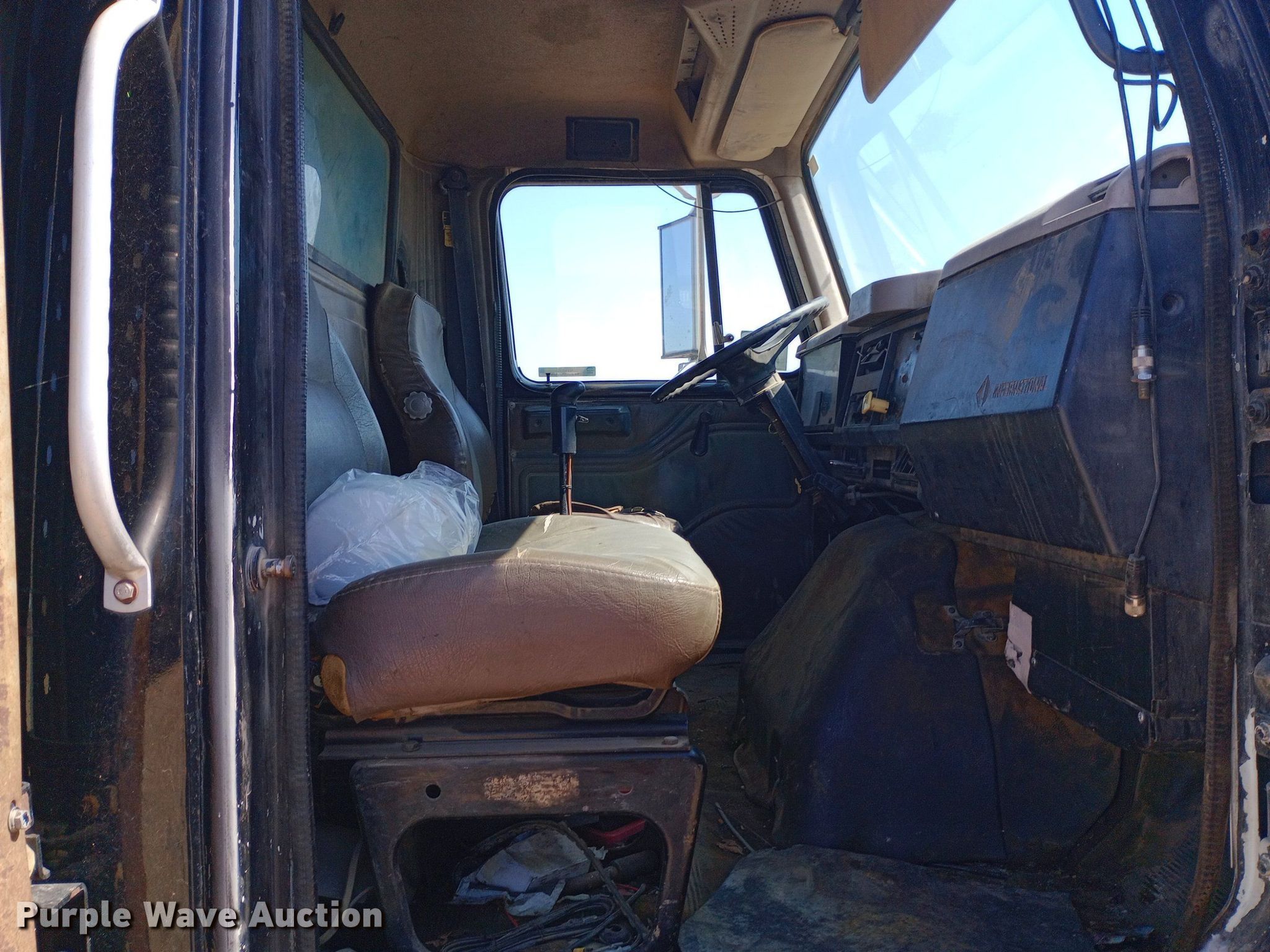 1996 International 8100 dump truck. Miles: 308,740 on odometer Actual mileage unknown, VIN: 1HTHCADR6TH402557. Engine Displacement: 8.7L, Cylinders: 6, Fuel type: Diesel. Transmission Manual, Speed: 9. Chassis Axles: Tandem, Differential lock: Inter-axle, Suspension: Spring over walking beam, Brakes: Air, PTO, Wheelbase: 174". Interior AC, Heat, Brake controller. Features Dump bed 14' L x 96" W, Side height: 42", Side board height: 10", Bed type: Steel, Roll tarp, Ram: Single, End gate: Manual. Tires Size: 11R22.5. Notes Windshield chipped or cracked, Non-operational AC. Kansas title. Mileage has not been verified. Exempt will be written in the odometer disclosure on the title. Eureka, KS 67045