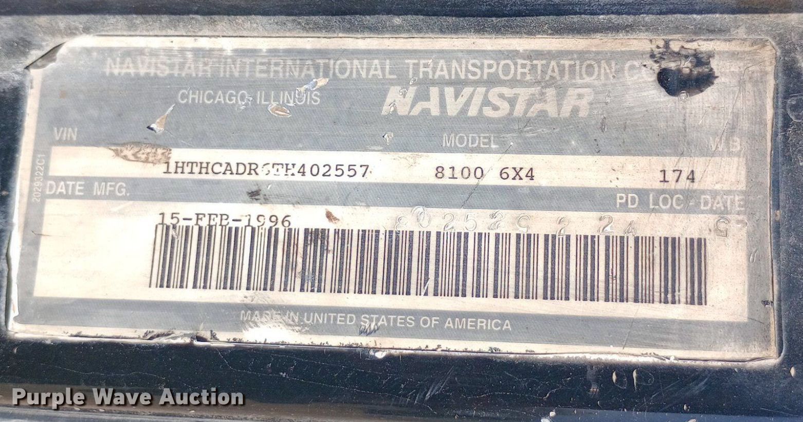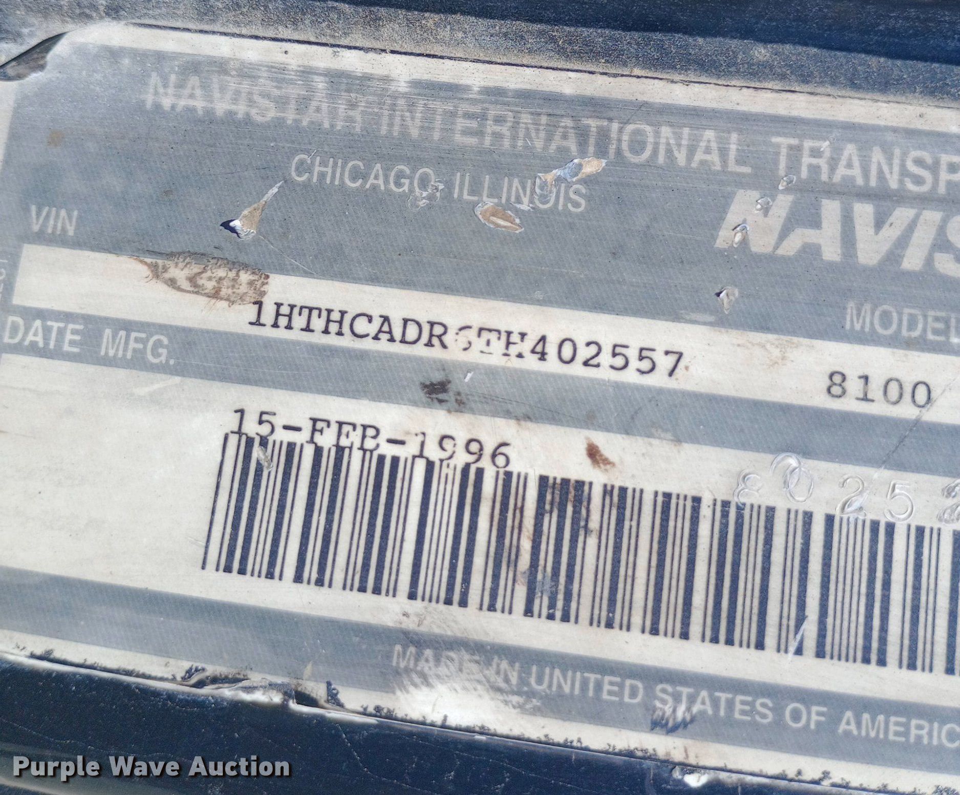 Purple Wave is selling a used Construction Dump Truck in Kansas. This item is a 1996 International 8100 dump truck with the following: Miles: 308,740 on odometer, Actual mileage unknown, VIN: 1HTHCADR6TH402557