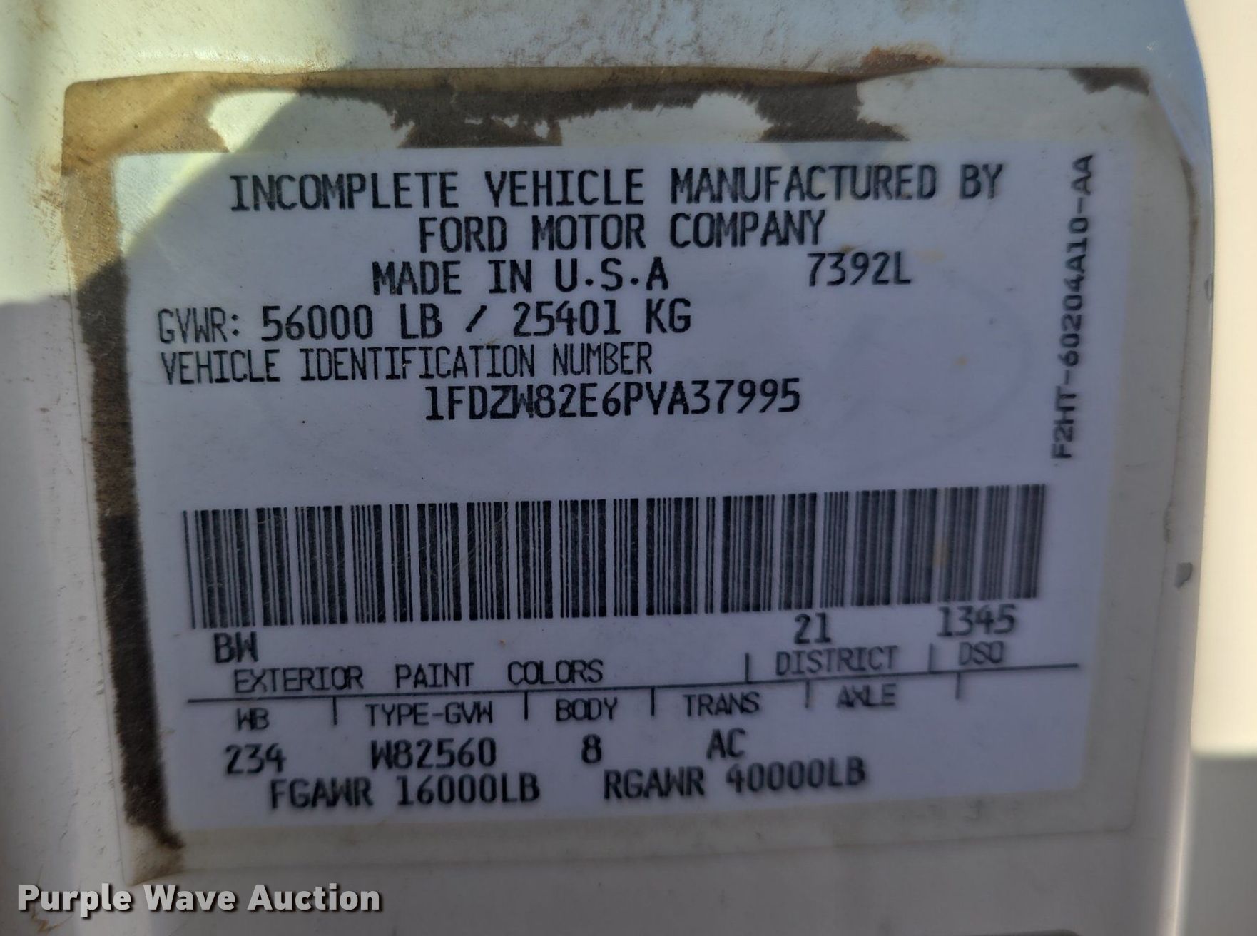 - VIN: 1FDZW82E6PVA37995
