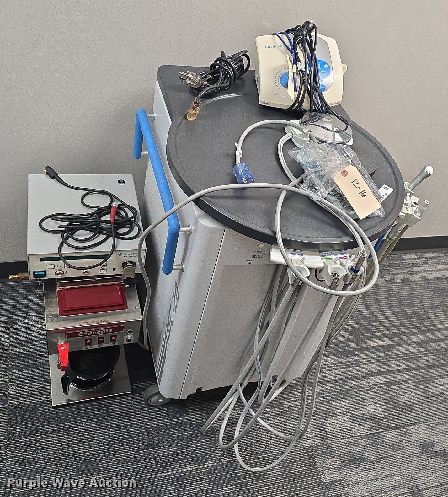 Purple Wave is selling a used Medical Equip. in South Dakota. This item is a Dental cleaning equipment with the following: Linvatec Hall Surgical, AMC-20 CF mobile dental system, Cavitron Plus Extended SPS Gen- 1 31, Classic Coffee Concepts coffee maker, Unit #: 12-16,12-17, 12-18