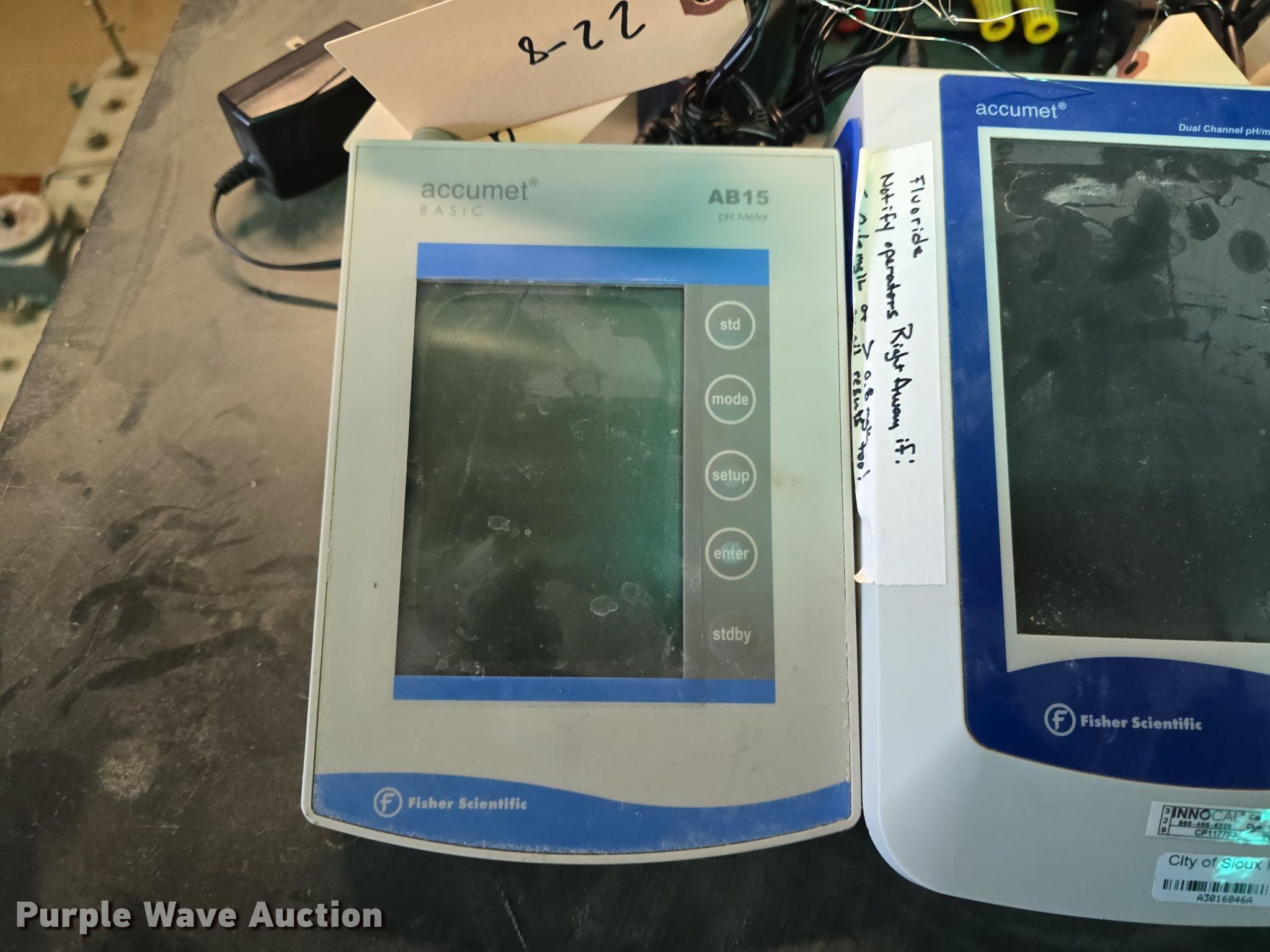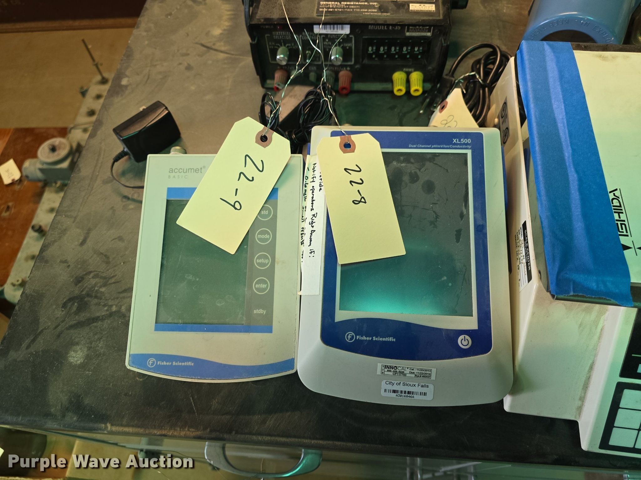 Lab equipment. Calibrator Transcat MN-35, Air Filter Unit Clemco 03578 W/MSA face mask, PH/ISE meter, PH meter, Pressure transducer. Notes Unit #: 22-9, 22-8, 22-16, 22-17, 22-11, 22-16. City of Sioux Falls. Sioux Falls, SD 57104