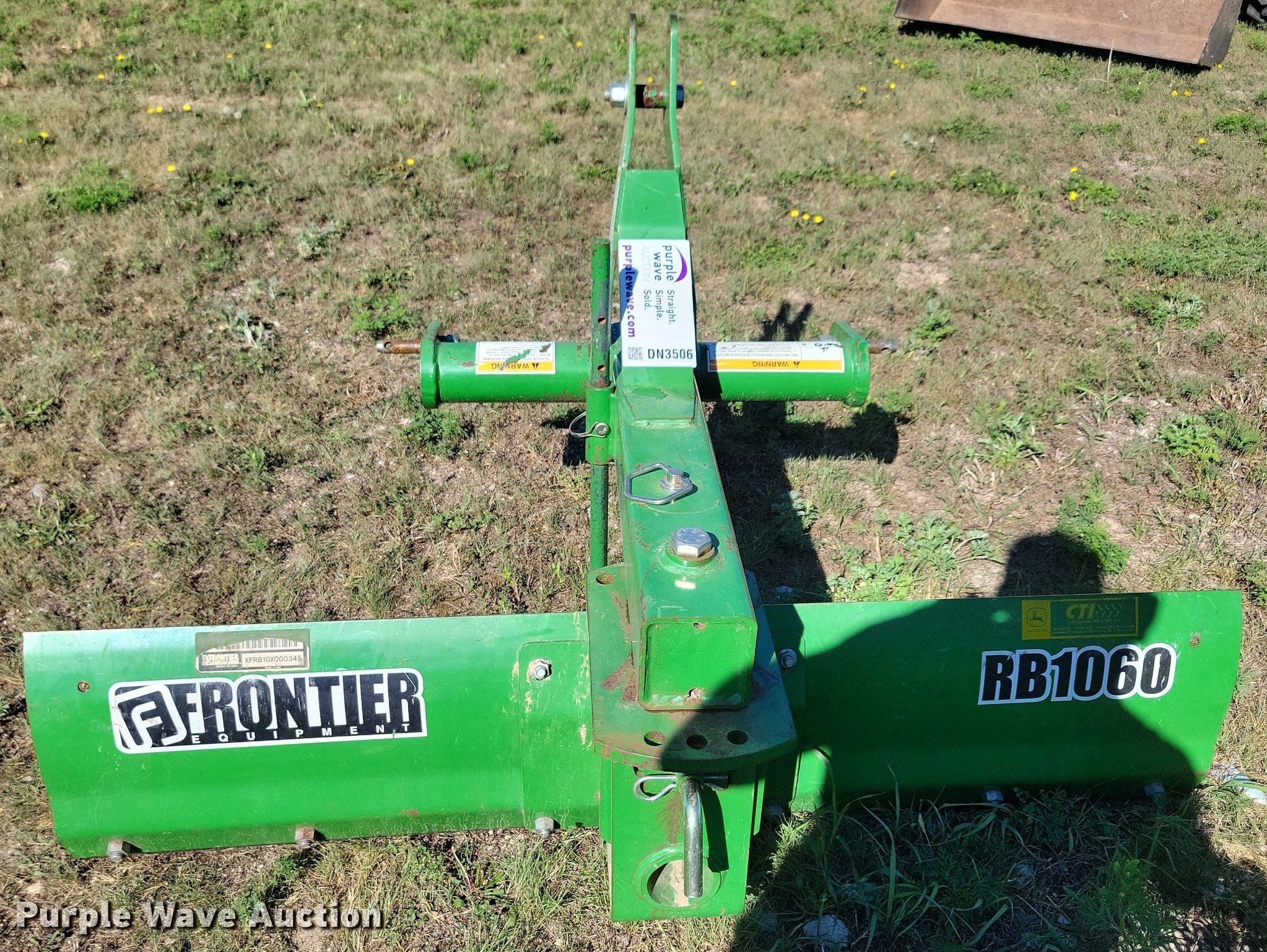 tandem disk. Overall width: 8' 3". Features Front blades Diameter: 17", Spacing: 7", Rear blades Diameter: 16", Spacing: 7", Disk scrapers, Hitch: Three point. Frontier RB1060 three point blade Serial: XFRB10X000345. Features Width: 59". Mitchell, SD 57301