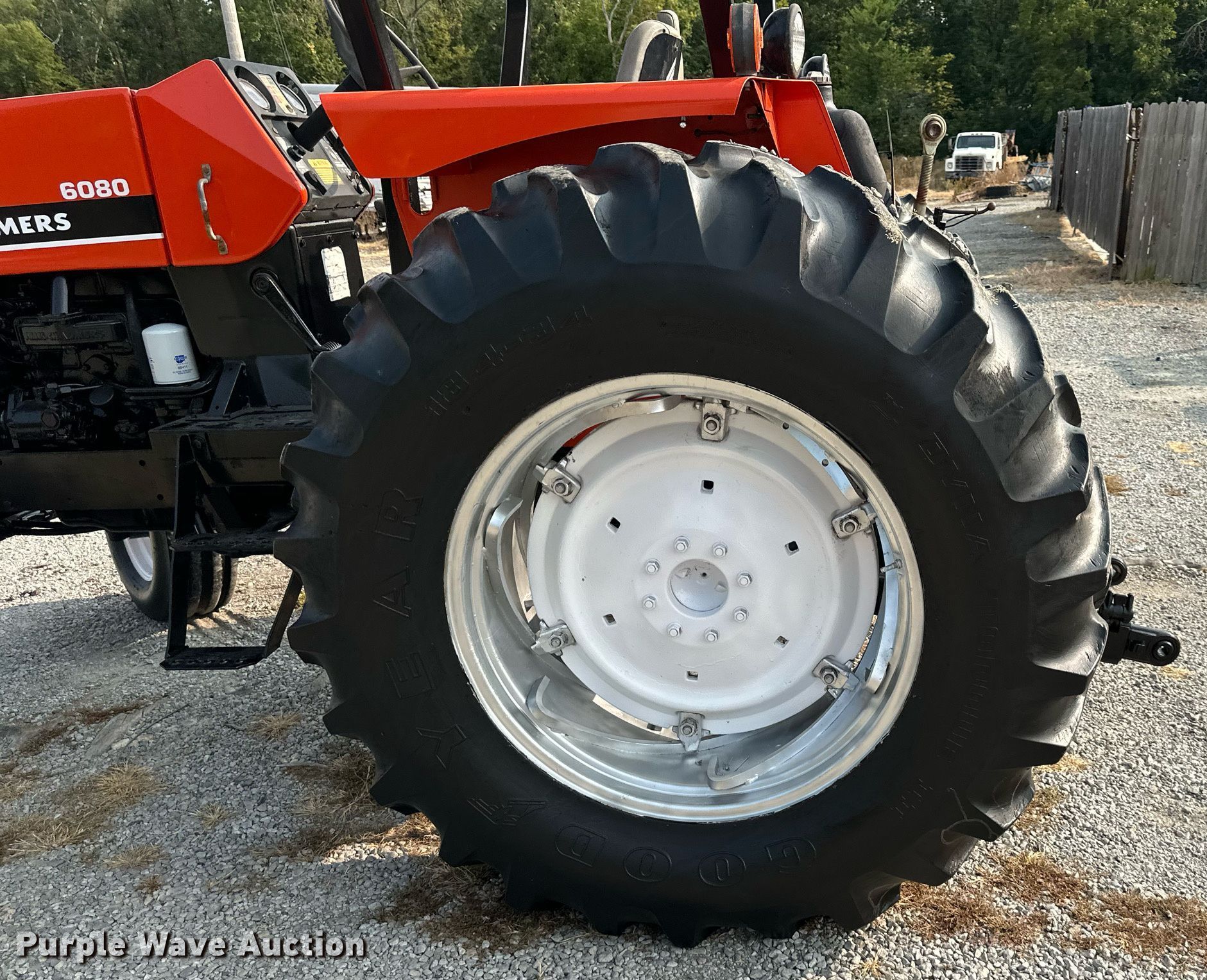 1982 Allis Chalmers 6080 tractor. Hours: 2,030 on meter, Serial: 60804407. Engine Allis Chalmers, Displacement: 3.3L, Cylinders: 4, Fuel type: Diesel. Transmission Synchro, 12F - 3R, Differential lock. Features PTO: 540, Three point Top link, Hydraulic remote sets Rear: 2. Tires Front: 11L-15, Rear: 18.4-34, Wheel weights: 2. Tonganoxie, KS 66086