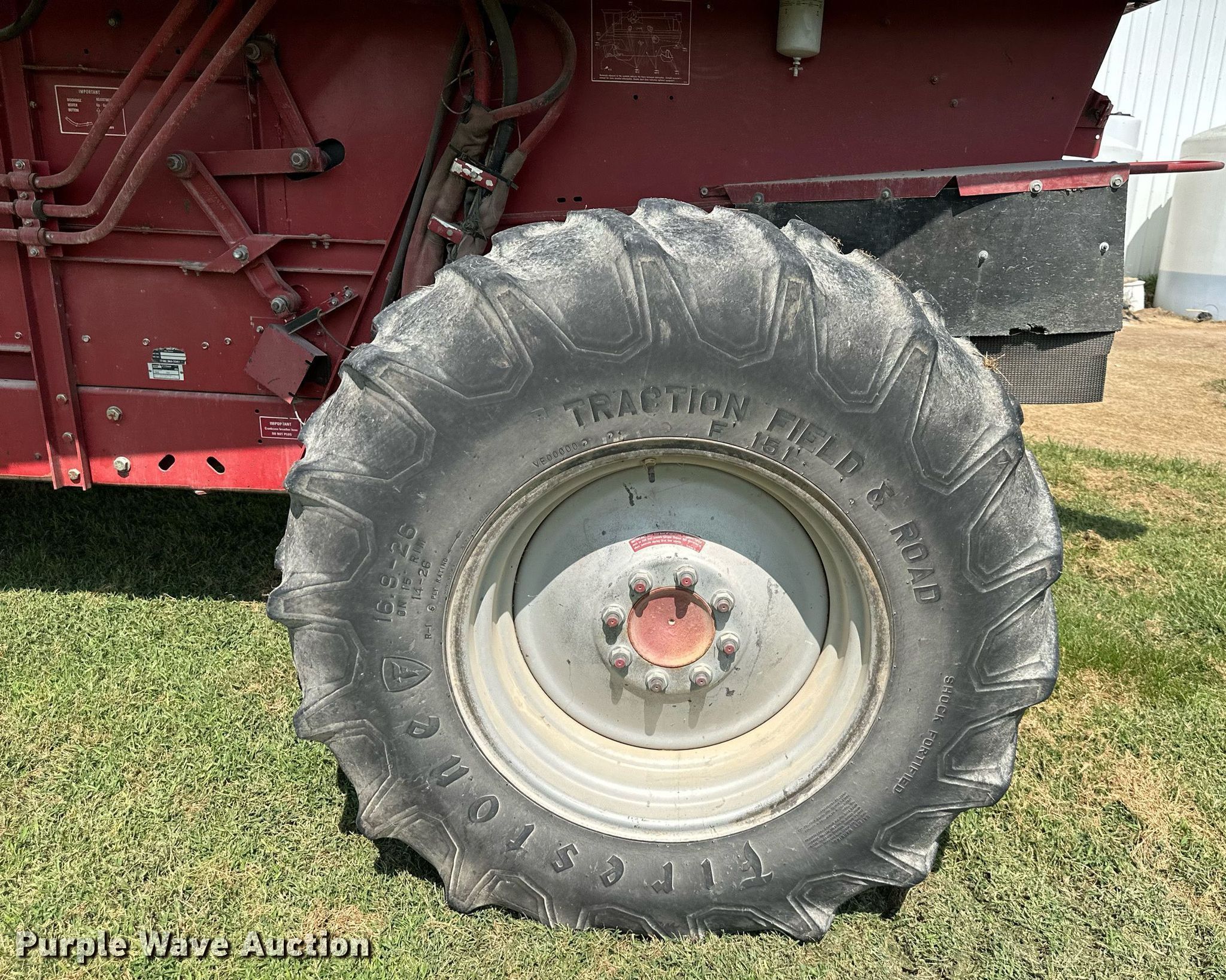 Case International 1644 Axial-Flow RWA combine. Engine hours: 5,745 on meter, Serial: JJC0097716. Engine Cummins, Displacement: 5.9L, Cylinders: 6, Fuel type: Diesel. Transmission Hydrostatic. Interior AC, Heat. Features Feederhouse: Lateral tilt, Multi-speed, Concaves: Round, Chaff spreader, Unloading auger length: 18'. Tires Front: 24.5-32, Rear: 16.9-26. Oskaloosa, KS 66066