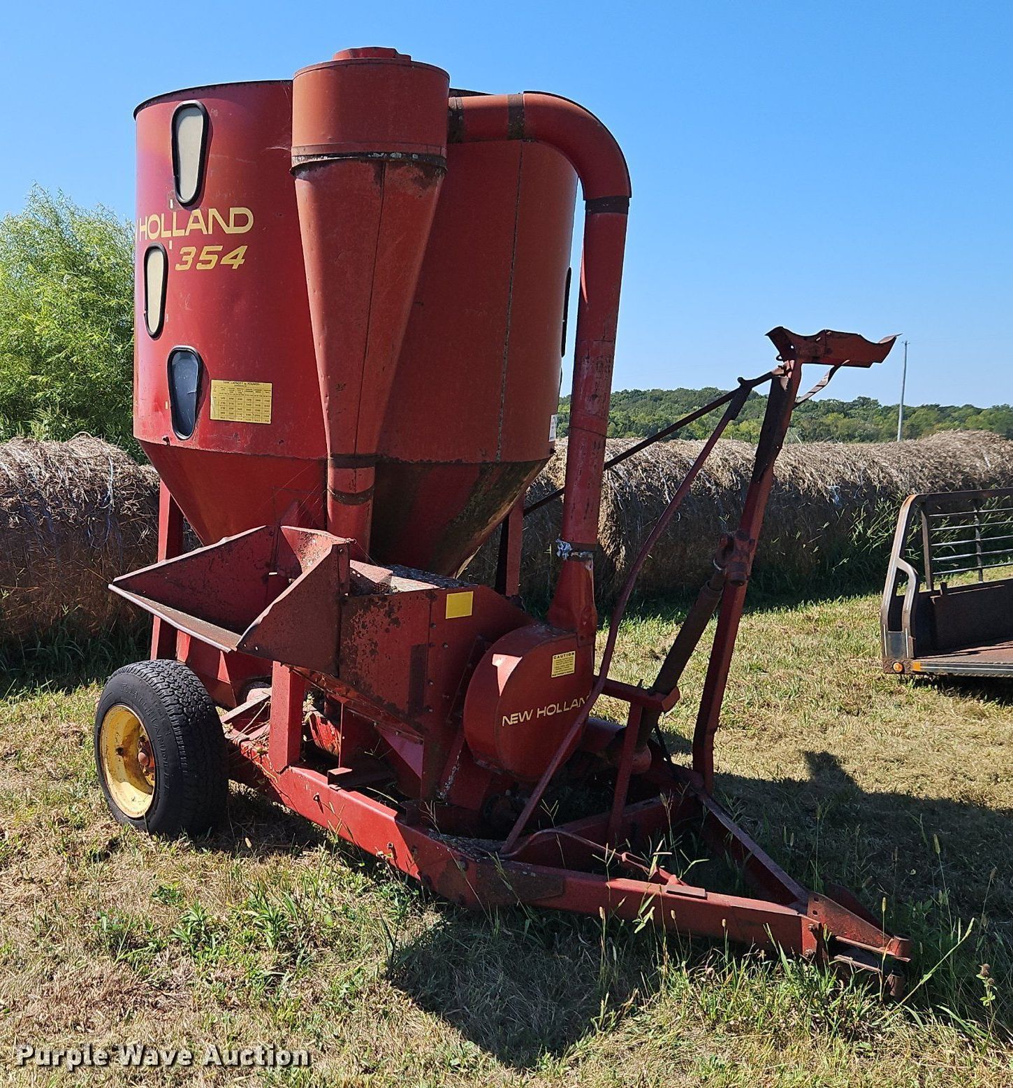 Purple Wave is selling a used Feed Mixer or Bale Processor in Kansas. This item is a New Holland 354 feed grinder/mixer with the following: Serial: 292211