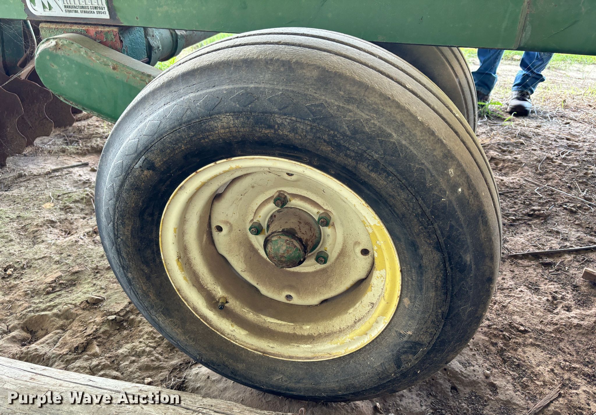 Miller disk. Front blades Diameter: 24", Spacing: 10", Rear blades Diameter: 24", Spacing: 10", Disk scrapers, Operation Hydraulic lift. Tires Tire size: 9.5-14. Dublin, TX 76446