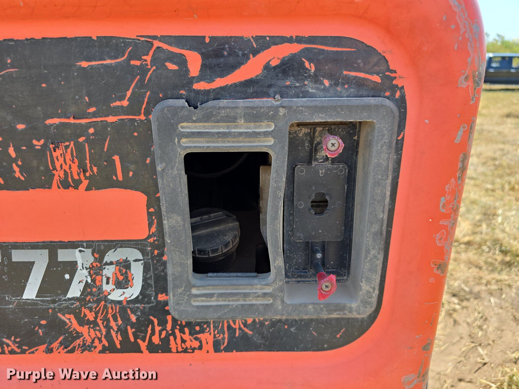 2013 Bobcat T770 tracked skid steer loader. Hours: 3,572 on meter, Miles or hours may vary, unit still in use, Serial: A3P813849. Engine Bobcat, Cylinders: 4, Fuel type: Diesel. Transmission Hydrostatic, Two speed travel. Operators station Enclosed cab, AC, Bucket control: Foot. Features Auxiliary hydraulics, Quick coupler: Hydraulic, Bucket Width: 84", Cutting edge: Weld-on. Tracks Width: 18". Golden Link Inc.. Firth, NE 68358
