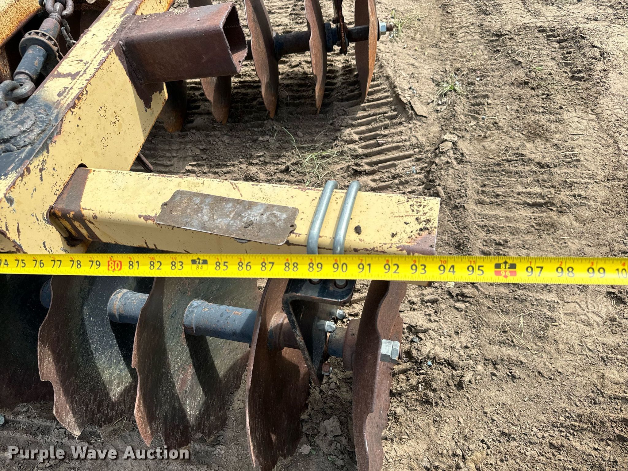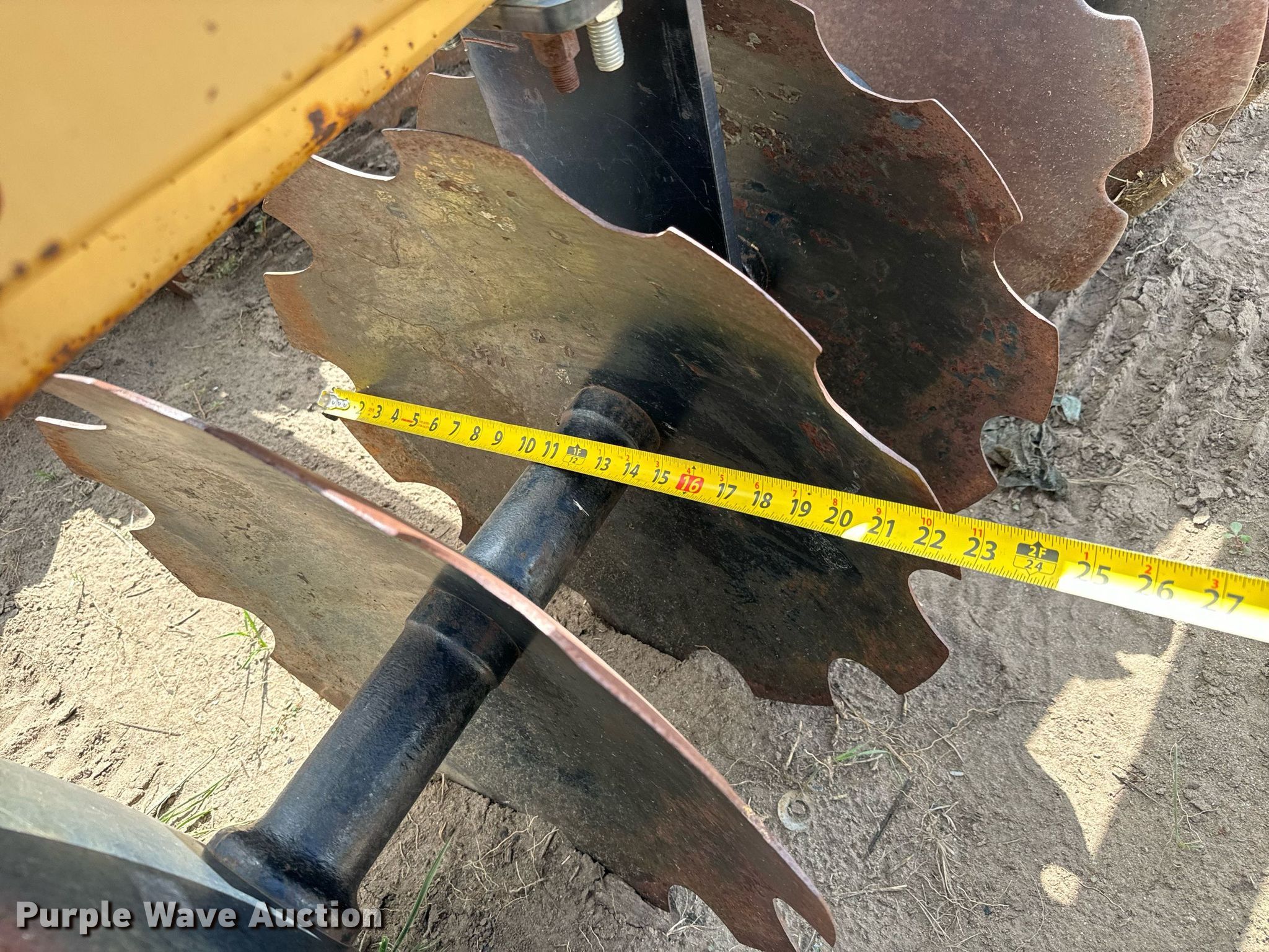 2005 Land Pride DH2596 disk. Overall width: 7' 10", Serial: 458777. Features Front blades Diameter: 21", Spacing: 8", Rear blades Diameter: 22", Spacing: 8", Attachments Hitch: Three point. Seedmasters Inc.. Colorado Springs, CO 80916