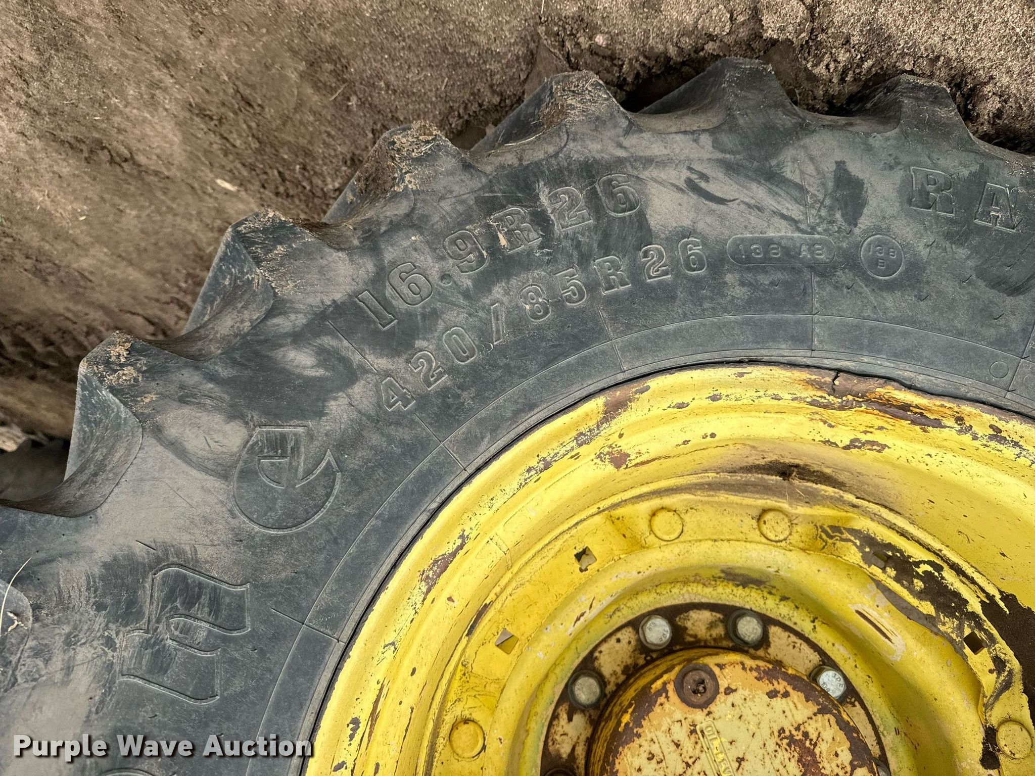 1994 John Deere 7800 MFWD tractor. Hours: 7,525 on meter, Serial: RW7800P009849. Engine John Deere, Cylinders: 6, Fuel type: Diesel. Transmission Powershift, 19F - 7R, Differential lock. Features PTO: 1000, Three point, Hydraulic remote sets Rear: 3, Loader John Deere, Controls: Joystick, Grapple bucket Width: 98".. Tires Front: 16.9R26, Rear: 20.8-38. Notes Left upper steering knuckle replaced, additional images forthcoming. Seedmasters Inc.. Colorado Springs, CO 80916