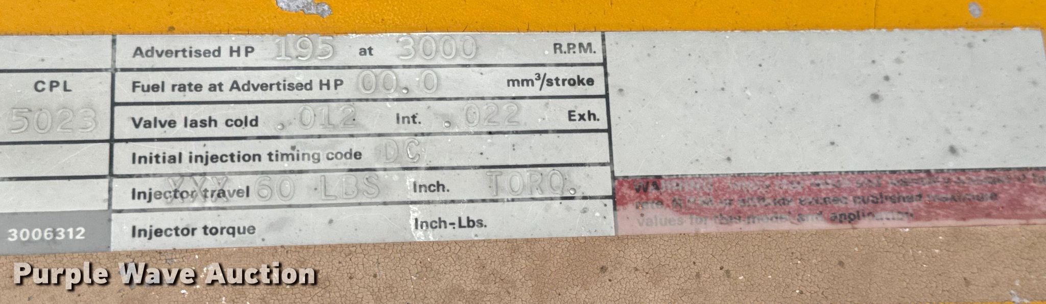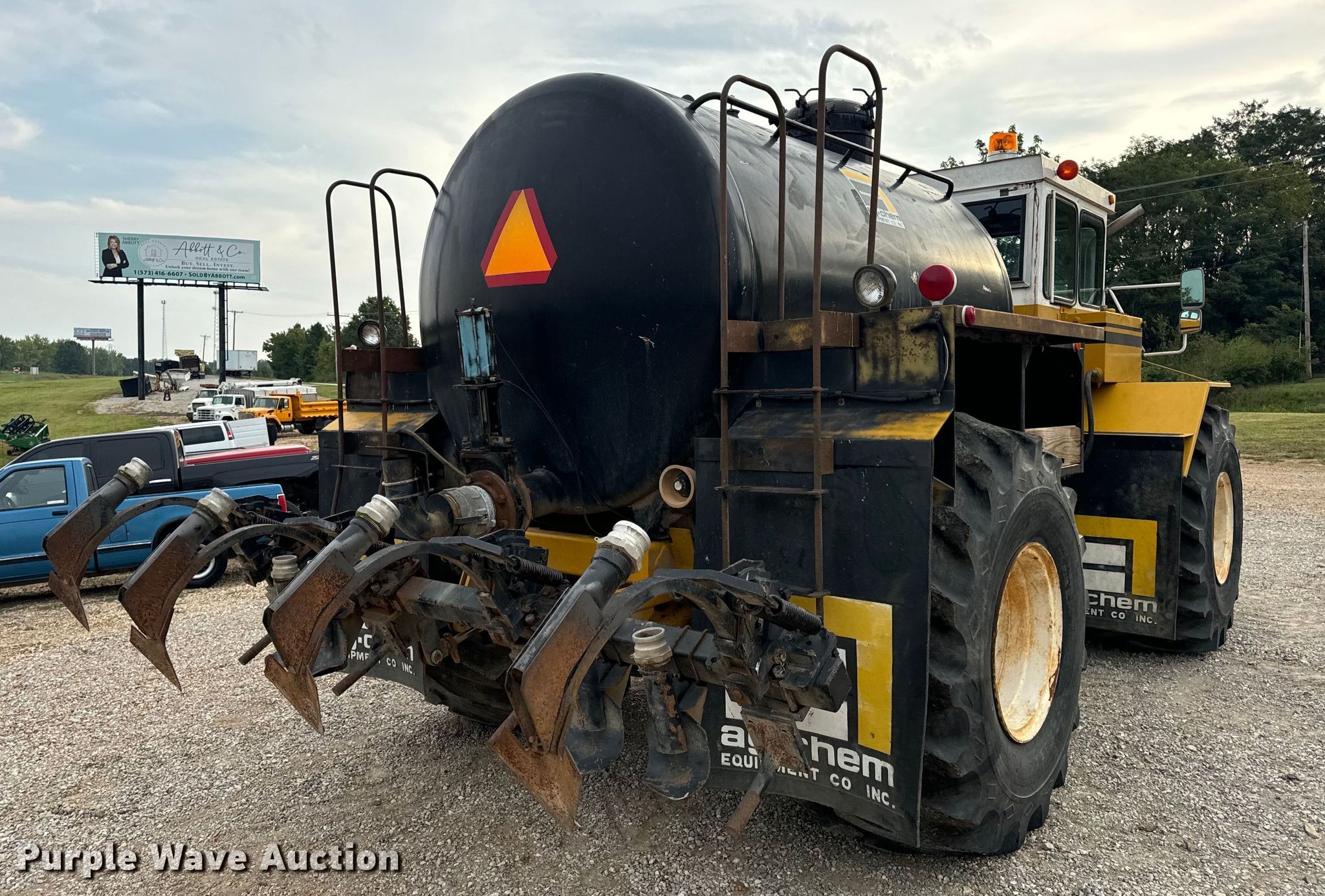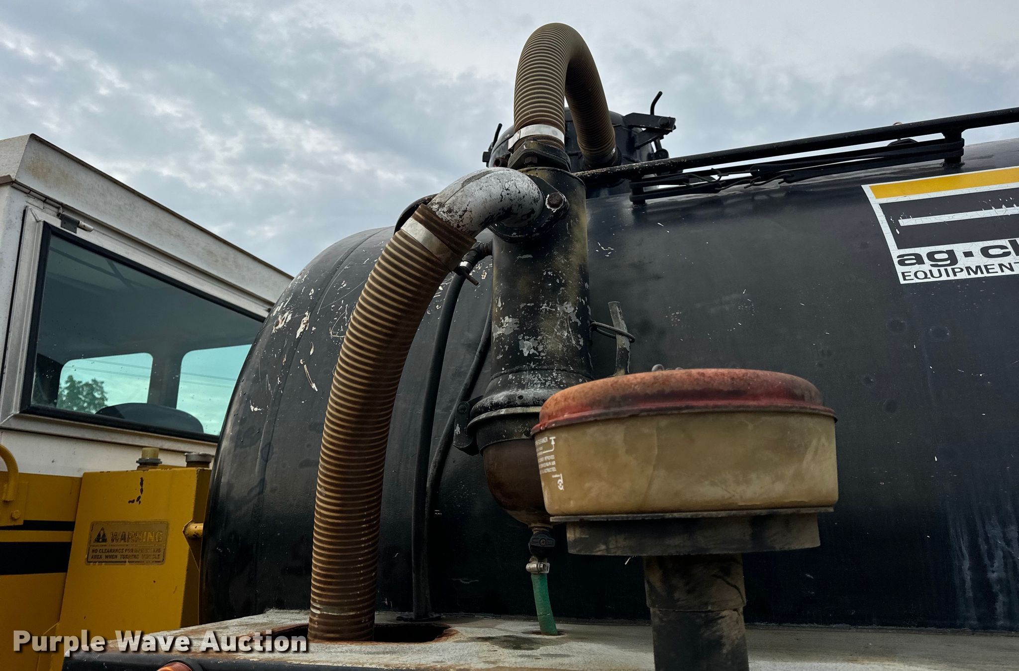 Ag-Chem Ag-Gator 1004 manure spreader. Miles: 10,294 on odometer, Hours: 1,696 on meter, Serial: 1004112. Engine Cummine V-504-C, Serial: C35185, Cylinders: 8, Fuel type: Diesel. Transmission Eaton Fuller Roadranger, Manual, Speed: 10. Chassis Axles: Single, Brakes: Hydraulic. Interior Heat. Features Manure spreader bed 118" L x 121" W, Capacity: 1,000 gallons, Vacuum pump, Width: 103", Tank diameter: 68". Tires Front: 67X34.00-25. Notes Parking brake issues, weak. T&R Equipment. New Bloomfield, MO 65080