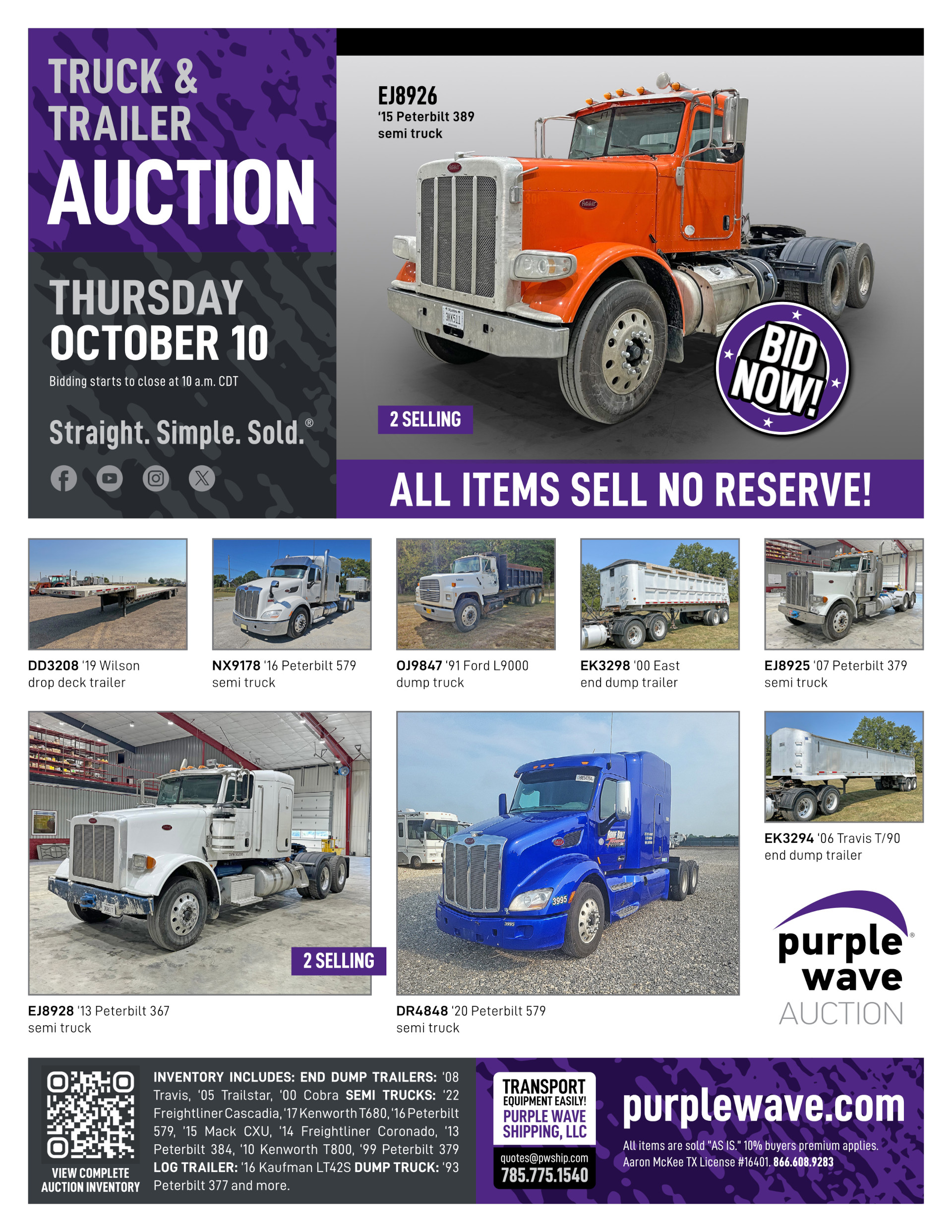 SOLD! Truck and Trailer Auction | 10-10-2024