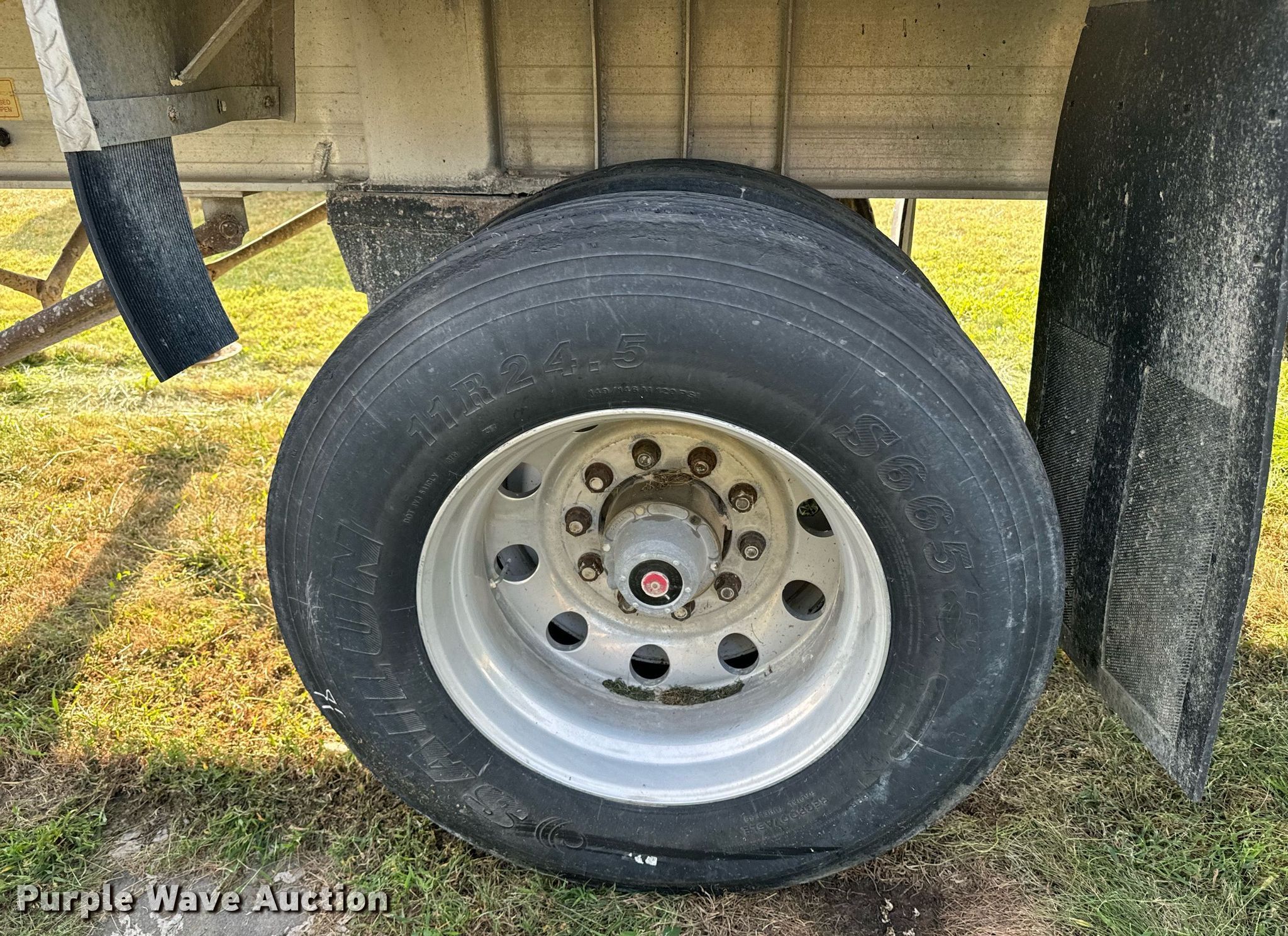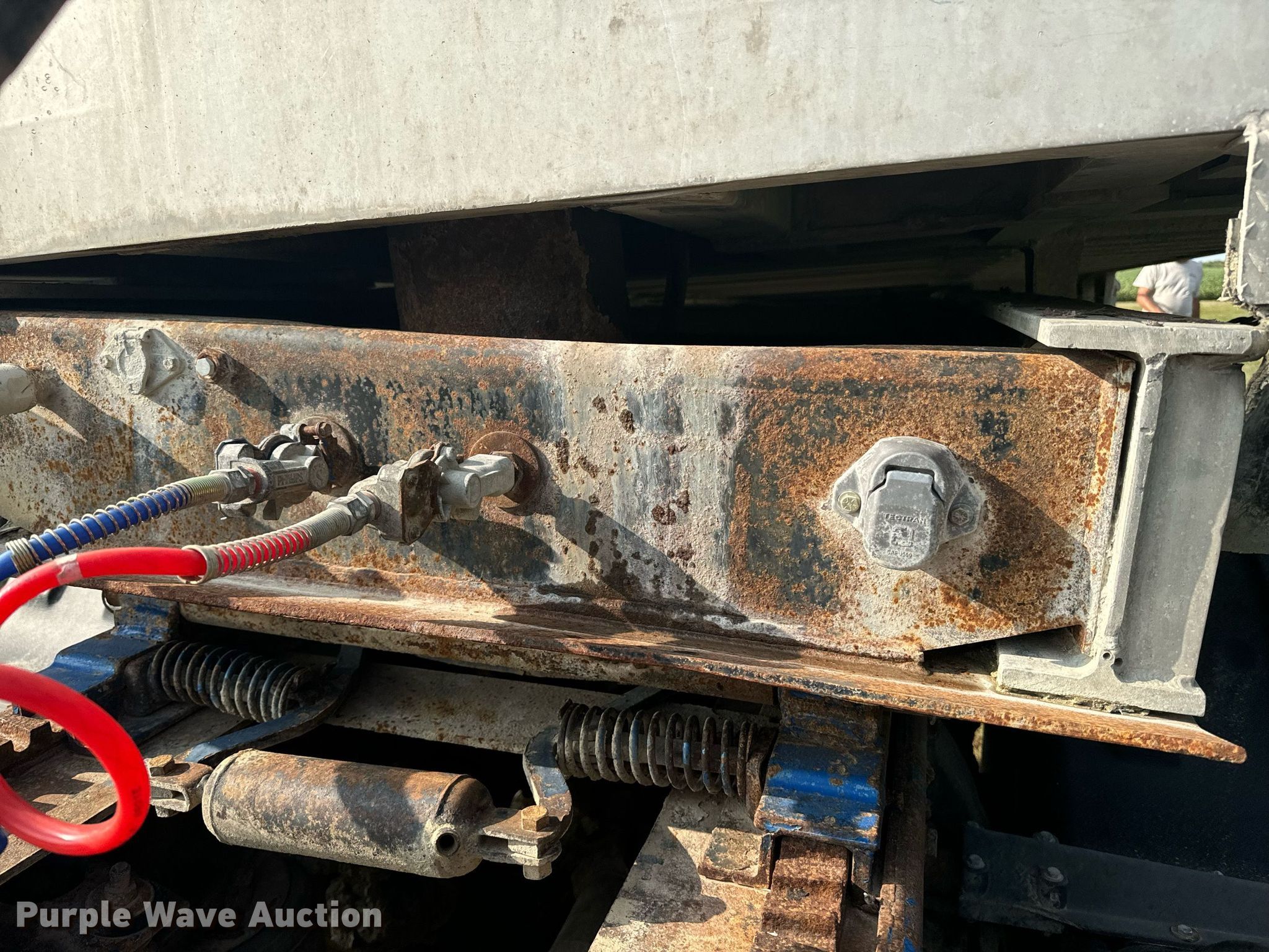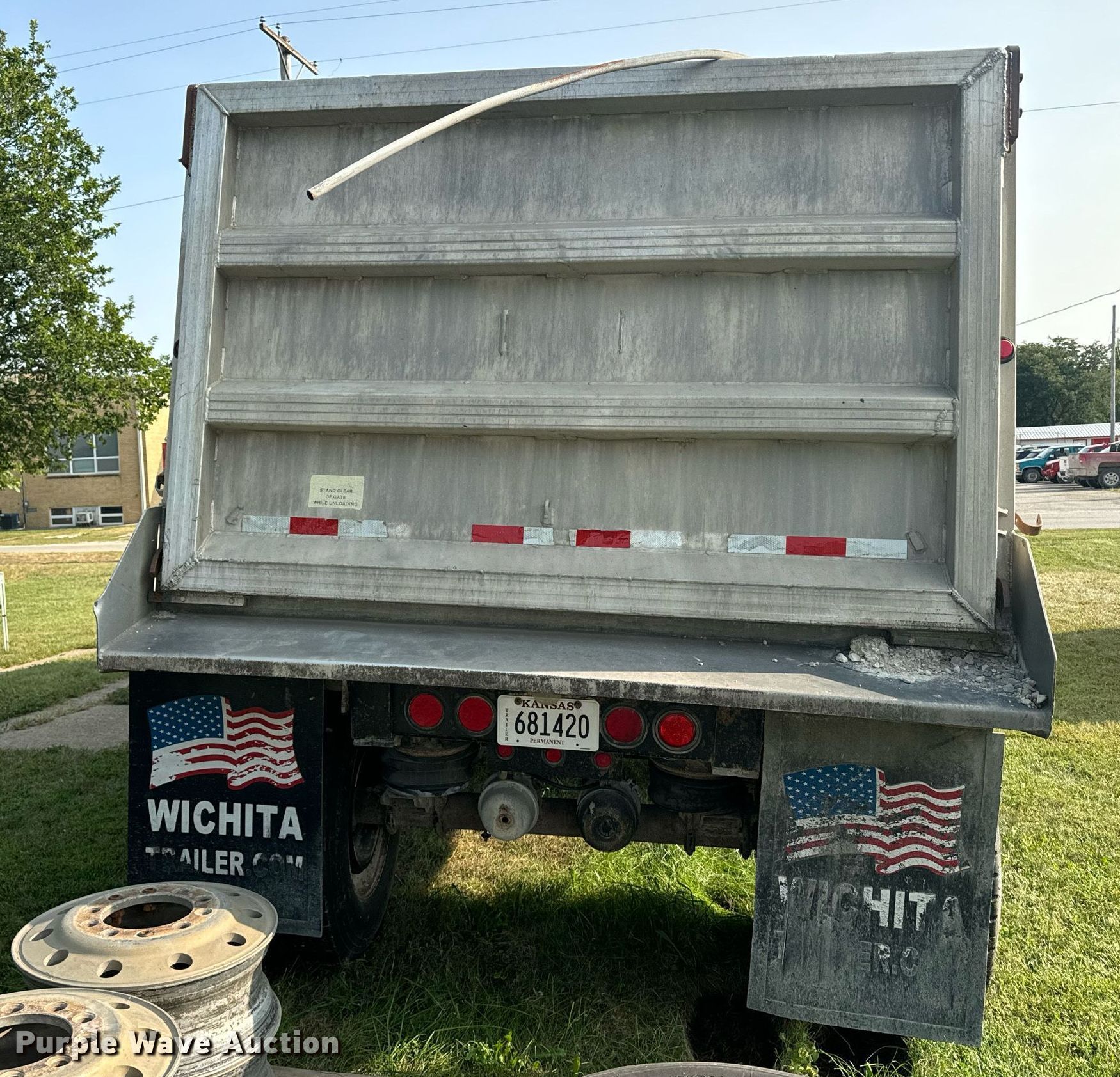 1997 Travis end dump trailer. VIN: 1T92F2627V1247474. Dimensions Overall: 26' L x 102" W, Side height: 48", Sideboard height: 6". Features Body type: Aluminum, Ram: Single, End gate: Air operated. Chassis Landing gear: Dual, Suspension: Air, Brakes: Air, Axles: Spread, GVWR: 68,000 lbs. Tires Aluminum wheels, Size: 11R24.5. Notes Unit previously in roll over accident, Frame damage Bent, Cracked, Semi not included. Kansas electronic title. Title has a lien that will be released following the close of the auction. A paper title will be printed once the lien is released. Title distribution may be delayed up to 30 days from verification of funds. White City, KS 66872