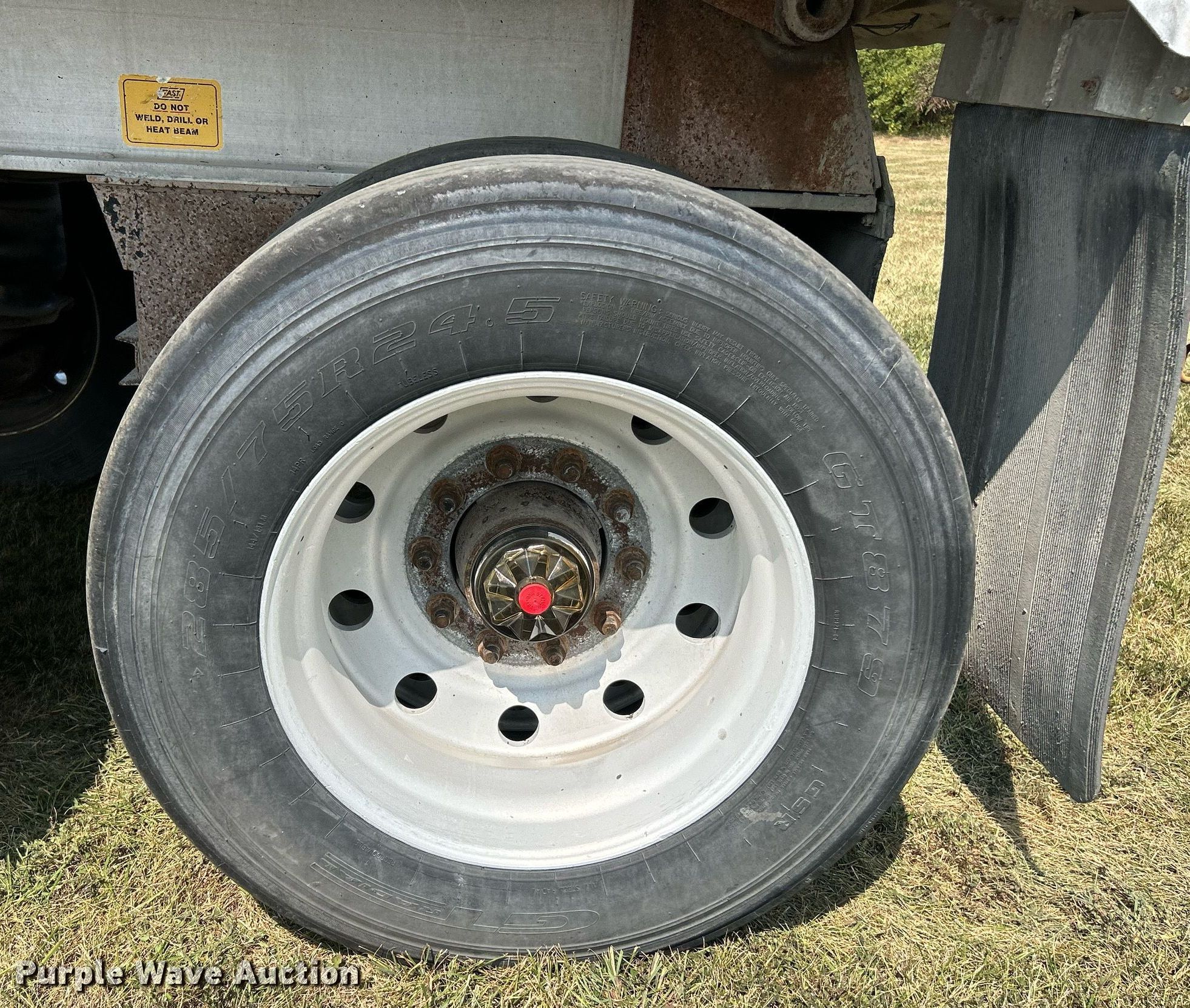 2000 East end dump trailer. VIN: 1E1D2M286YRK28201, Unit #: T8. Dimensions Overall: 28' L x 96" W, Body: 28' L x 96" W, Side height: 55", Sideboard height: 9". Features Body type: Aluminum, Ram: Single, End gate: Air operated Grain door, Roll tarp. Chassis Landing gear: Dual, Suspension: Air, Brakes: Air, Axles: Tandem, GVWR: 80,000 lbs, GAWR: 21,200 lbs. Tires Aluminum wheels, Size: 285/75R24.5. Missouri title. Title distribution may be delayed up to 14 days from verification of funds. DLH Trucking LLC. Moscow Mills, MO 63362