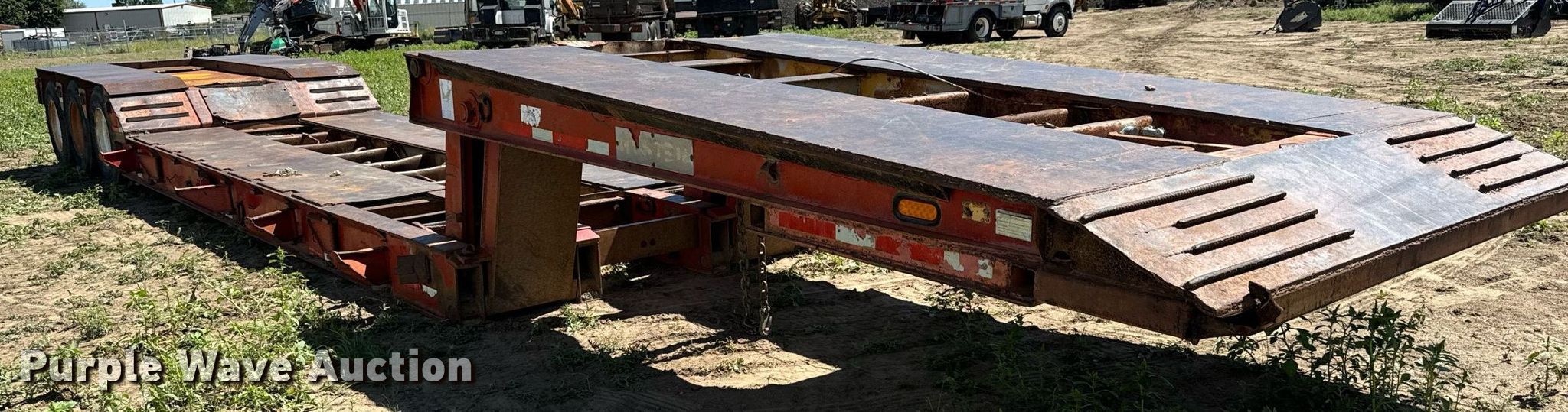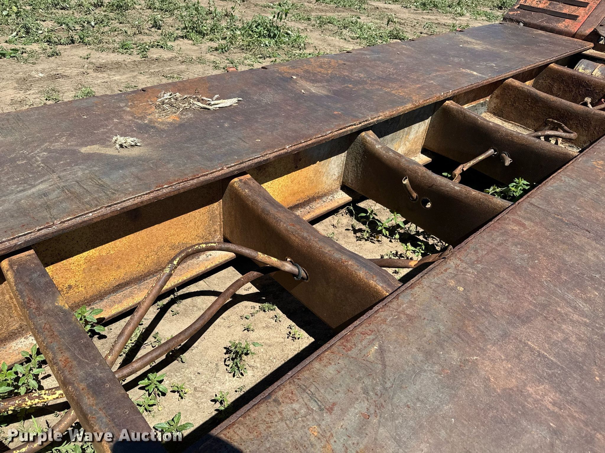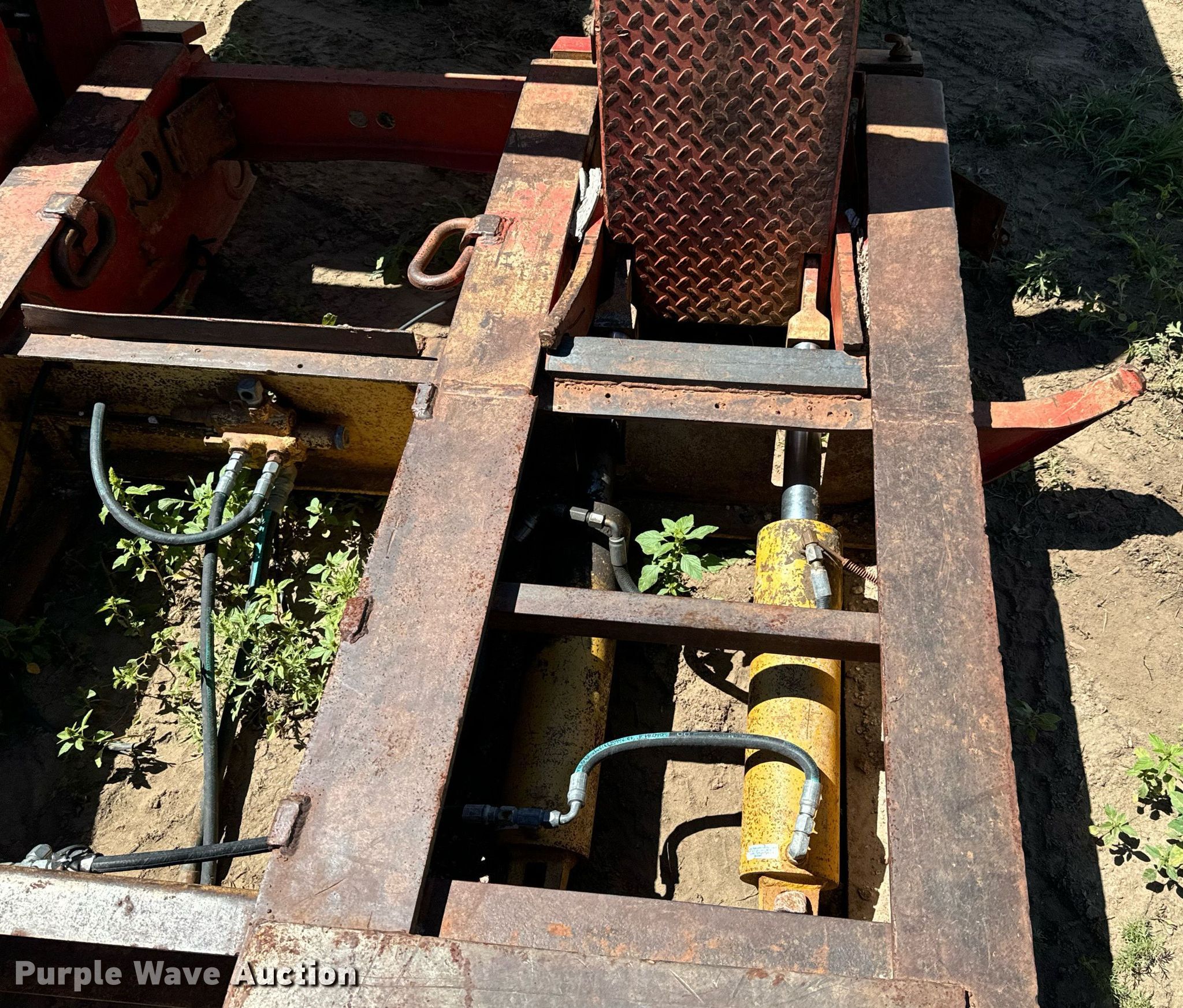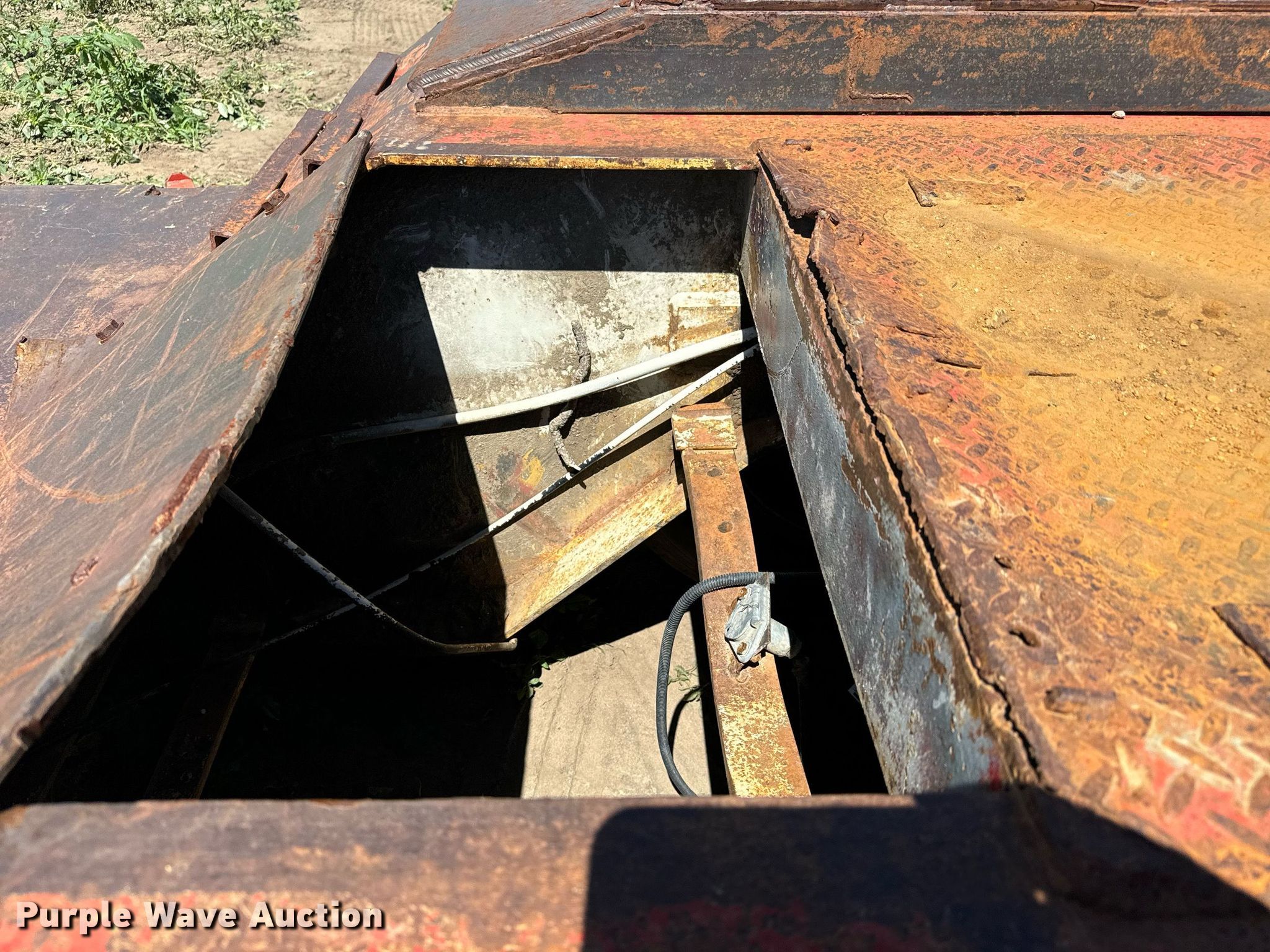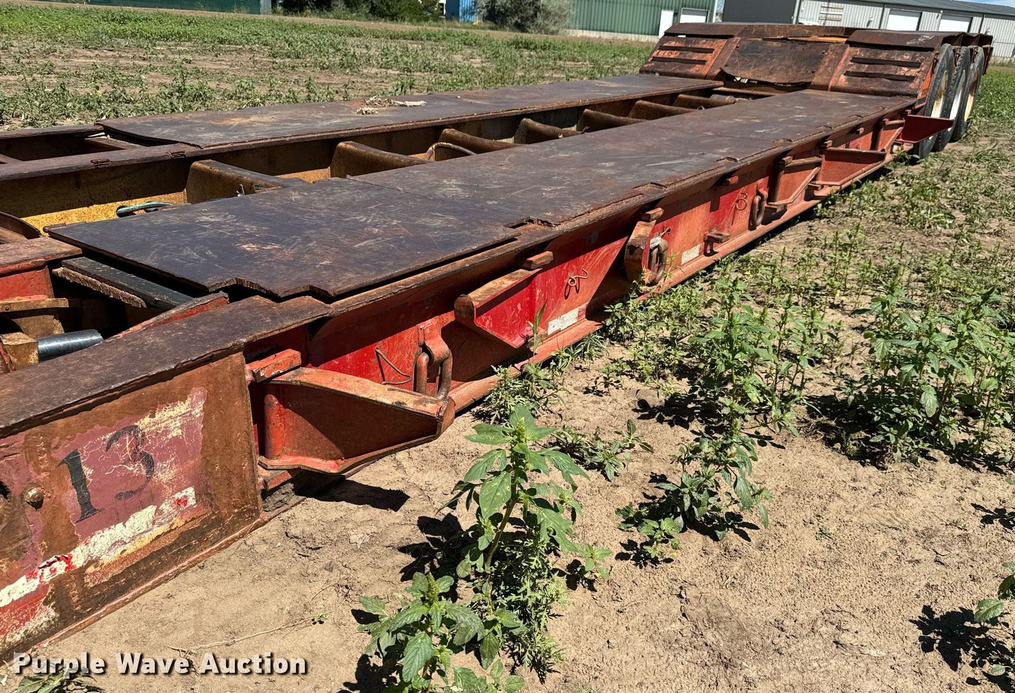 1980 Hyster lowboy equipment trailer. VIN: 23127, Unit #: 10. Dimensions Overall: 50' 6" L x 95" W, Deck: 21' L x 95" W, Top deck length: 15', Rear deck length: 13' 11". Features Deck type: Steel, Outriggers: Swing-out Board size: 12", Neck type: Folding. Chassis Suspension: Walking beam, Brakes: Air, Axles: Triple. Tires Steel wheels, Size: 11R22.5. Notes Hydraulic pump missing, Unknown operating condition of folding neck , Semi truck not included. Colorado title. Seedmasters Inc.. Colorado Springs, CO 80916