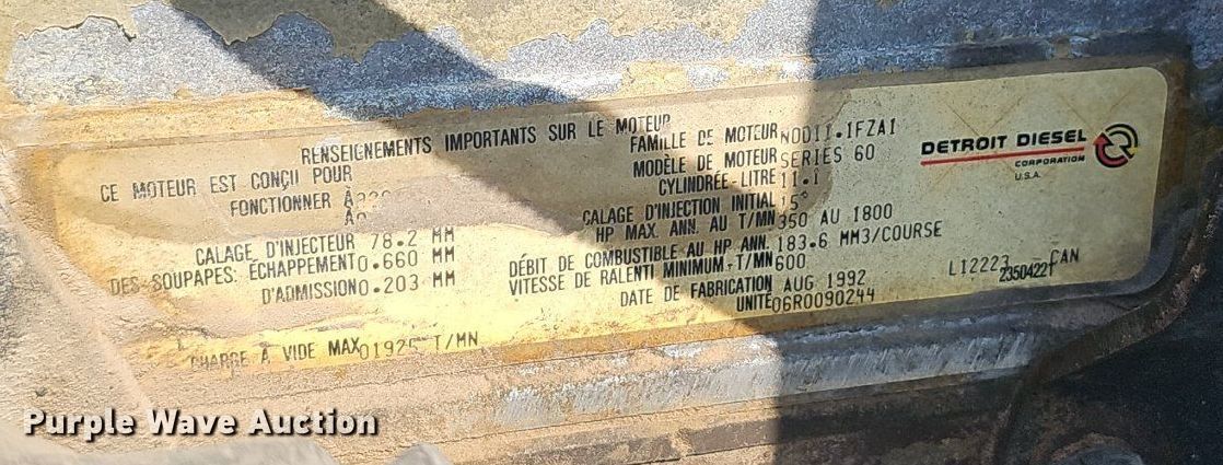 1993 Peterbilt 377 dump truck. Miles: 941,890 on odometer, Hours: 15,680 on meter, VIN: 1XPCDR9X6PD326831. Engine Detroit Diesel Series 60, Displacement: 11.1L, Cylinders: 6, Fuel type: Diesel. Transmission Eaton Fuller, Manual, Speed: 9. Chassis Axles: Triple, Pusher axle, Differential lock: Inter-axle, Suspension: Air Dump valves, Brakes: Air, PTO. Interior AC, Heat, Heated mirrors. Features Dump bed Davis M7-74-17, 17' L x 96" W, Side height: 38", Side board height: 8", Bed type: Steel, Roll tarp, Ram: Single, End gate: Air operated. Tires Front: 385/65R22.5, Rear: 11R22.5, Lift axle: 295/75R22.5. Oklahoma title. Longan Construction Co.. Grove, OK 74344