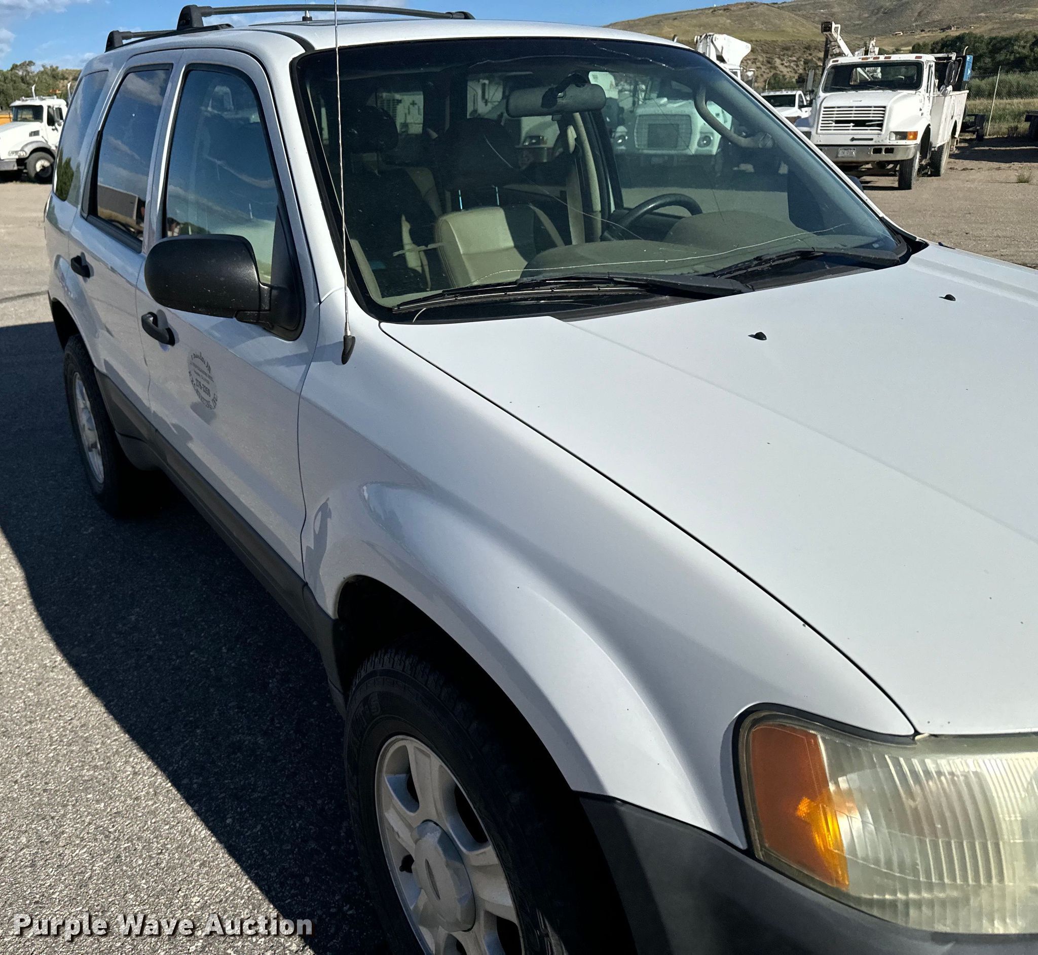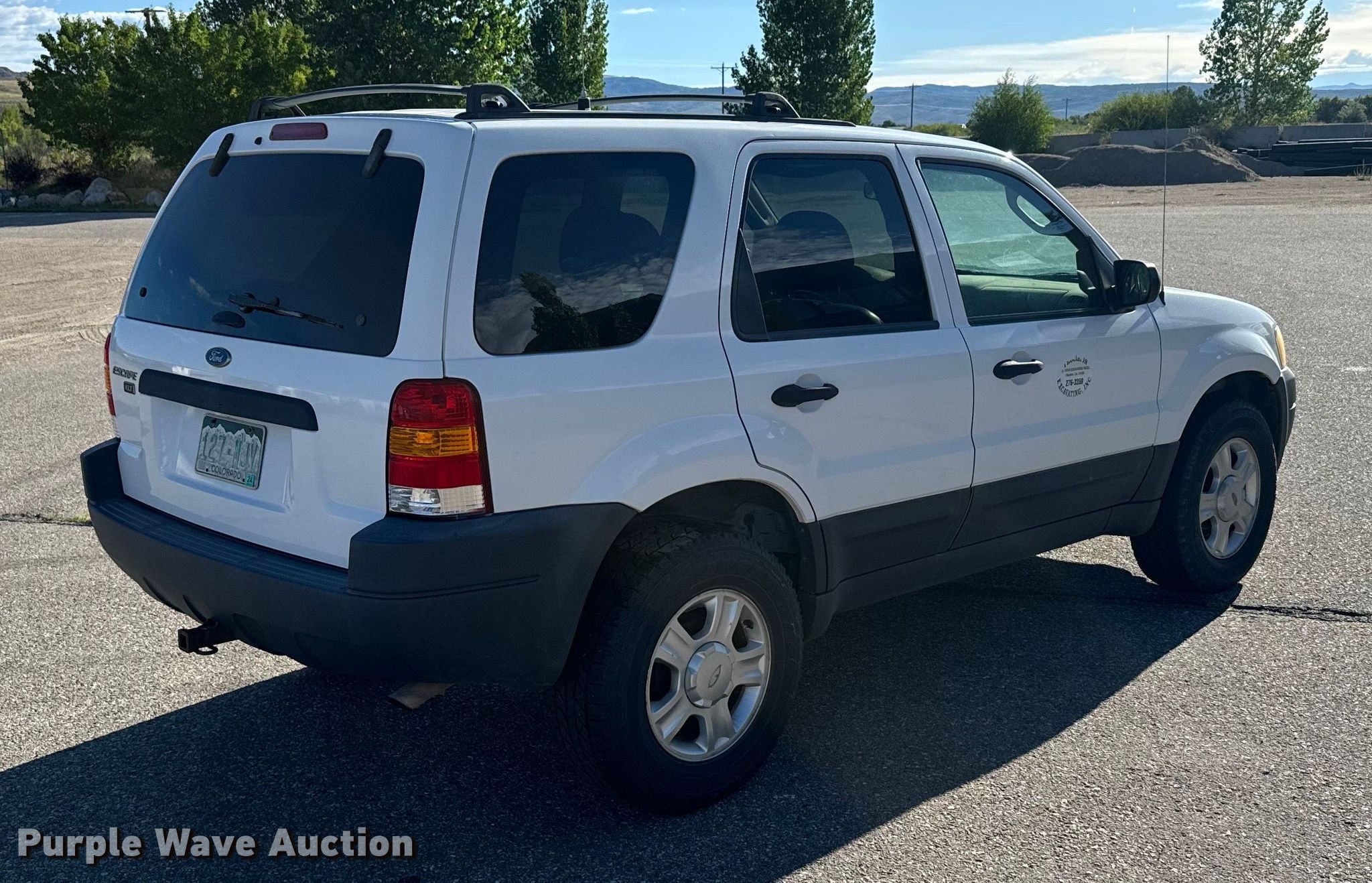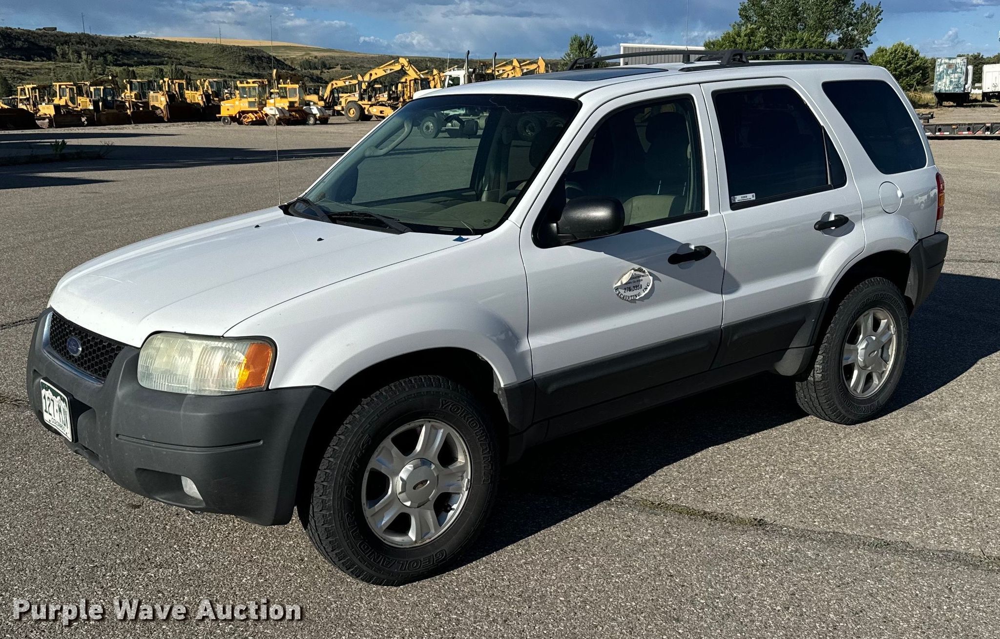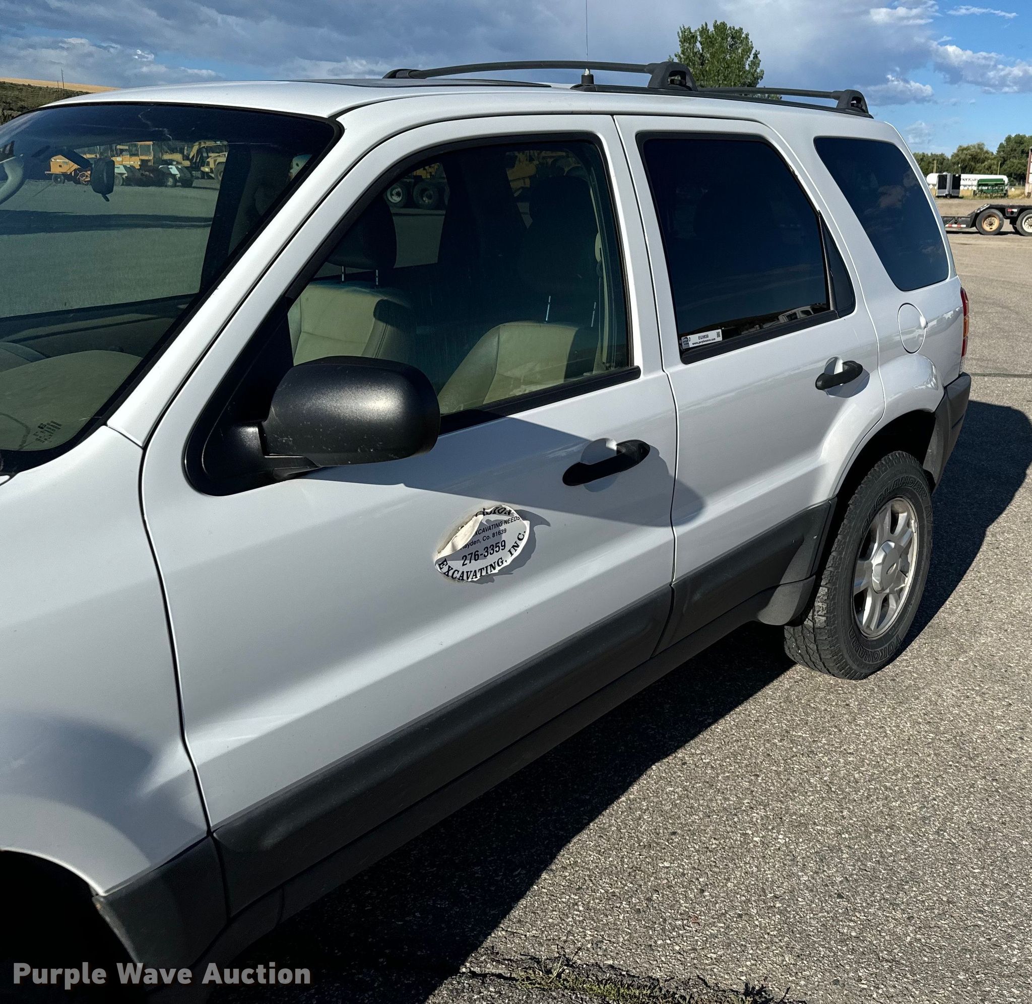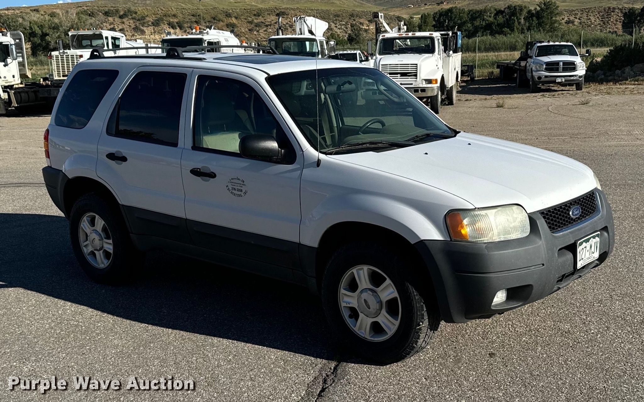 2004 Ford Escape XLT SUV. Miles: 164,805 on odometer, VIN: 1FMCU93144KB55327. Engine Displacement: 3.0L V6 DOHC, Cylinders: 6, Fuel type: Gas. Transmission Automatic, Four wheel drive. Interior AC, Heat, Seat: Power driver, Power windows, Power locks, Cruise control, Powered sunroof. Tires Size: 235/70R16. Notes Windshield chipped or cracked. Colorado title. Precision Excavating, Inc. Open Inspection September 18 and October 14 from 9 A.M. to 3 P.M. MST. 1545 West Jefferson Avenue. Hayden, CO 81639