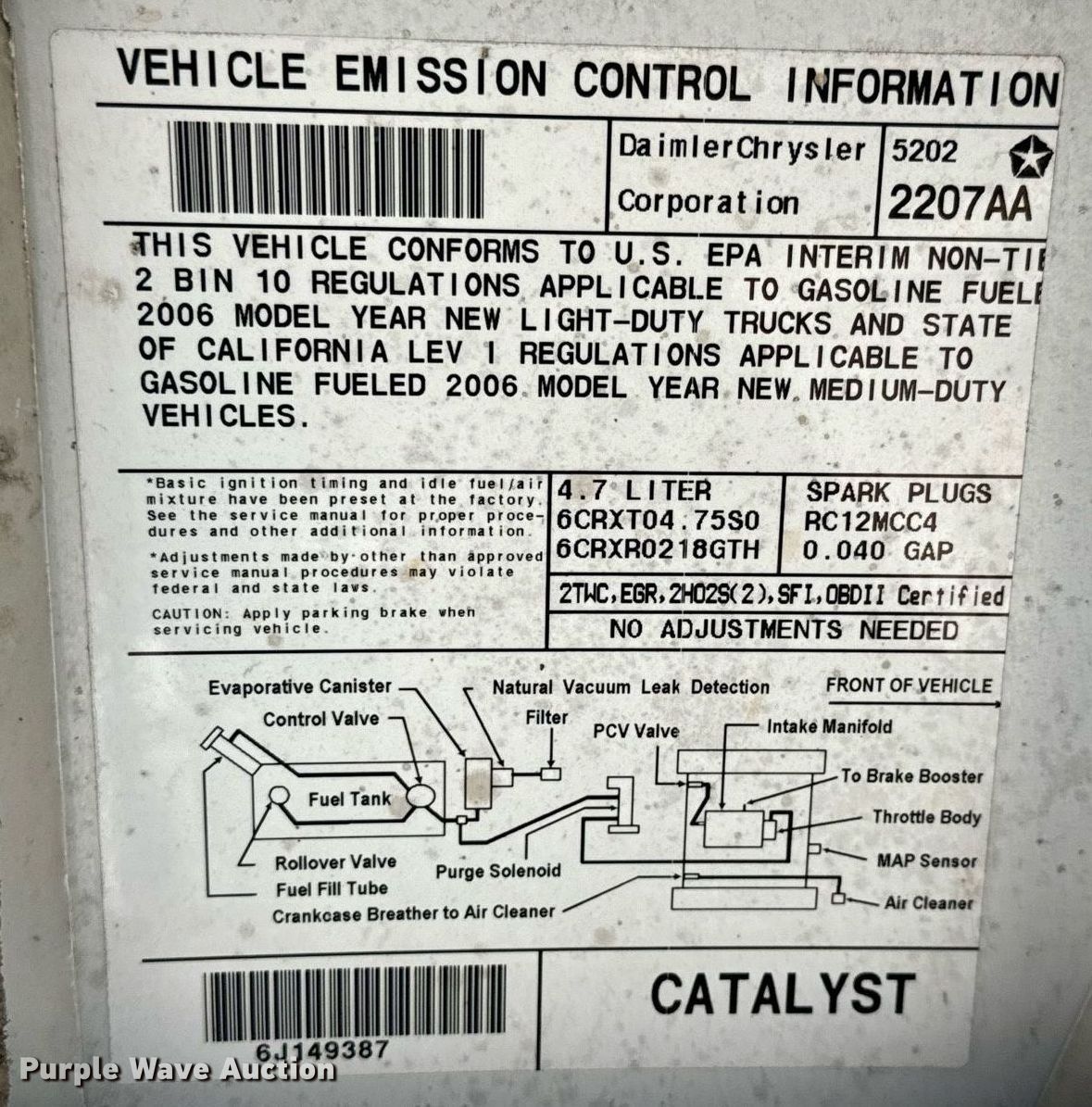 2006 Dodge Ram 1500 pickup truck. Miles: 130,234 on odometer, VIN: 1D7HU16N26J149387, Unit #: PU-27. Engine Displacement: 4.7L V8 SOHC, Cylinders: 8, Fuel type: Gas. Transmission Automatic, Four wheel drive. Interior AC, Heat, Cruise control. Features Auxiliary fuel tank Fill-rite 12v pump. Tires Size: 265/70R17. Colorado title. Precision Excavating, Inc. Open Inspection September 18 and October 14 from 9 A.M. to 3 P.M. MST. 1545 West Jefferson Avenue. Hayden, CO 81639