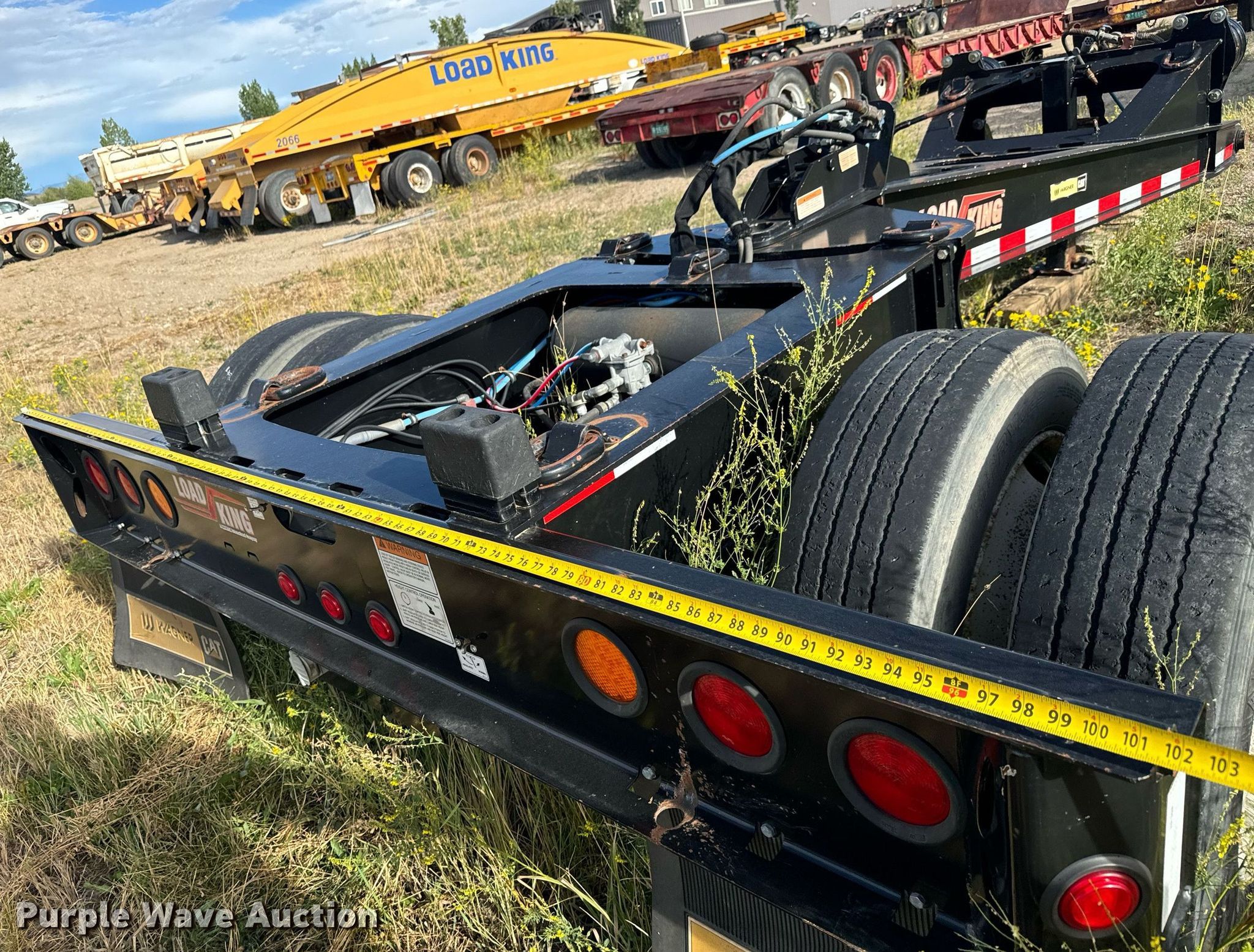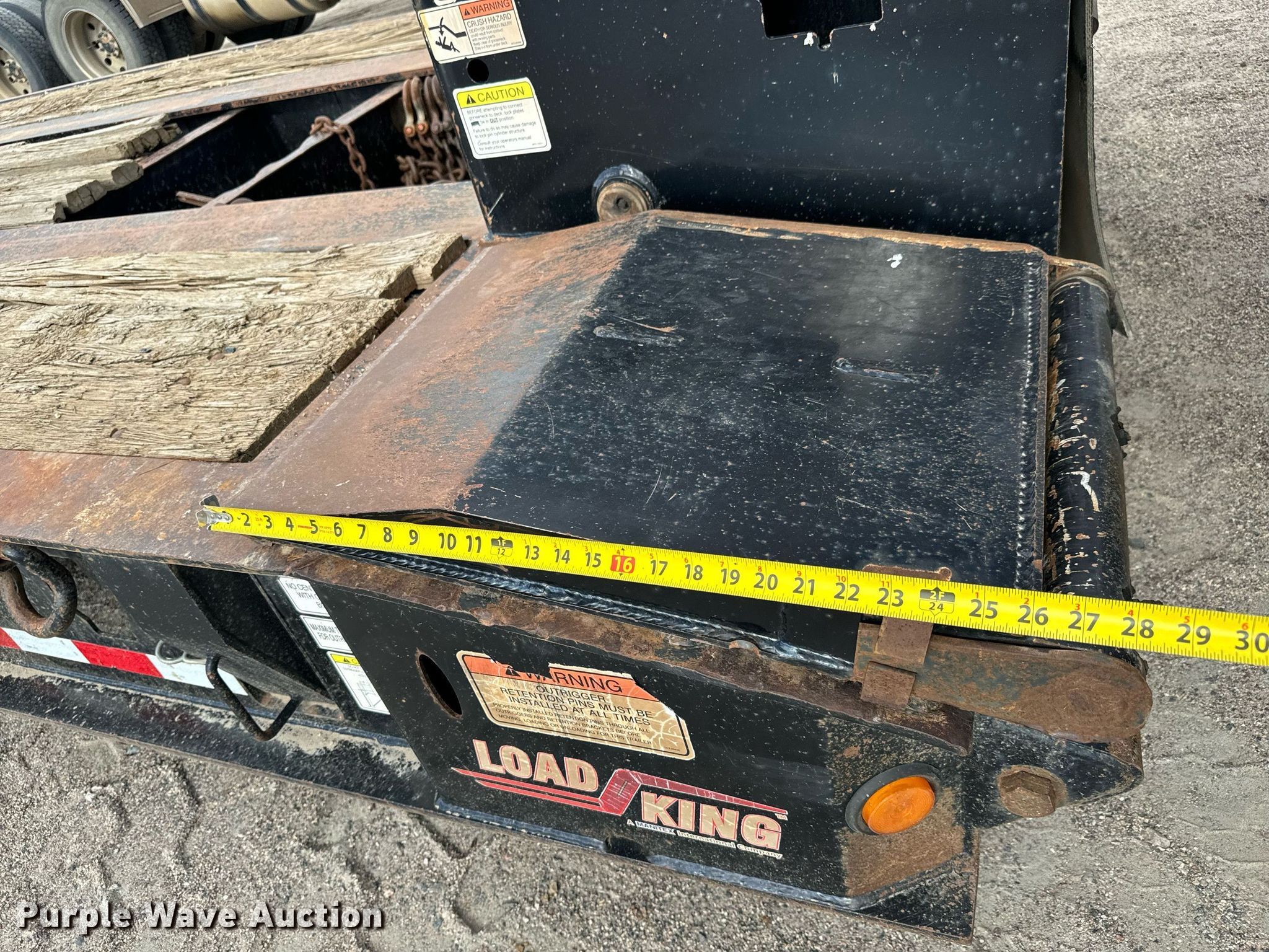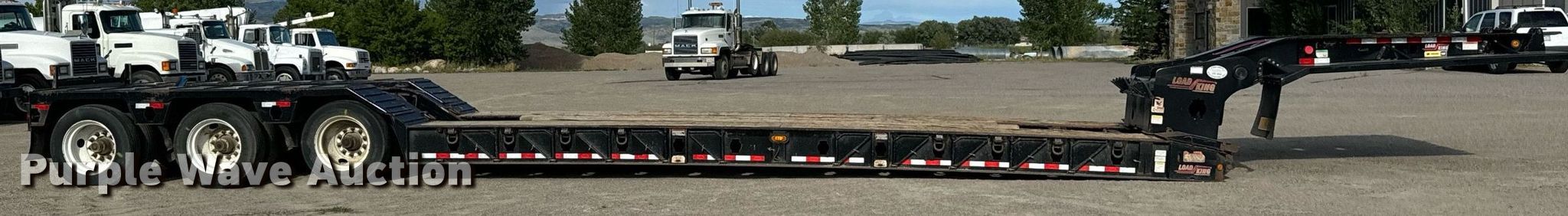 2015 Load King RM57 lowboy equipment trailer. VIN: 5LKL56363F1029286, Unit #: TS-05. Dimensions Overall: 53' L x 102" W, Deck: 26', Rear deck length: 13' 6", Deck height: 27". Features Deck type: Steel, Wood, Outriggers: Swing-out Board size: 12", Neck type: Detachable, Hydraulic controls: Manual. Chassis Suspension: Air, Brakes: Air, Axles: Triple, GVWR: 140,100 lbs, GAWR: 20,280 lbs. Tires Steel wheels, Size: 255/70R22.5. 2014 Load King Stinger axle Serial: 29288. Dimensions Overall: 14' 6" L. Chassis Suspension: Air. Features Load King deck extension, Honda GX390 engine. Tires Size: 255/70R22.5. Notes Semi truck not included. Colorado title. Precision Excavating, Inc. Open Inspection September 18 and October 14 from 9 A.M. to 3 P.M. MST. 1545 West Jefferson Avenue. Hayden, CO 81639