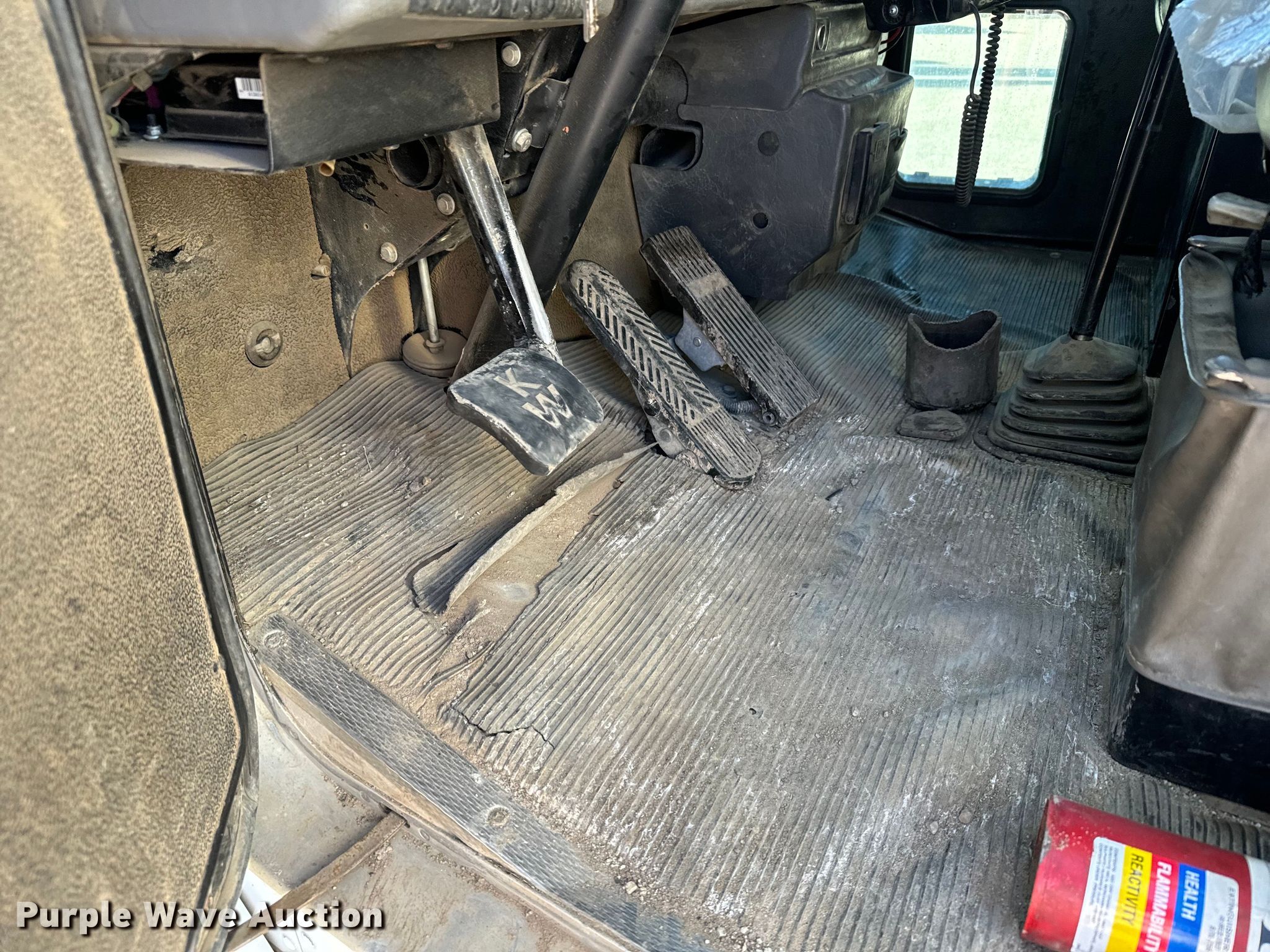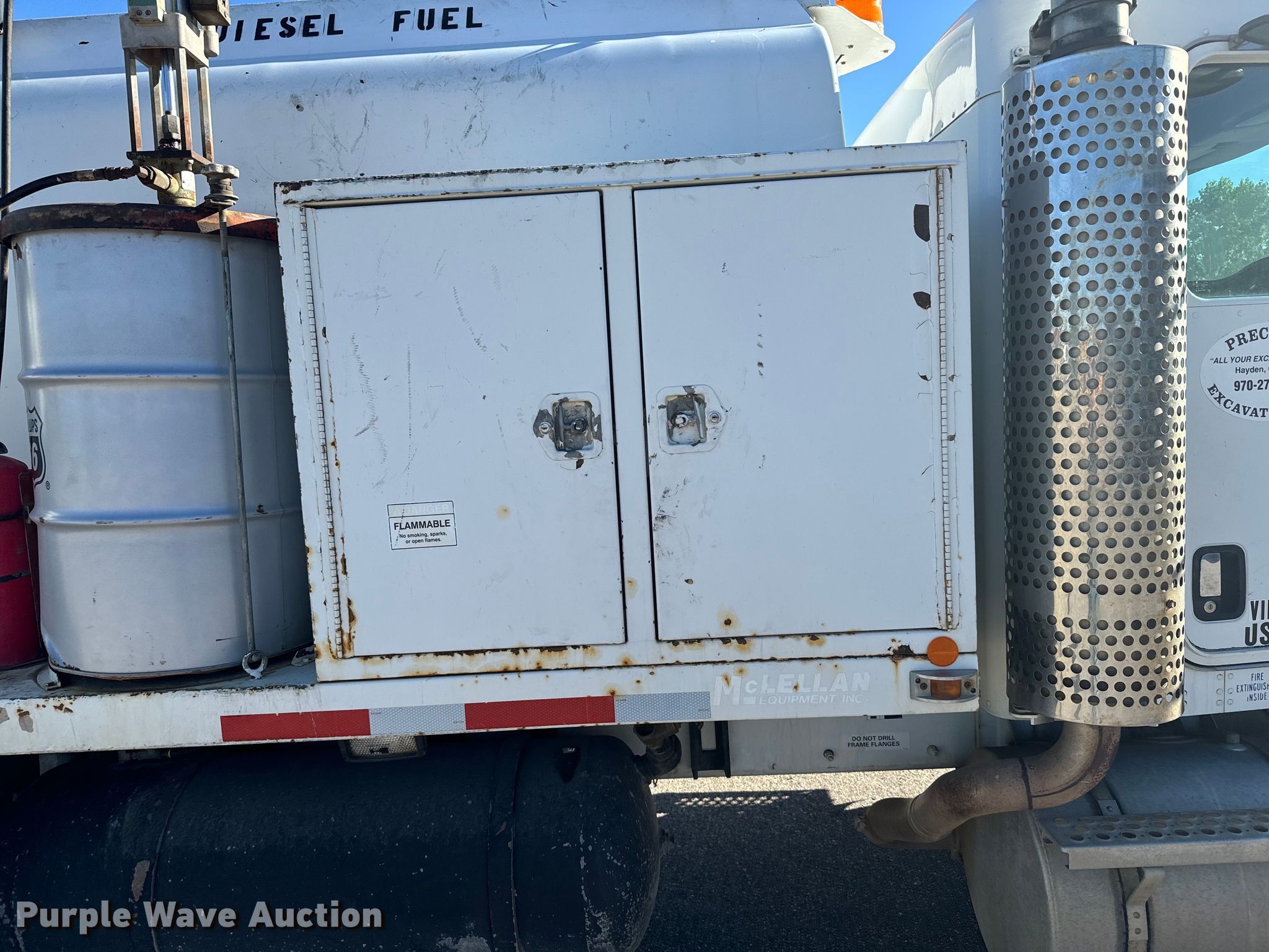 2005 Kenworth T300 fuel / lube truck. Miles: 3,067 on odometer Actual mileage unknown, VIN: 2NKMHD7X45M072459, Unit #: TR-10. Engine Caterpillar C7, Displacement: 7.2L, Cylinders: 6, Fuel type: Diesel, Engine brake. Transmission Eaton Fuller, Manual, Speed: 10. Chassis Axles: Single, Suspension: Spring, Brakes: Air, PTO, GVWR: 33,000 lbs. Interior AC, Heat, Cruise control. Features Bed McLellan, 15' 9" L x 96" W, Air compressor, Oil/lube system Hose reels, Nozzles, Pump, Reservoirs Hydraulic fluid, Grease, Motor oil, Used oil, Fuel tank Nozzles, Pump, Water Hose reel, Antifreeze Hose reel, ISO 160 Hose reel.. Tires Front: 315/80R22.5, Rear: 11R22.5. Notes Windshield chipped or cracked, Odometer replaced at 147,661 miles. View repairs. Colorado title. Mileage has not been verified. Odometer discrepancy will be marked on the title. Precision Excavating, Inc. Open Inspection September 18 and October 14 from 9 A.M. to 3 P.M. MST. 1545 West Jefferson Avenue. Hayden, CO 81639