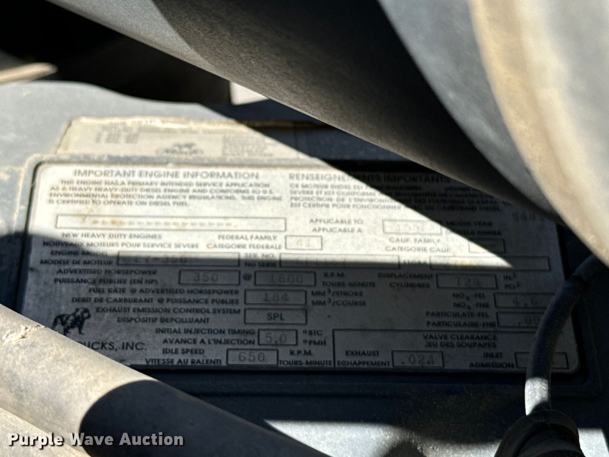 1996 Mack CH613 dump truck. Miles: 543,910 on odometer, Hours: 24,126 on meter, VIN: 1M2AA13Y1TW070869, Unit #: TD-14. Engine Mack E7-350, Displacement: 12.0L, Cylinders: 6, Fuel type: Diesel, HP: 350, Engine brake. Transmission Mack Maxitorque, Manual, Speed: 9. Chassis Double frame, Axles: Tandem, Suspension: Camelback, Brakes: Air, PTO. Interior AC, Heat, Cruise control. Features Dump bed 14' 7" L x 96" W, Side height: 35", Side board height: 8", Bed type: Steel, Roll tarp, Ram: Single, End gate: Air operated. Tires Size: 11R24.5. Notes Windshield chipped or cracked. Colorado title. Precision Excavating, Inc. Open Inspection September 18 and October 14 from 9 A.M. to 3 P.M. MST. 1545 West Jefferson Avenue. Hayden, CO 81639