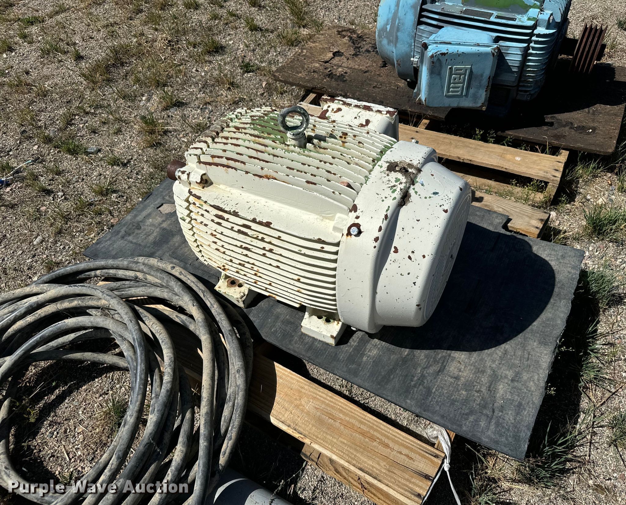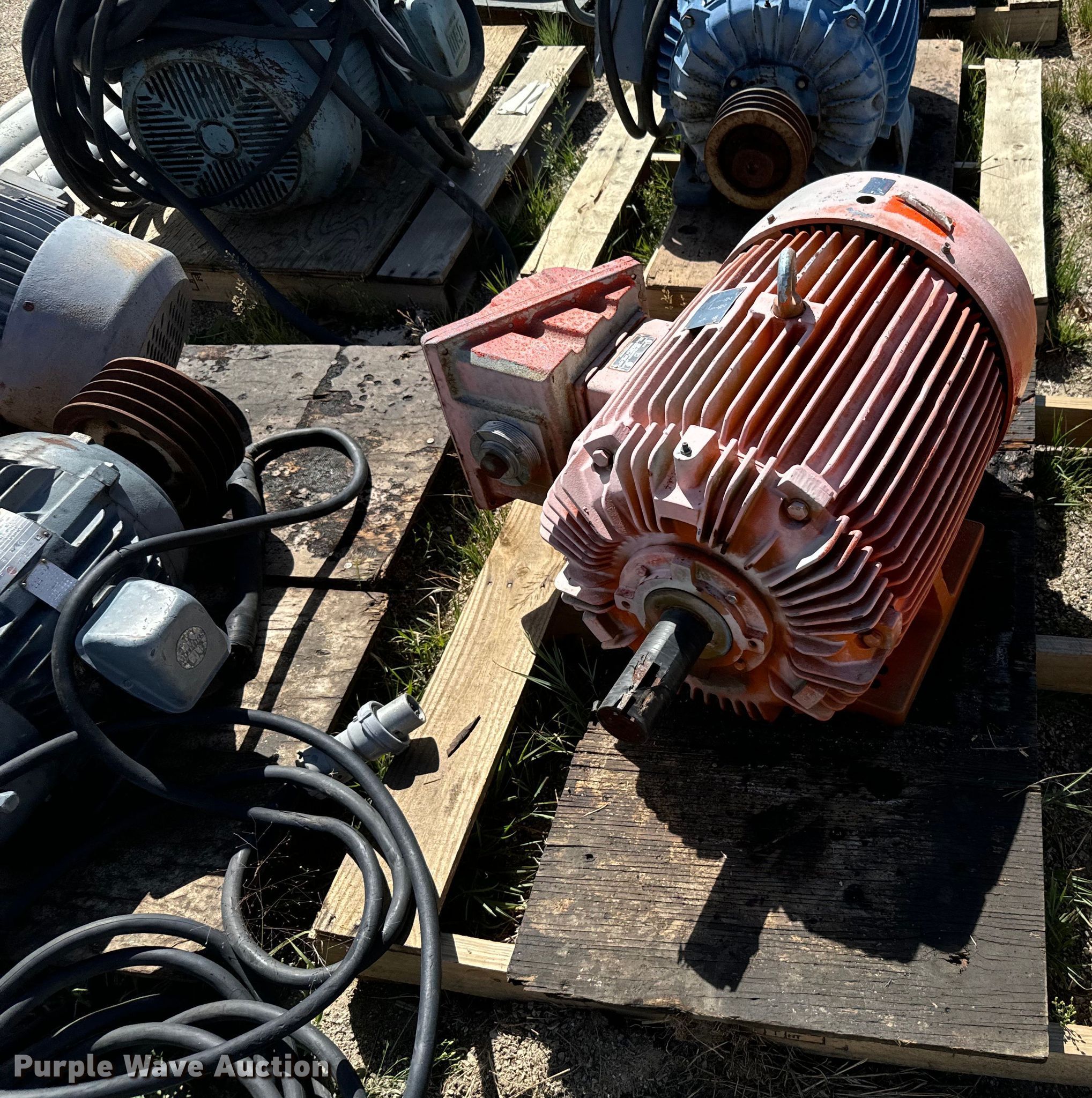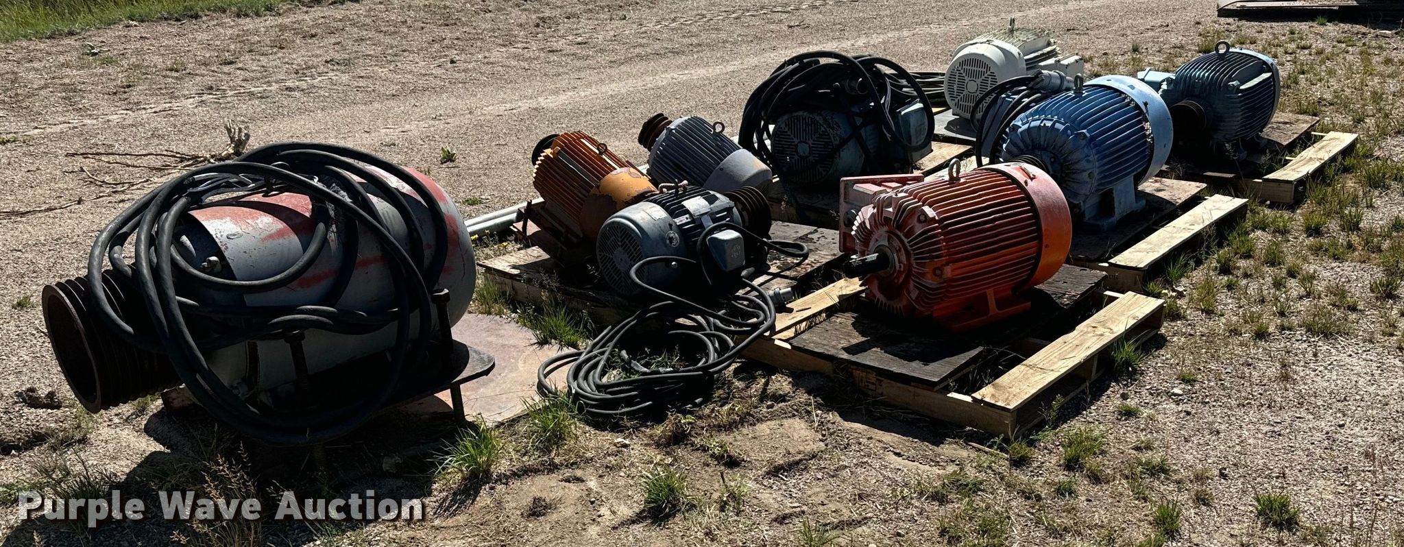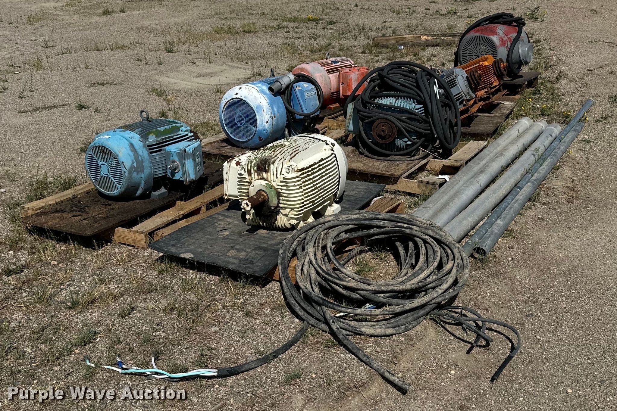 Purple Wave is selling a used Electric Motor in Colorado. This item is a (9) electric motors with the following: Weg, Phase: Three, HP: 10, Weg, Phase: Three, HP: 40, Elektrim, Phase: Three, HP: 60, Weg, Phase: Three, HP: 40, Nema, Phase: Three, HP: 60, US Electric, Phase: Three, HP: 20, E-LINE, US Electric, Phase: Three, HP: 15, Lincoln, Phase: Three, HP: 125, Approx. 3 4" x 10' PVC conduits, Electrical wire, 3" x 10' metal conduit, 2" x 15' metal EMT
