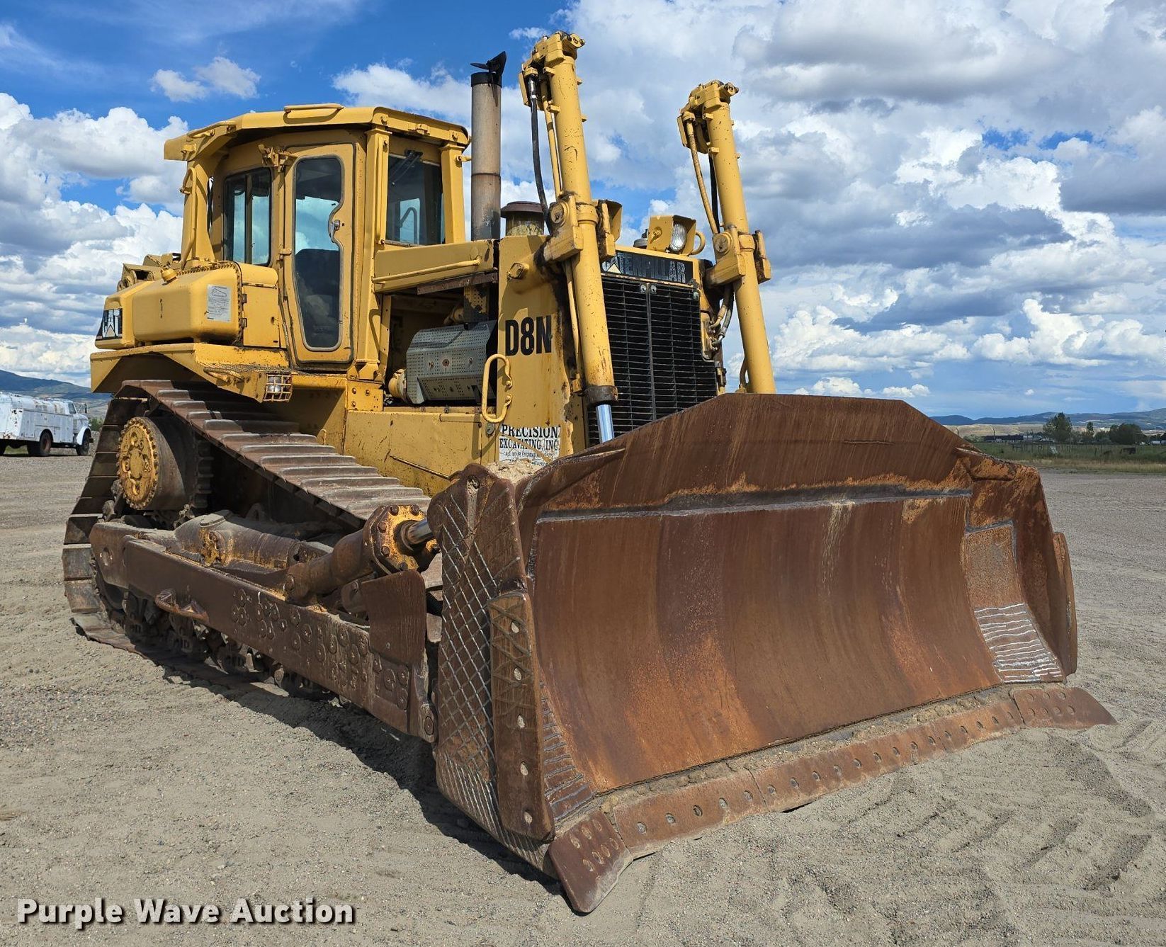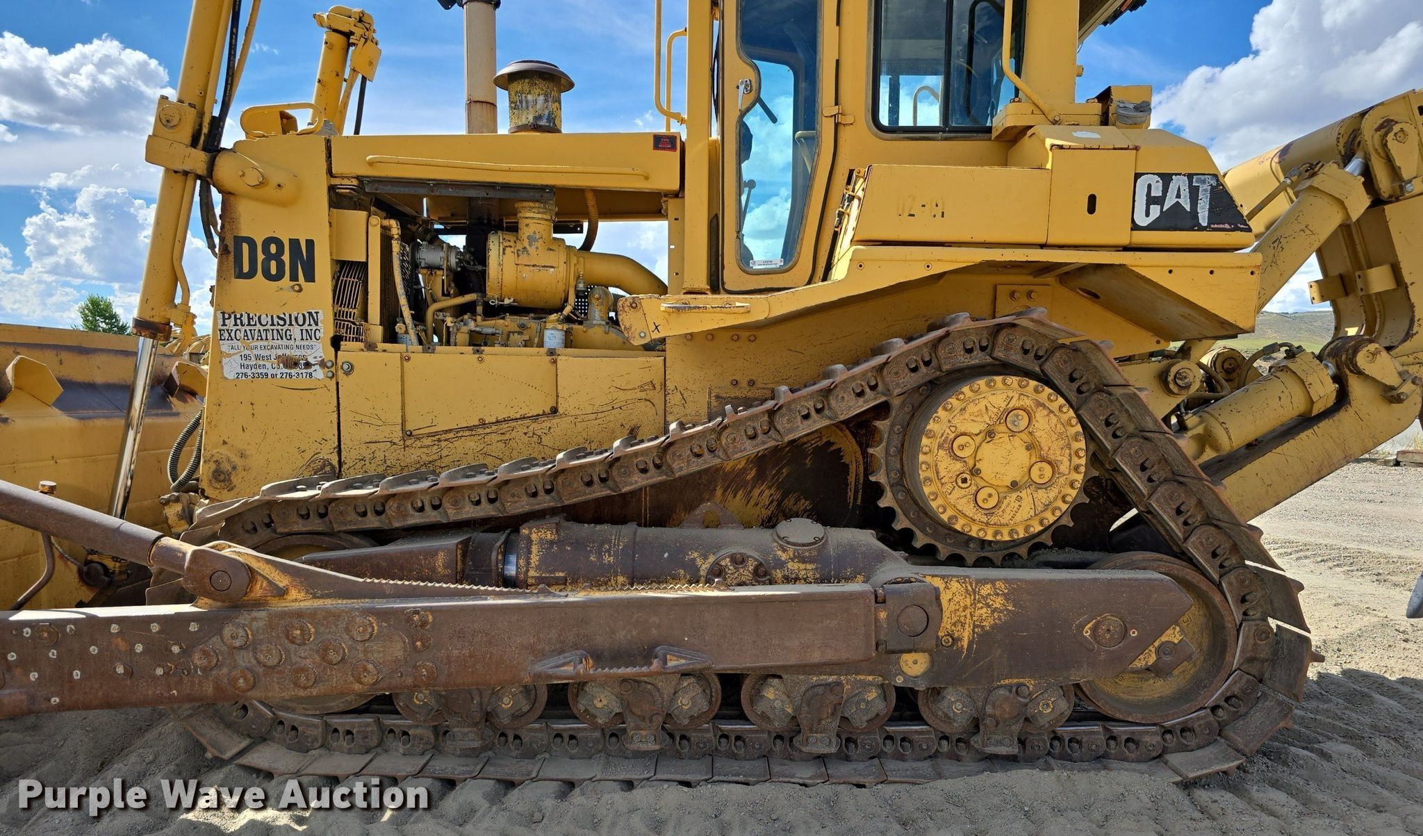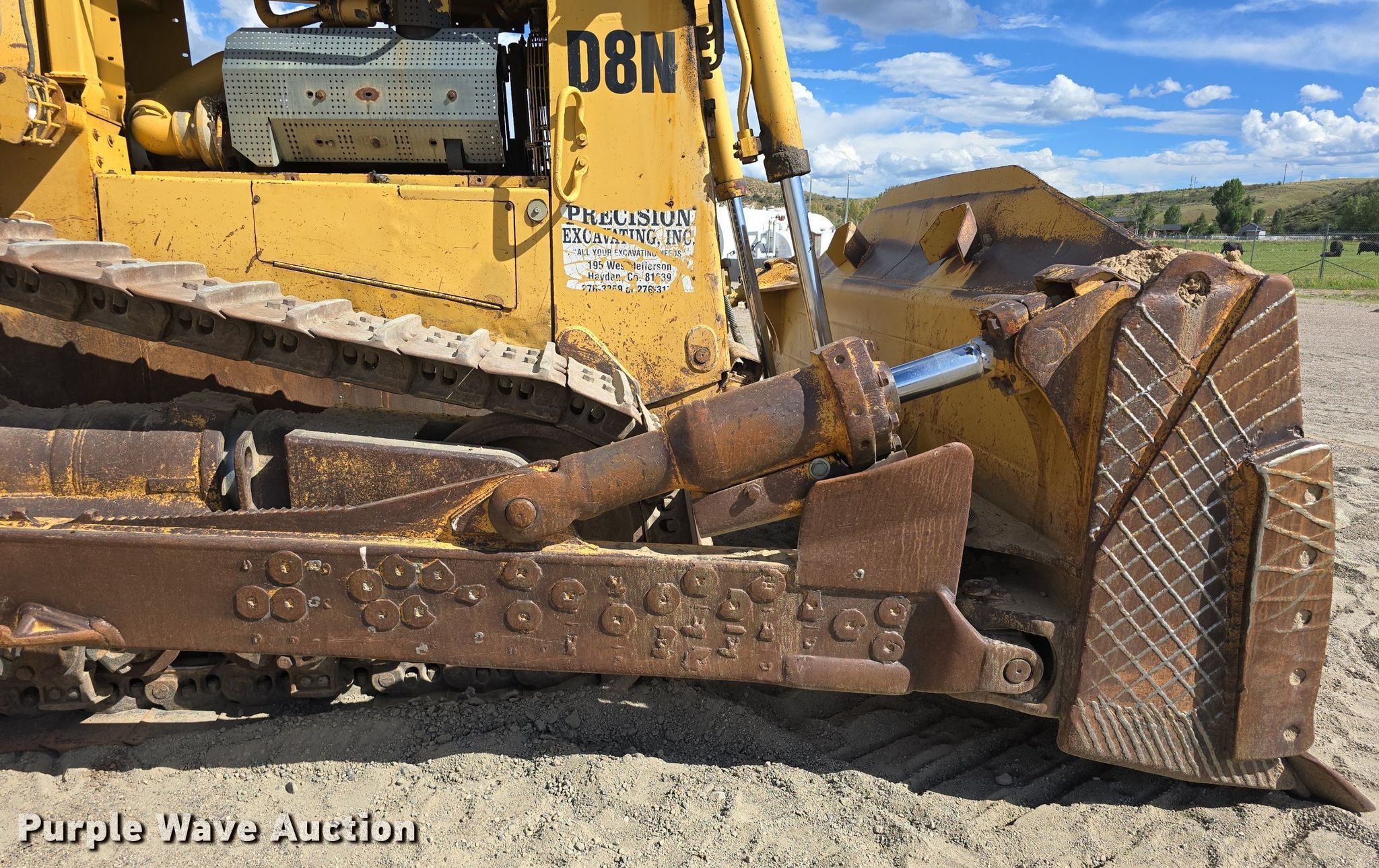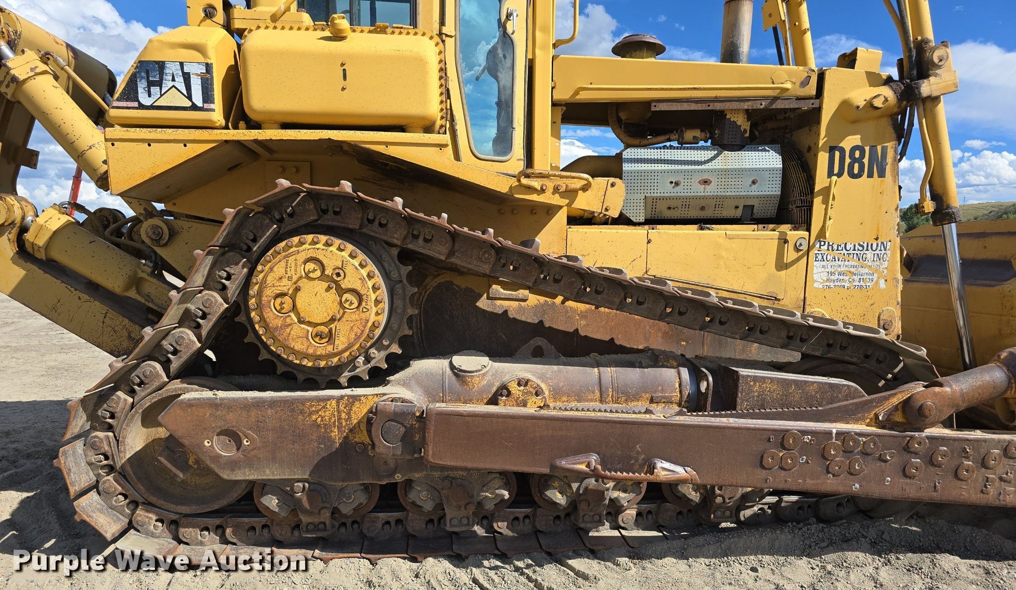 1989 Caterpillar D8N dozer. Hours: 15,463 on meter, Serial: 9TC03555, Unit #: DZ 01. Engine Caterpillar, Cylinders: 6, Fuel type: Diesel. Transmission Powershift, 3F - 3R. Operators station Enclosed cab, AC, Heat, Steering: Differential. Features Dozer blade Type: Semi-U, Single-tilt, Width: 154", Attachments Ripper Shanks: 1.. Tracks Width: 24", Grouser pads: Single, Bottom rollers: 8. Get A Free Shipping Estimate From:. Purple Wave Shipping, LLC.. Precision Excavating, Inc. Open Inspection September 18 and October 14 from 9 A.M. to 3 P.M. MST. 1545 West Jefferson Avenue. Hayden, CO 81639