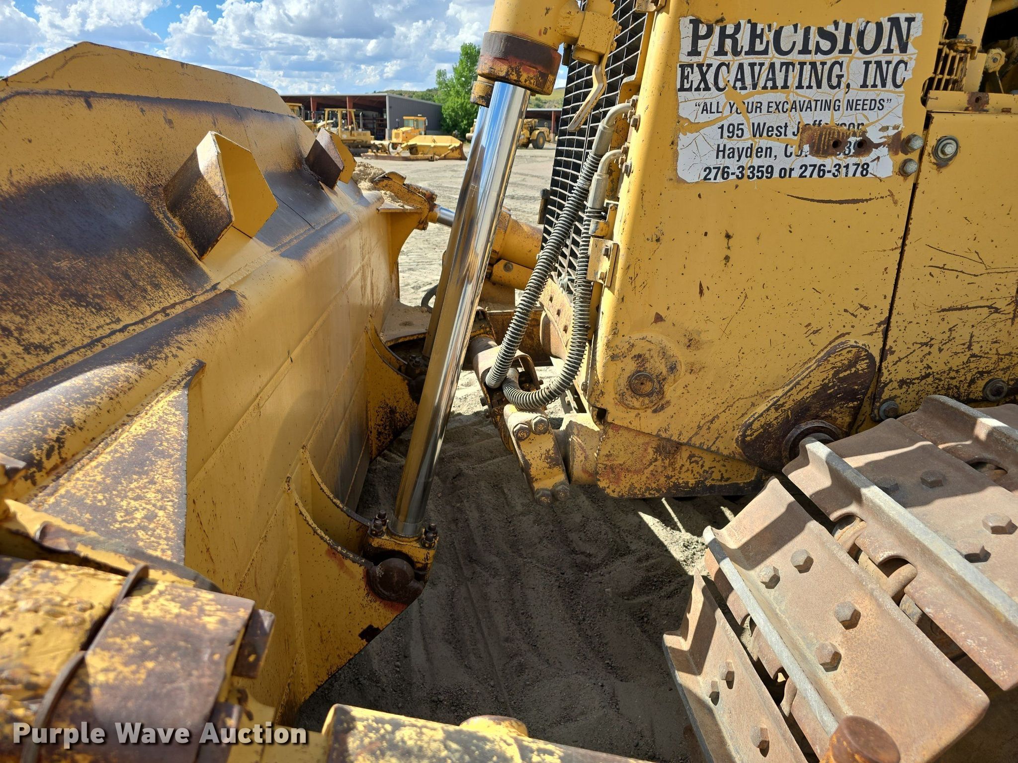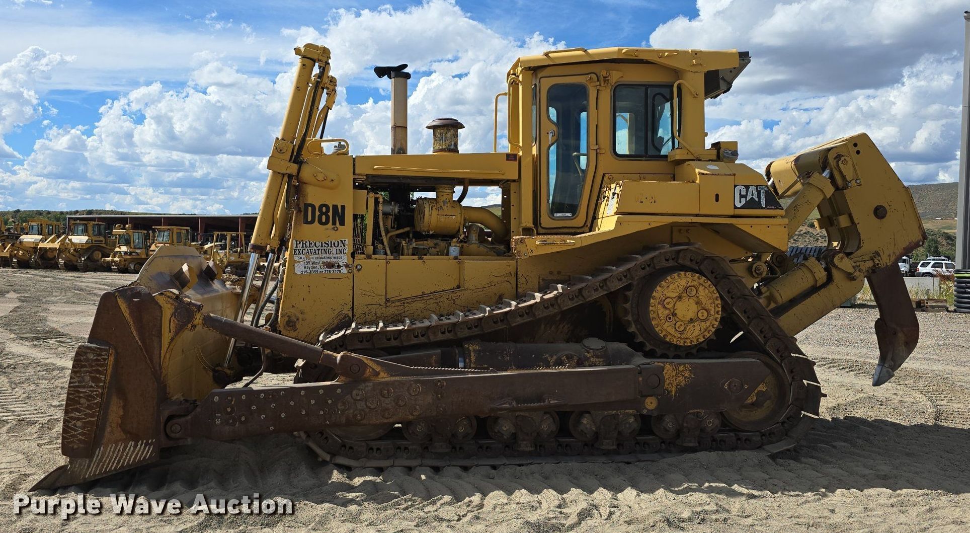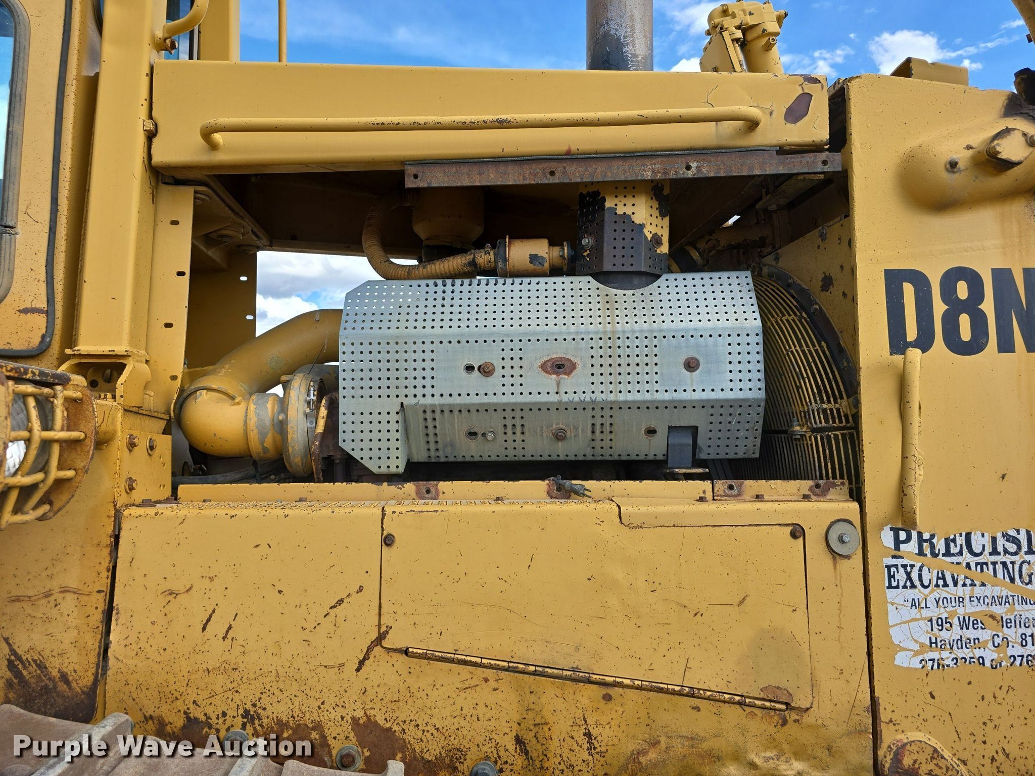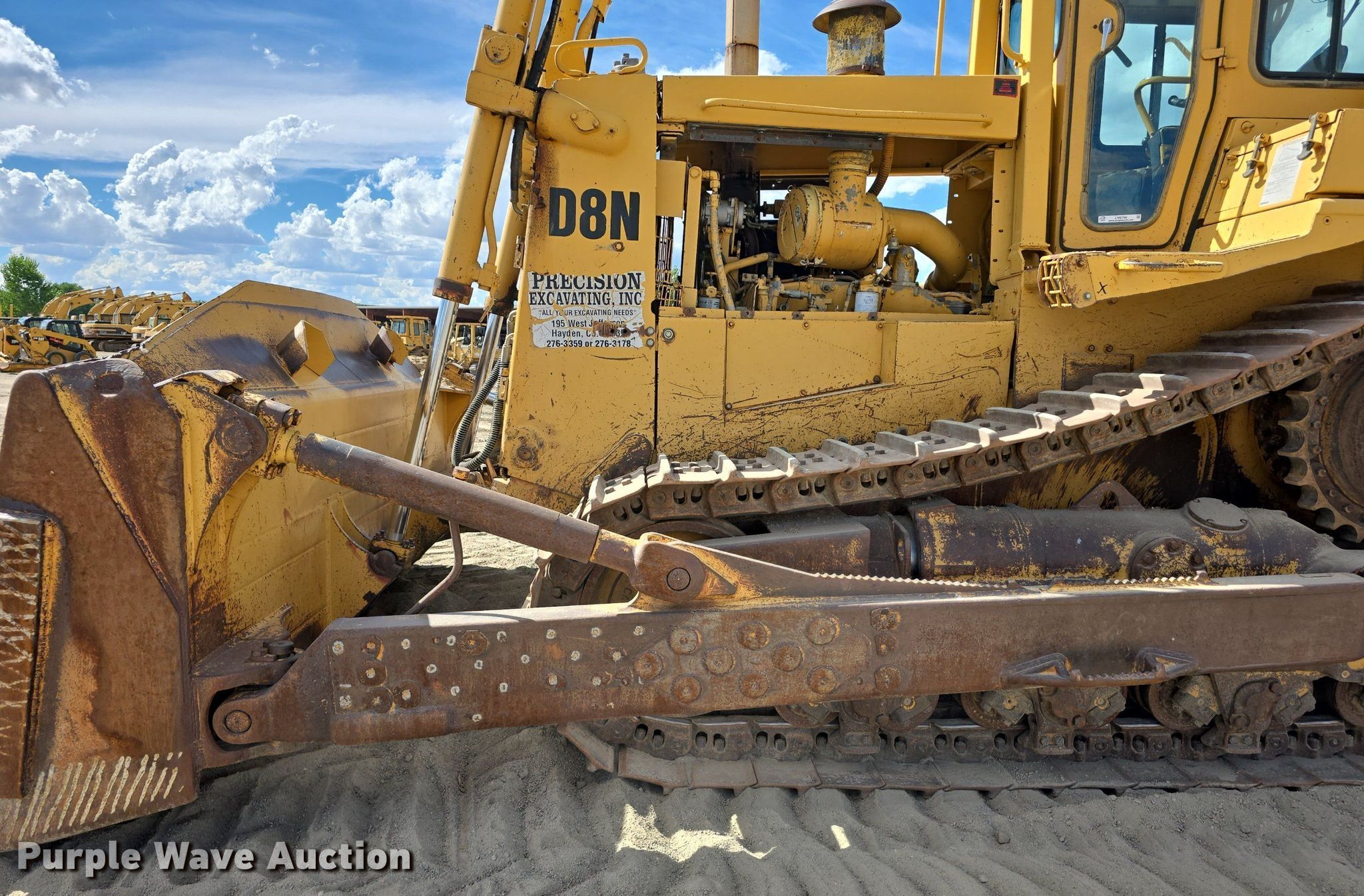 1989 Caterpillar D8N dozer. Hours: 15,463 on meter, Serial: 9TC03555, Unit #: DZ 01. Engine Caterpillar, Cylinders: 6, Fuel type: Diesel. Transmission Powershift, 3F - 3R. Operators station Enclosed cab, AC, Heat, Steering: Differential. Features Dozer blade Type: Semi-U, Single-tilt, Width: 154", Attachments Ripper Shanks: 1.. Tracks Width: 24", Grouser pads: Single, Bottom rollers: 8. Get A Free Shipping Estimate From:. Purple Wave Shipping, LLC.. Precision Excavating, Inc. Open Inspection September 18 and October 14 from 9 A.M. to 3 P.M. MST. 1545 West Jefferson Avenue. Hayden, CO 81639