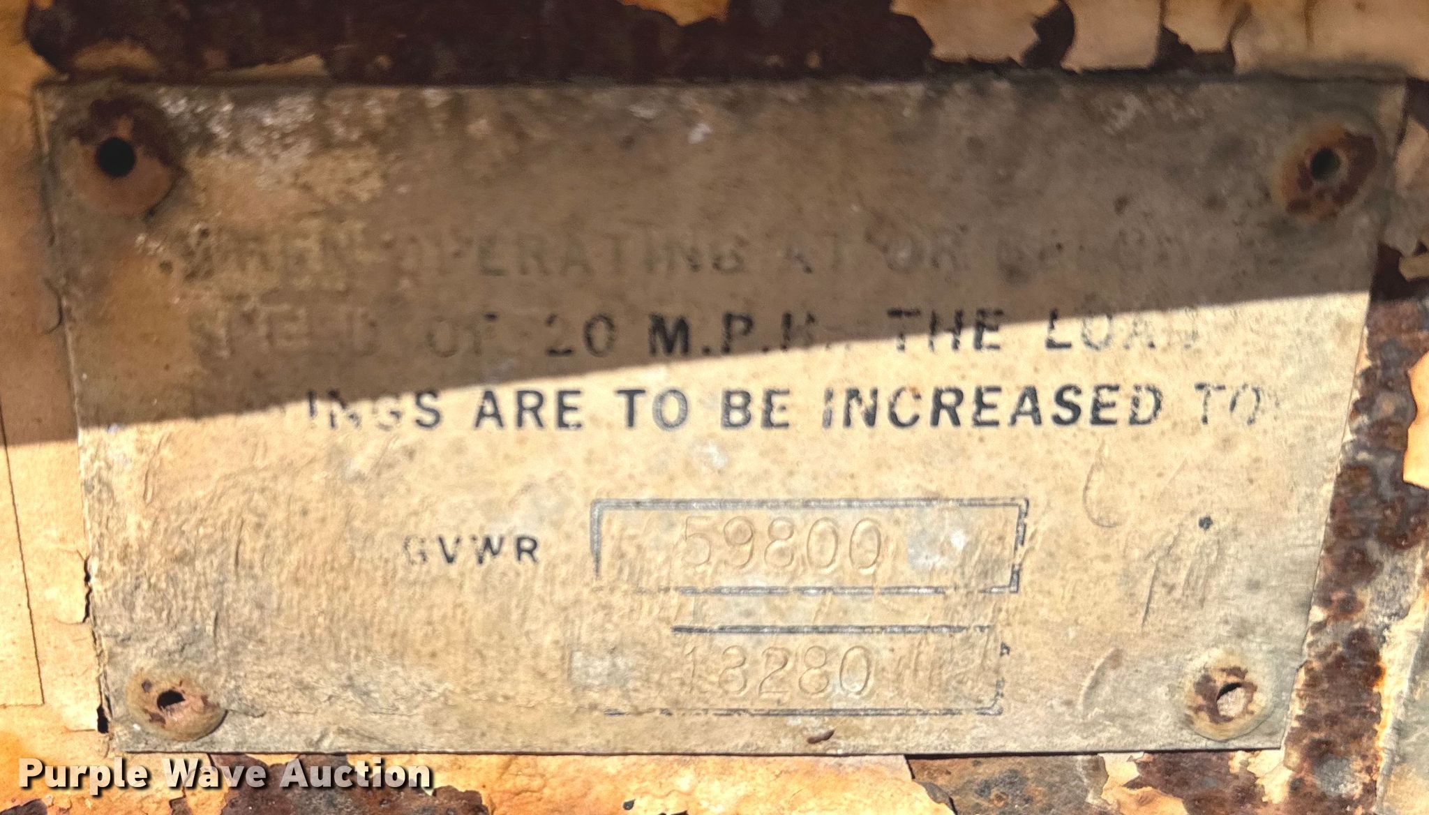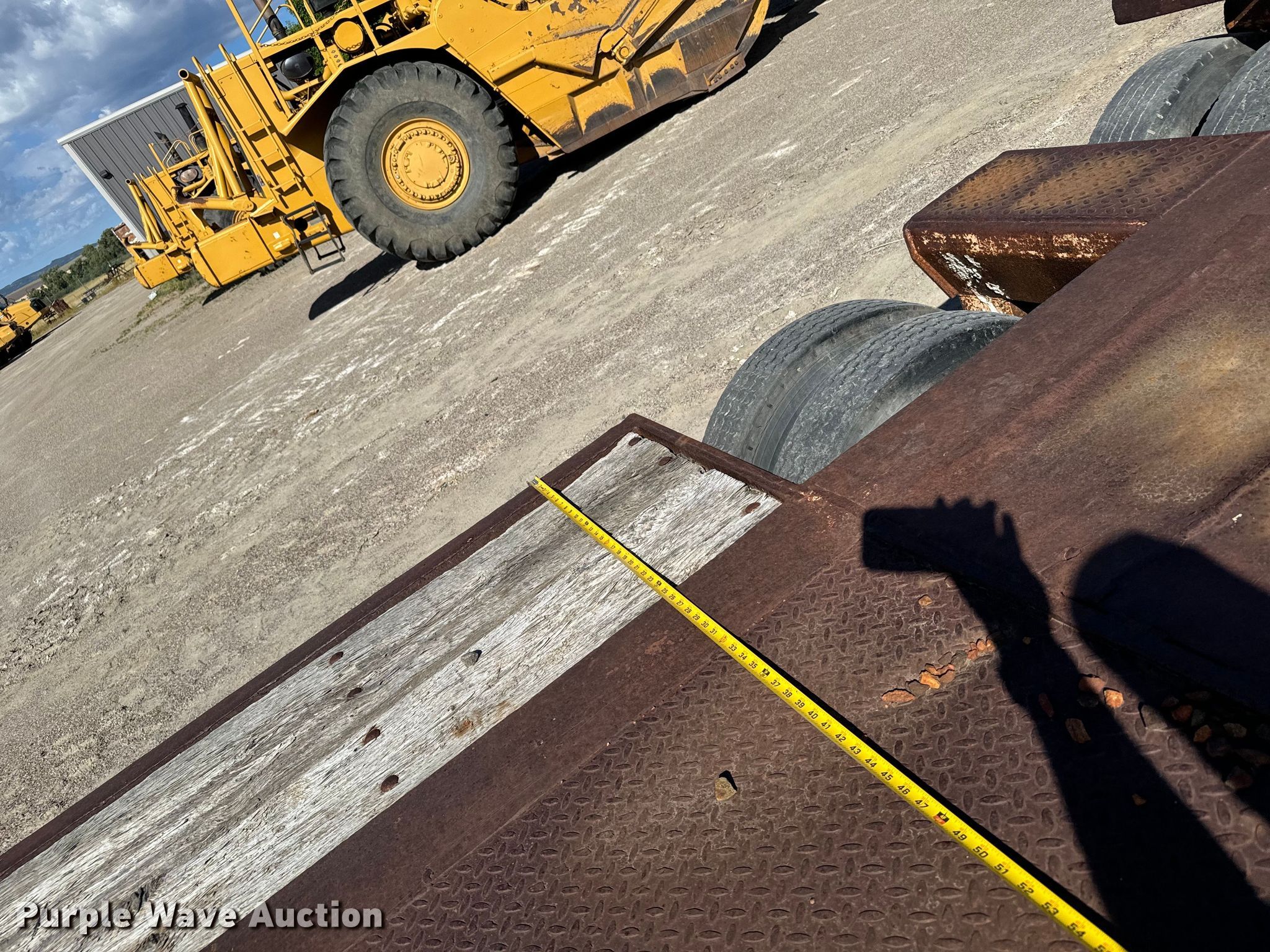 1980 Phelan WT-25K equipment trailer. VIN: 8068. Dimensions Overall: 36' 7" L x 96" W, Deck: 25' L x 96" W, Tail length: 28", Ramps: Manual Length: 51". Features Deck type: Steel, Wood. Chassis Landing gear: Dual, Suspension: Walking beam, Brakes: Air, Axles: Tandem, GVWR: 45,394 lbs, GAWR: 13,880 lbs. Tires Steel wheels, Size: 8.25R15TR. Colorado title. Precision Excavating, Inc. Open Inspection September 18 and October 14 from 9 A.M. to 3 P.M. MST. 1545 West Jefferson Avenue. Hayden, CO 81639