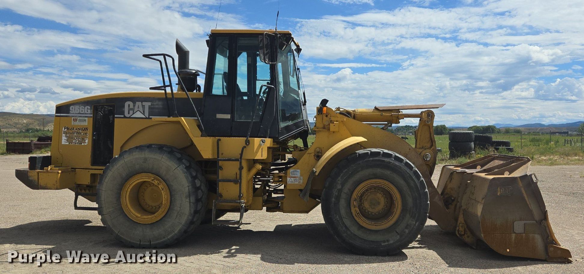 1999 Caterpillar 966G wheel loader. Hours: 26,753 on meter, Serial: 3ZS00389, Unit #: LD06. Engine Caterpillar 3306B, Serial: T9R01186, Cylinders: 6, Fuel type: Diesel, HP: 235. Transmission Powershift, 4F - 4R. Operators station Enclosed cab, AC, Heat, Bucket controls: Two-lever, Ride control. Features Counter weights, Bucket Caterpillar, Width: 120", Self- leveling bucket, Cutting edge: Bolt-on. Tires Size: 26.5R25. Notes Glass cracked. Get A Free Shipping Estimate From:. Purple Wave Shipping, LLC.. Precision Excavating, Inc. Open Inspection September 18 and October 14 from 9 A.M. to 3 P.M. MST. 1545 West Jefferson Avenue. Hayden, CO 81639