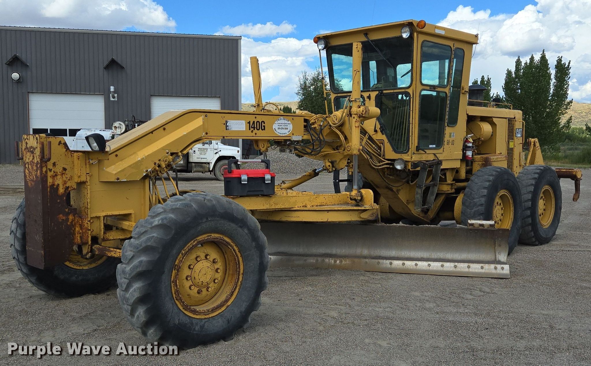 1990 Caterpillar 140G motor grader. Hours: 5,454 on meter, Serial: 72V13479, Unit #: GR-03. Engine Caterpillar 3306, Serial: 08Z60586, Cylinders: 6, Fuel type: Diesel. Transmission Powershift, 6F - 6R. Operators station Enclosed cab, AC, Heat, Hydraulic control valves: 11. Features Moldboard: Tip control, Side shift, Moldboard total width: 168", Front-mounted push block, Rear ripper Caterpillar, Ripper shanks: 3. Tires Size: 14.00-24. Get A Free Shipping Estimate From:. Purple Wave Shipping, LLC.. Precision Excavating, Inc. Open Inspection September 18 and October 14 from 9 A.M. to 3 P.M. MST. 1545 West Jefferson Avenue. Hayden, CO 81639