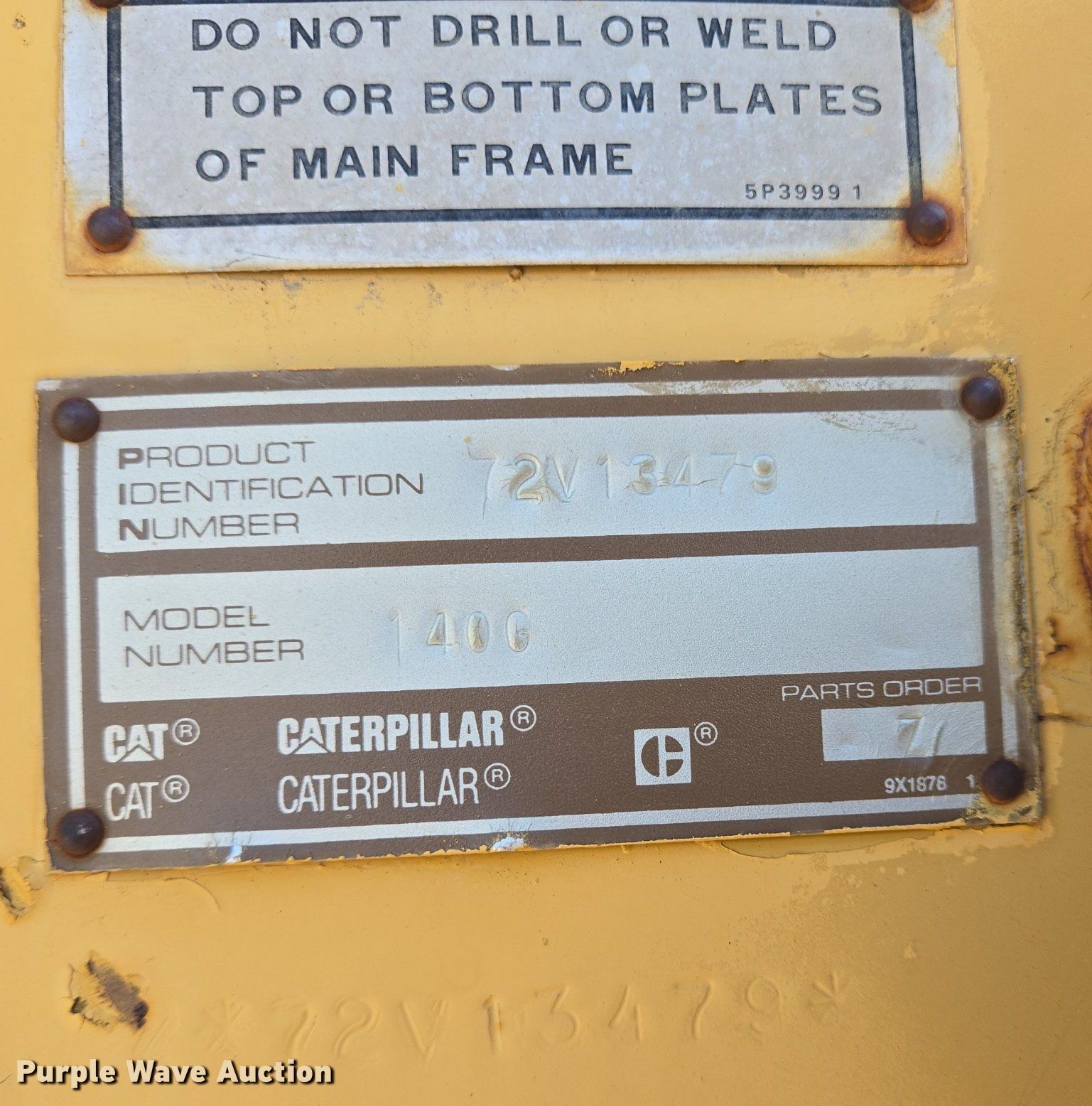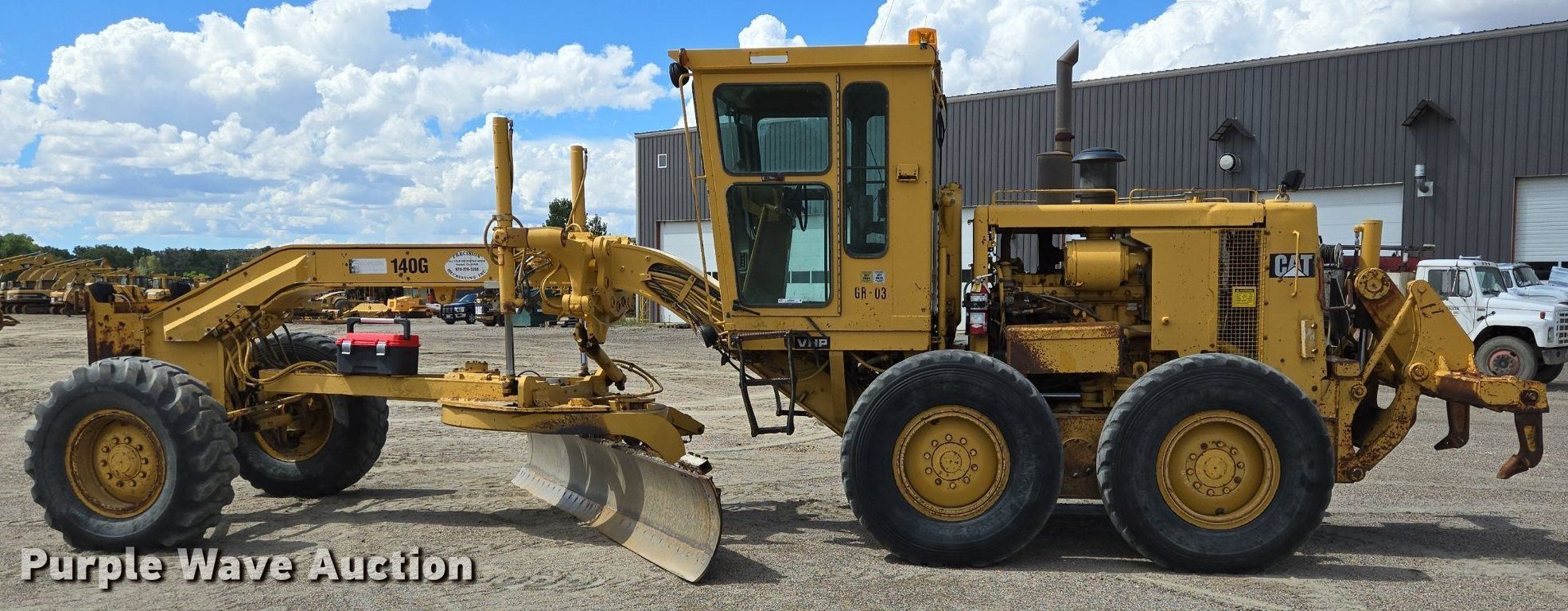 Purple Wave is selling a used Motor Grader in Colorado. This item is a 1990 Caterpillar 140G motor grader with the following: Hours: 5,454 on meter, Serial: 72V13479, Unit #: GR-03