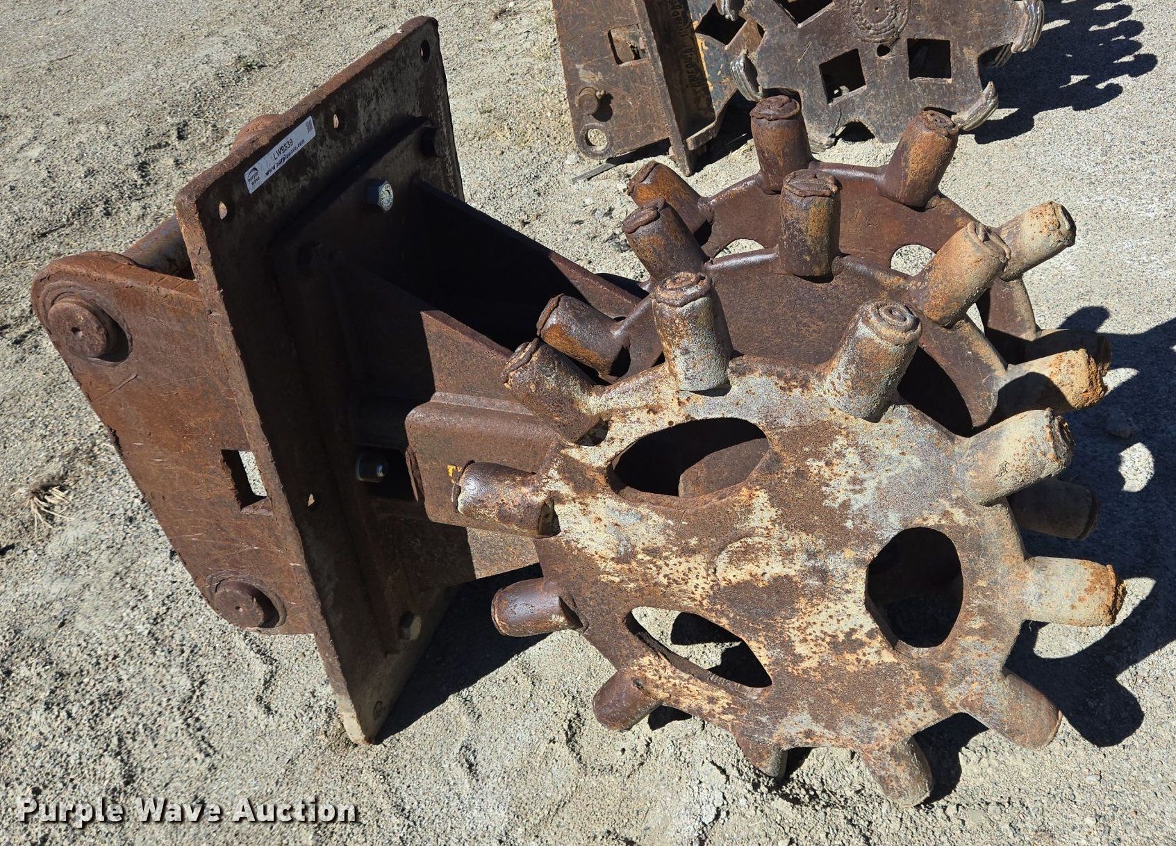 Compaction wheel. Width: 22", Removed from a Caterpillar 325. Precision Excavating, Inc. Open Inspection September 18 and October 14 from 9 A.M. to 3 P.M. MST. 1545 West Jefferson Avenue. Hayden, CO 81639
