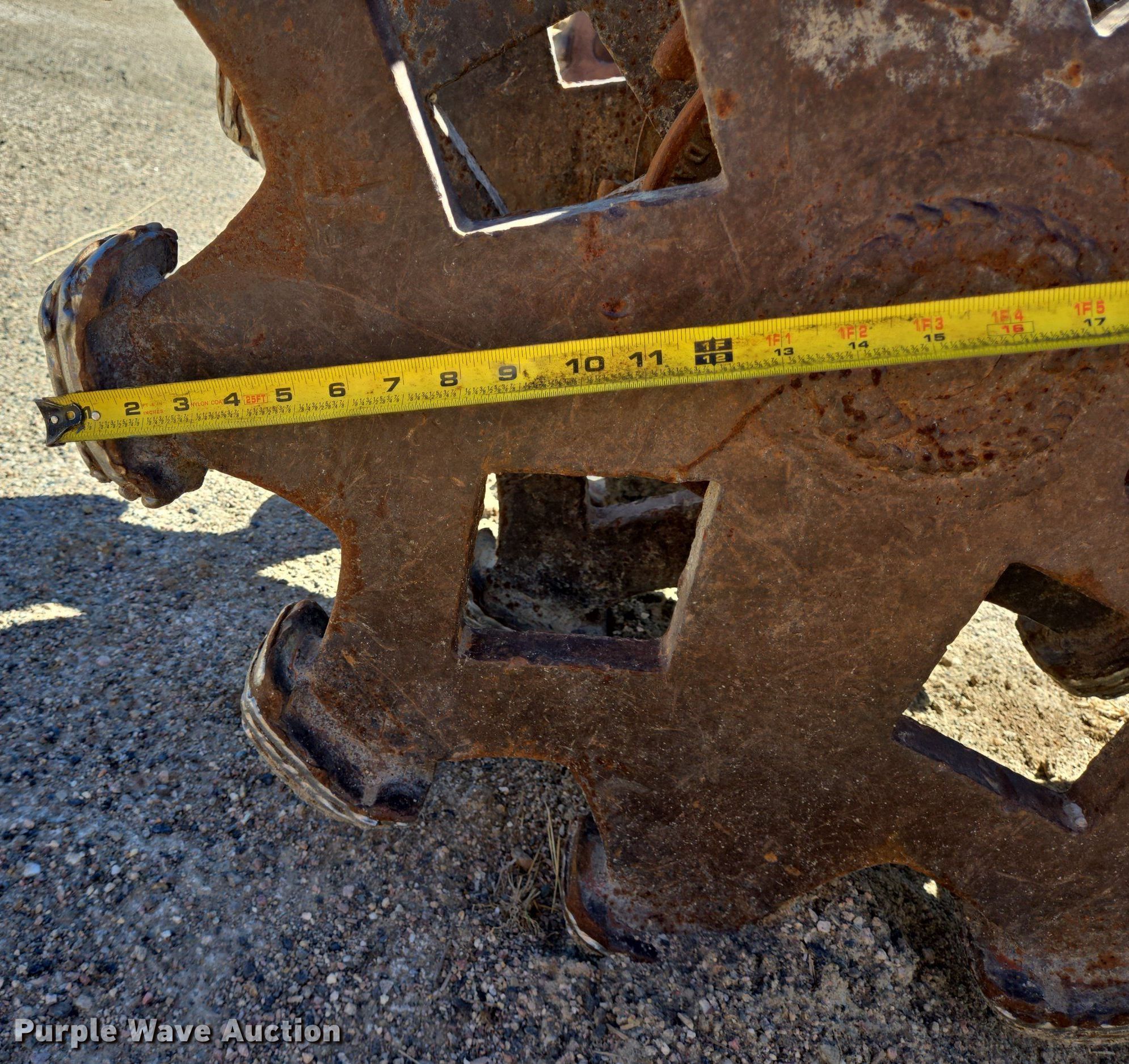 Compaction wheel. Width: 22", Removed from a Caterpillar 312. Precision Excavating, Inc. Open Inspection September 18 and October 14 from 9 A.M. to 3 P.M. MST. 1545 West Jefferson Avenue. Hayden, CO 81639