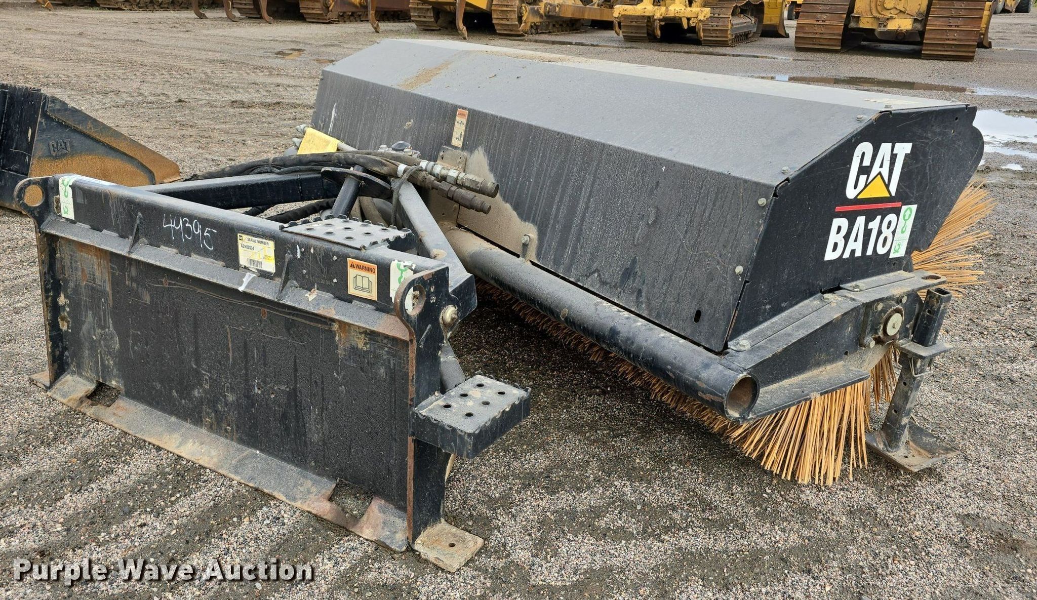 Purple Wave is selling a used Skid Steer Attach. in Colorado. This item is a Caterpillar BA18 skid steer broom with the following: Serial: AZN02034, Width: 84"